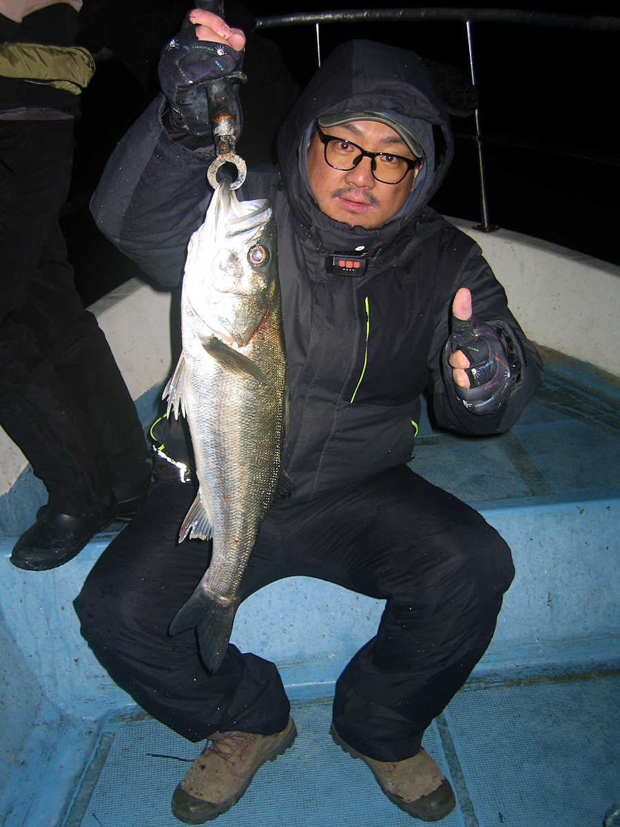 ■シーバス・ナイト×11匹 +放流サイズ×20匹ぐらい ■黒鯛×2匹 ■コメント 「今日も釣るぞ!」とウキウキして海に出た瞬間、「ムムム風が少々強い?」と不安な気持ちのままポイント到着。 釣り始めるとヤハリ風が強く釣りずらい。 ついでにシーバスのご機嫌が悪く、アタリが超少ない。 と言うか、魚がポイントから移動してしまったのかも? 更に、こんな条件の悪い時に限りショートバイトやバラシでキャッチ数が伸びない。 追い打ちをかけるように風が更に強くなり、風が避けられるポイントをメインで狙うコースに切り替えました。 結果、狙うポイントによっては良いサイズが出ましたが、チイサイズの多いポイントでは、セイコちゃんが元気一杯にバイトし入れ食い状態でした。 そんなこんなで、高確率で釣れる可能性の高いポイントが無くなり早上がりとなりました。(料金値引きで対応) トホホホホ・・・ ★追記:帰港後、船着き場での会話 船頭:明日はナギ予報、一杯釣れちゃったらガッカリするだろうな~? きねちゃん:翌日の釣果を見た瞬間、「チクショー」って声を上げそう! 結果はいかに? ■シーバス・ナイト×11匹 +放流サイズ×20匹ぐらい □サイズ:10~45cm前後×20匹ぐらい(放)/58cm前後×1匹/61cm前後×4匹ぐらい/65cm前後×5匹ぐらい/68cm×1匹 ■黒鯛×2匹 |
