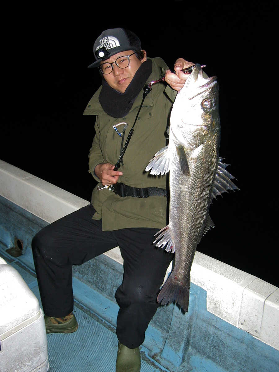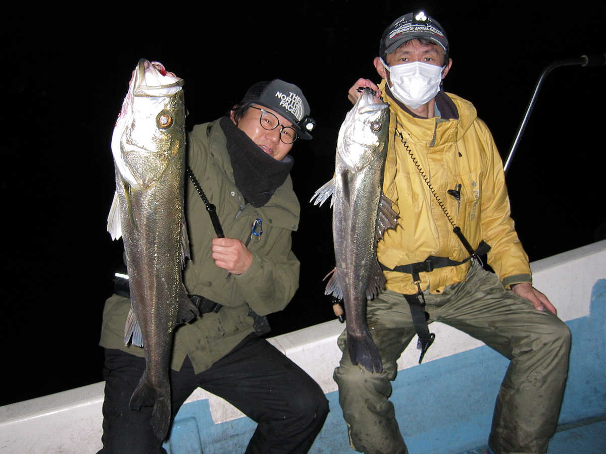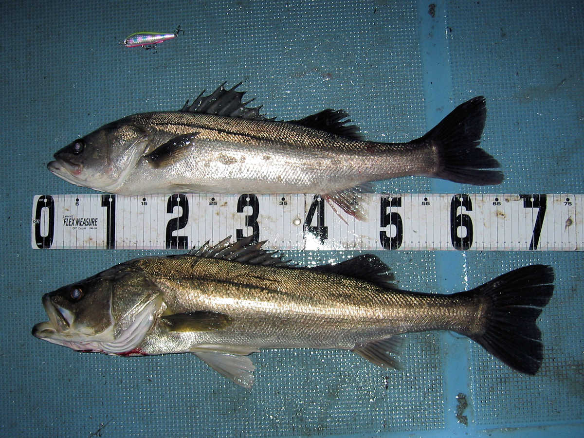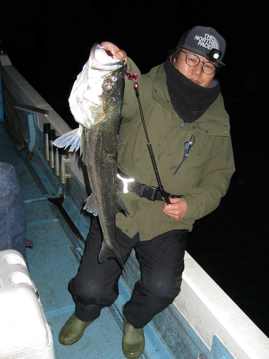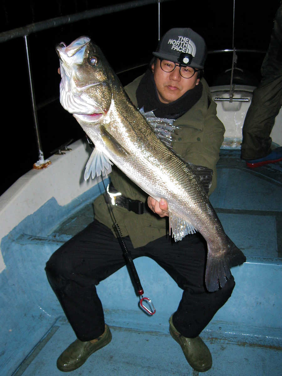 ■シーバス・ナイト×32匹 ■シーバス・デイ×19匹(放流サイズ×13匹含む) ■コメント この日は幸運に恵まれ、サイズが良く大漁でした! 嬉しい事に、ナイトで70アップが4匹、68cm級が3匹、69cm級が2匹でて合計で32匹キャッチできました。 この時期特有のナイトでの大物連発ですが、例年に比べると痩せた魚体が多い事が気がかりでした。 まあ、サイズが良いとお客さまが笑顔のなるので、こんな幸せな仕事は釣り船ならではですね! デイ狙いは前半から中盤までは苦戦の連続で、放流サイズの43cm級がメインで16匹キャッチ! 50cm級が3匹混じりましたが、しばらくは苦戦しそうな雰囲気でした。 後半はノーバイトの連続でしたが、最後の最後で魚の入っているポイントを発見! 65~68cmを3匹キャッチでき、大きそうな魚のバラシもありで、最後の締めくくりも幸運で終了できました。 今年は風が強く出船中止の連続なので、今後の釣果は運と風次第ですね! 海の神さま、風を風速3m以下でお願いします。 ■シーバス・ナイト×32匹 □サイズ:56cm前後×5匹/60cm前後×8匹ぐらい/63cm前後×8匹ぐらい /66cm前後×2匹ぐらい/68cm×3匹/69cm×2匹 /70cm×1匹/71cm×1匹/72cm×1匹/73cm×1匹 ■シーバス・デイ×19匹(放流サイズ×13匹含む) □サイズ:43cm前後×13匹/50cm前後×1匹/56cm前後×2匹 /65cm×1匹/67cm×1匹/68cm×1匹 |