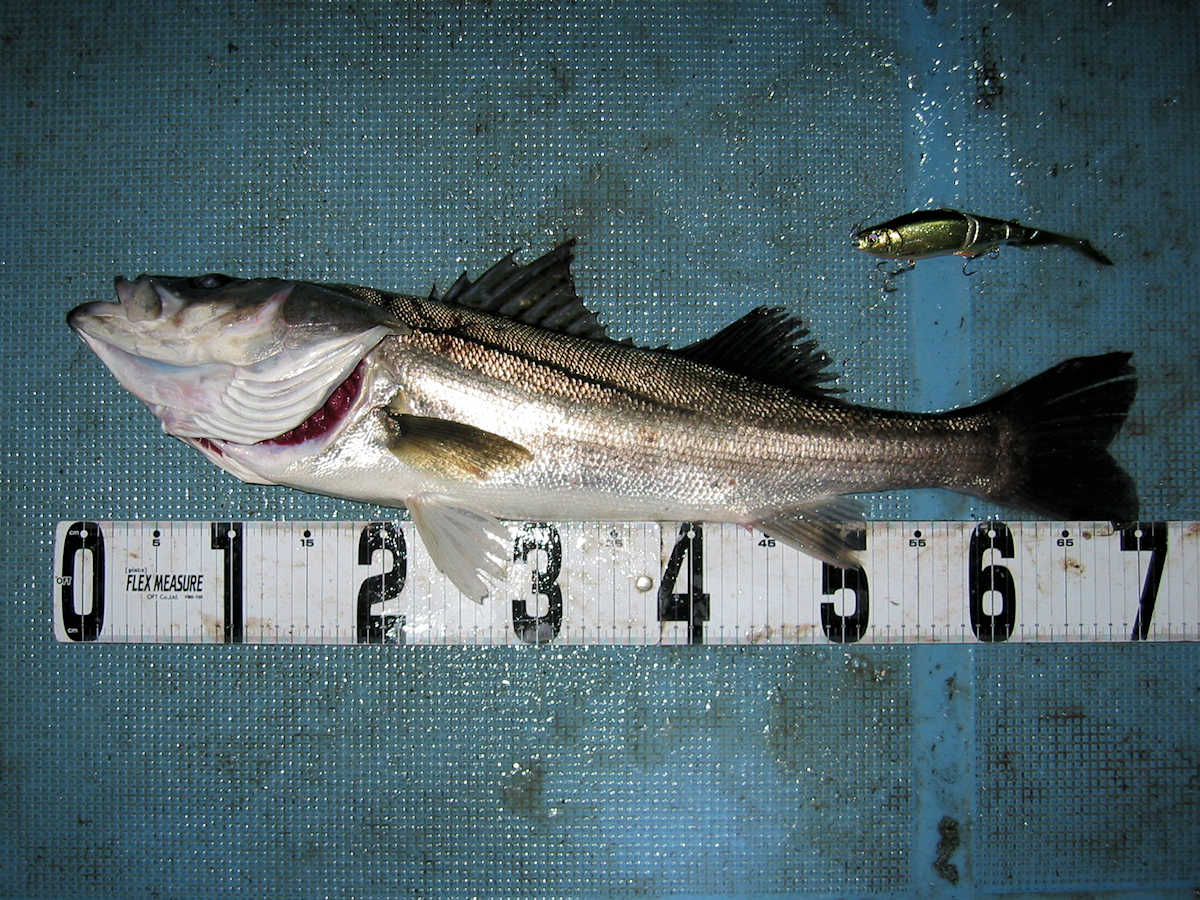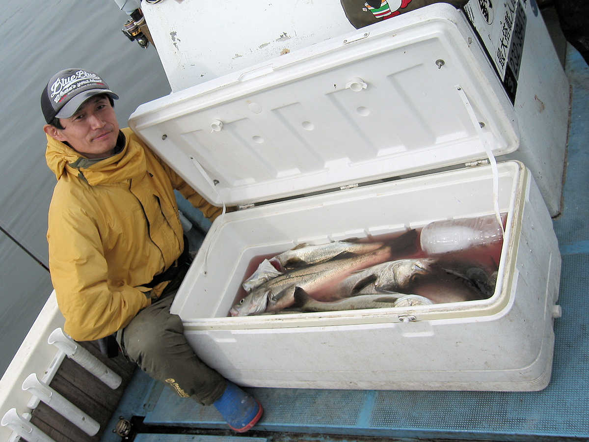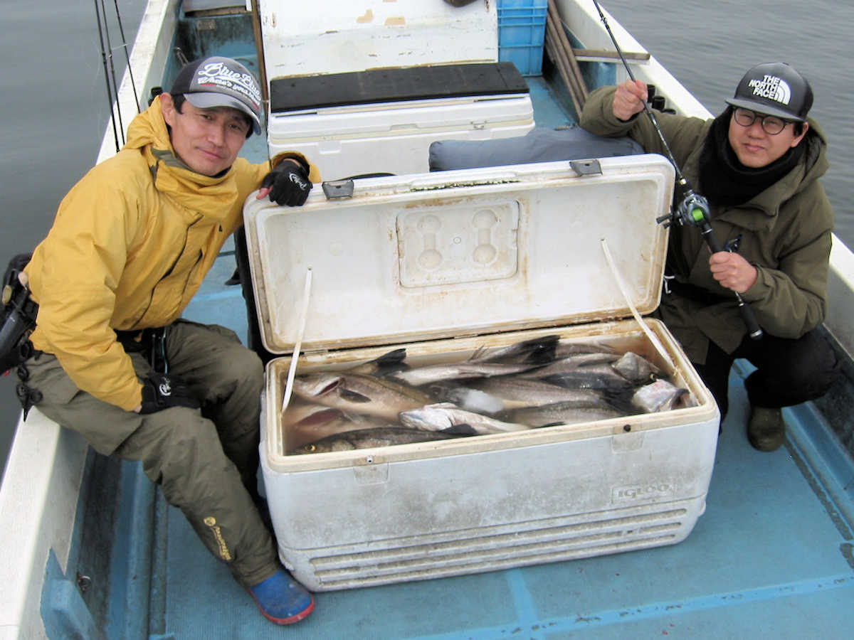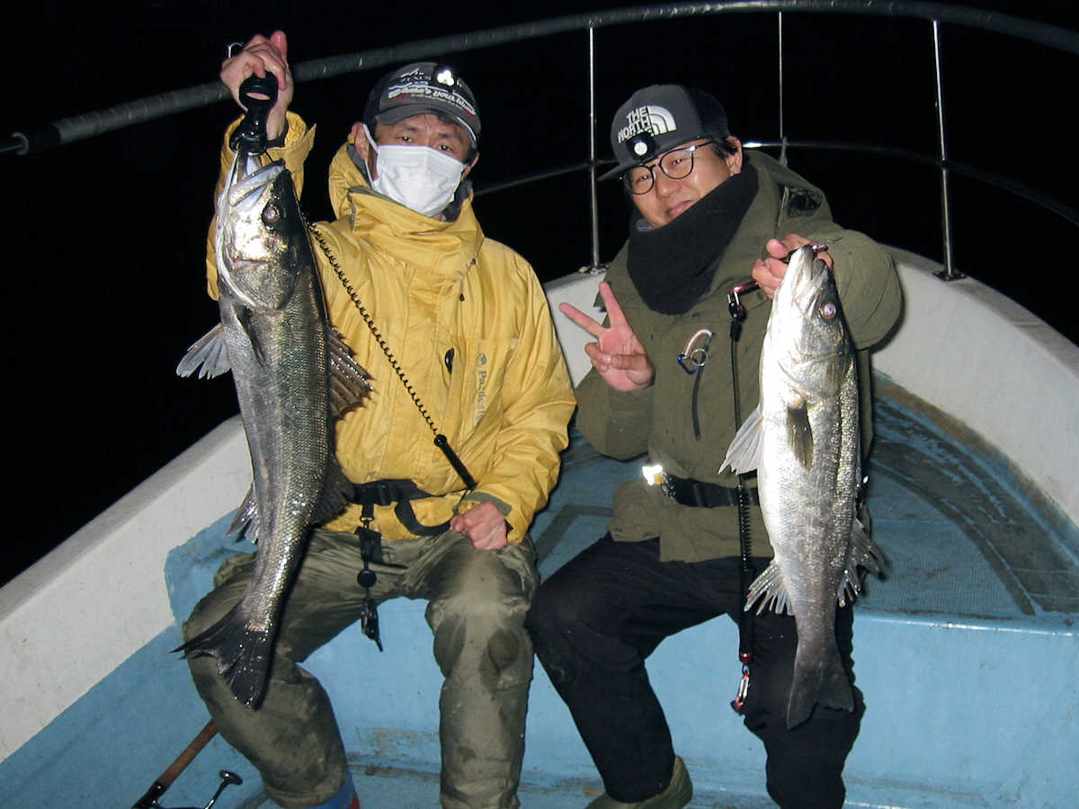 ■シーバス・ナイト×32匹 ■シーバス・デイ×19匹(放流サイズ×13匹含む) ■コメント この日は幸運に恵まれ、サイズが良く大漁でした! 嬉しい事に、ナイトで70アップが4匹、68cm級が3匹、69cm級が2匹でて合計で32匹キャッチできました。 この時期特有のナイトでの大物連発ですが、例年に比べると痩せた魚体が多い事が気がかりでした。 まあ、サイズが良いとお客さまが笑顔のなるので、こんな幸せな仕事は釣り船ならではですね! デイ狙いは前半から中盤までは苦戦の連続で、放流サイズの43cm級がメインで16匹キャッチ! 50cm級が3匹混じりましたが、しばらくは苦戦しそうな雰囲気でした。 後半はノーバイトの連続でしたが、最後の最後で魚の入っているポイントを発見! 65~68cmを3匹キャッチでき、大きそうな魚のバラシもありで、最後の締めくくりも幸運で終了できました。 今年は風が強く出船中止の連続なので、今後の釣果は運と風次第ですね! 海の神さま、風を風速3m以下でお願いします。 ■シーバス・ナイト×32匹 □サイズ:56cm前後×5匹/60cm前後×8匹ぐらい/63cm前後×8匹ぐらい /66cm前後×2匹ぐらい/68cm×3匹/69cm×2匹 /70cm×1匹/71cm×1匹/72cm×1匹/73cm×1匹 ■シーバス・デイ×19匹(放流サイズ×13匹含む) □サイズ:43cm前後×13匹/50cm前後×1匹/56cm前後×2匹 /65cm×1匹/67cm×1匹/68cm×1匹 |