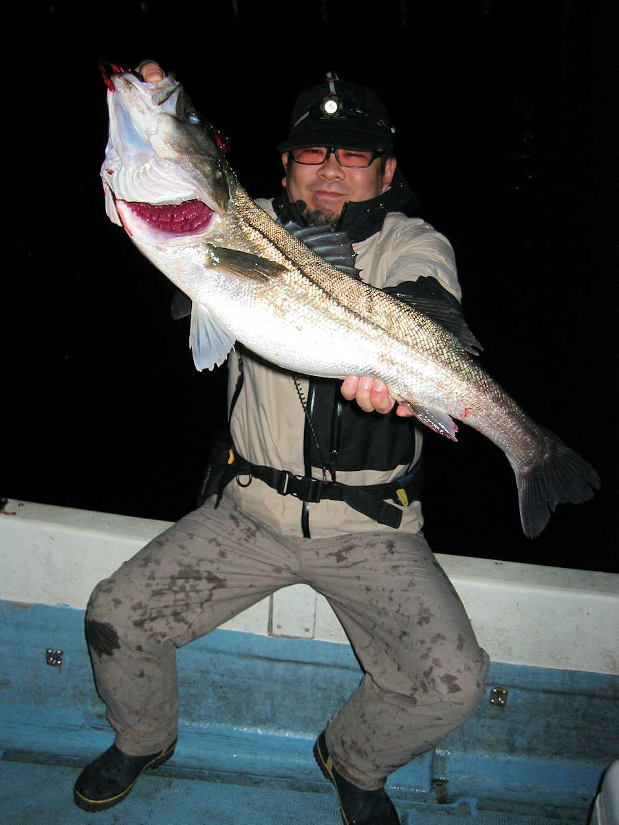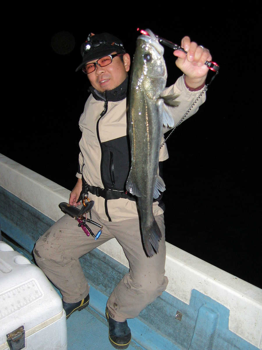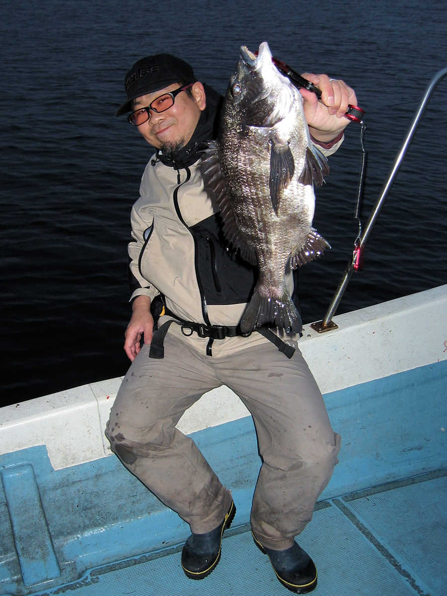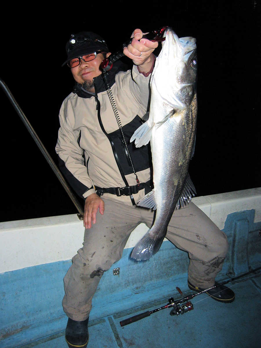 ★最後の写真は、大人のオモチャ♪ ■シーバス・ナイト×23匹 ■黒鯛× 11匹 ■コメント この日は、前半シーバス狙い、明るくなったら黒鯛狙いのコースで出船しました。 ナイトでは今回の出船でも幸運に恵まれ、70アップ3匹を含む23匹をキャッチ! 写真にアップした”大人のオモチャ”としか思えないビックなベイトが活躍しました。 明るくなり黒鯛狙いへ変更。 海水のニゴリ具合はこの時期にしては良い感じで、黒鯛が釣れそうな雰囲気がある状況でした。 で、釣り開始早々からヒットし、1匹目を無事にキャッチ! その後は狙うポイント毎に飽きない程度にアタリがあり、11匹キャッチできました。 ただ、今年も小さいサイズが多く45㎝級は2匹だけ、産卵前の2㎏や3kgのオデブちゃんは釣れませんでした。 まあ、狙っていないポイントも多いので、今後に期待しましょう♪ ■シーバス・ナイト×23匹 □サイズ:57cm前後×11匹ぐらい/60cm前後×3匹ぐらい/63cm前後×3匹 /67cm×1匹/68cm×1匹/69cm×1匹 /70cm×1匹/75cm×1匹/77cm×1匹 ■黒鯛× 11匹 □サイズ:30~35cm×6匹ぐらい/37cm前後×3匹ぐらい/40cm前後×2匹ぐらい/45cm前後×2匹 |