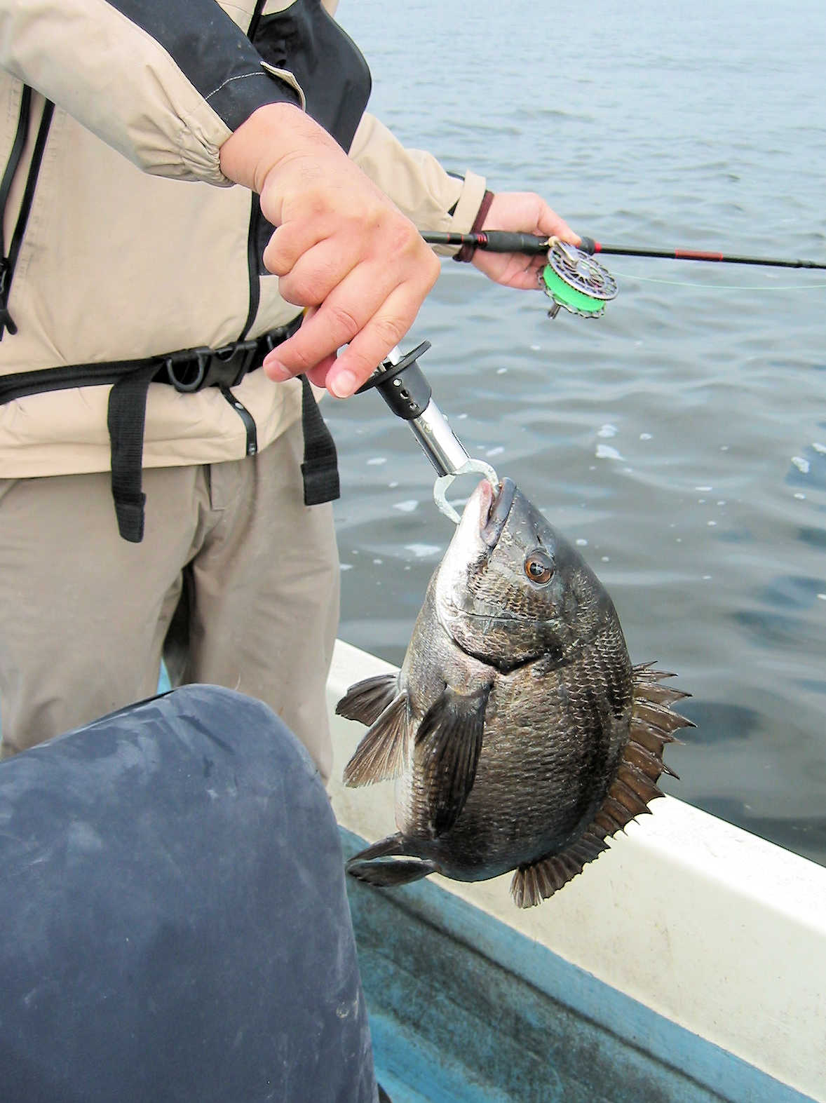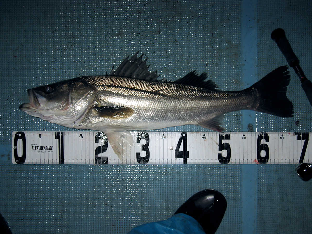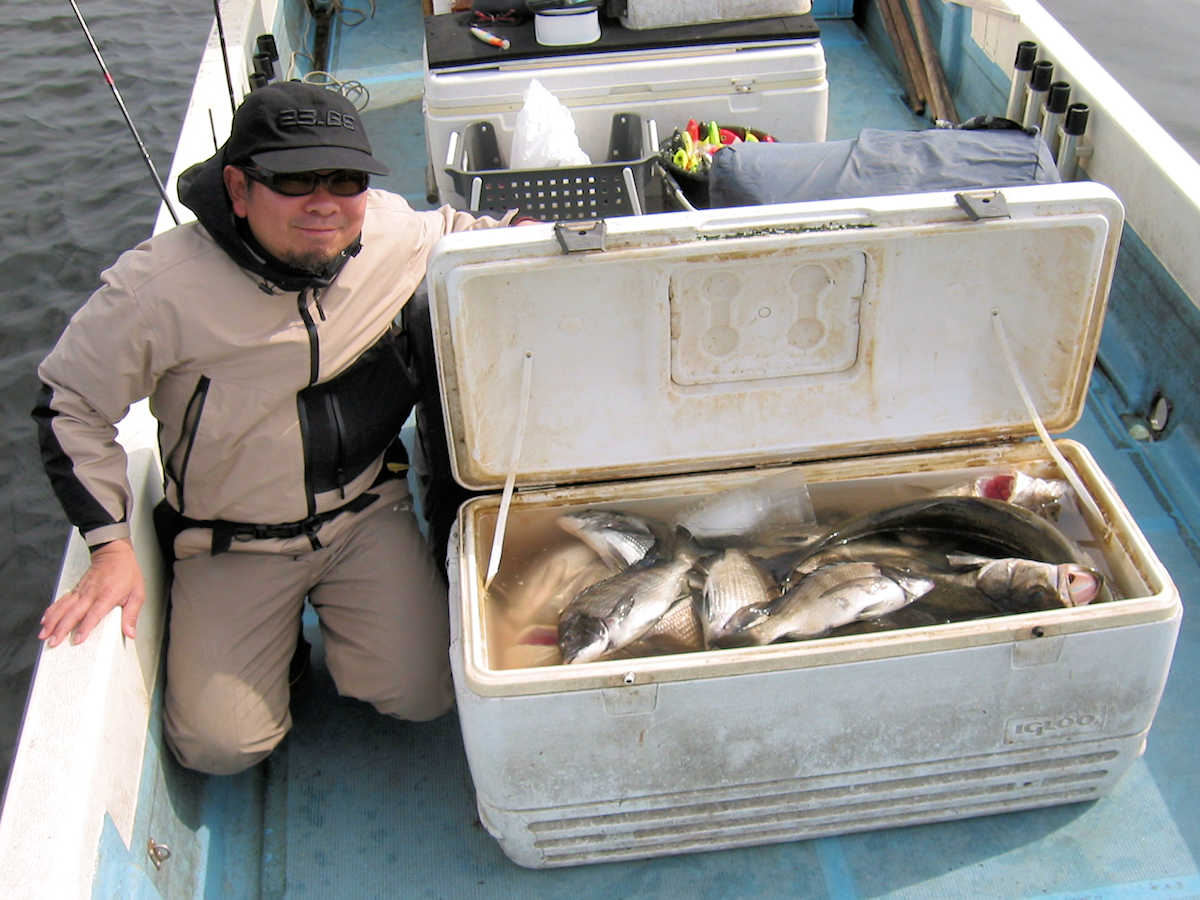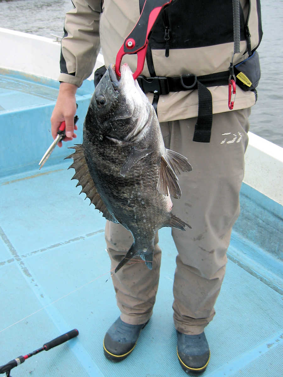 ★最後の写真は、大人のオモチャ♪ ■シーバス・ナイト×23匹 ■黒鯛× 11匹 ■コメント この日は、前半シーバス狙い、明るくなったら黒鯛狙いのコースで出船しました。 ナイトでは今回の出船でも幸運に恵まれ、70アップ3匹を含む23匹をキャッチ! 写真にアップした”大人のオモチャ”としか思えないビックなベイトが活躍しました。 明るくなり黒鯛狙いへ変更。 海水のニゴリ具合はこの時期にしては良い感じで、黒鯛が釣れそうな雰囲気がある状況でした。 で、釣り開始早々からヒットし、1匹目を無事にキャッチ! その後は狙うポイント毎に飽きない程度にアタリがあり、11匹キャッチできました。 ただ、今年も小さいサイズが多く45㎝級は2匹だけ、産卵前の2㎏や3kgのオデブちゃんは釣れませんでした。 まあ、狙っていないポイントも多いので、今後に期待しましょう♪ ■シーバス・ナイト×23匹 □サイズ:57cm前後×11匹ぐらい/60cm前後×3匹ぐらい/63cm前後×3匹 /67cm×1匹/68cm×1匹/69cm×1匹 /70cm×1匹/75cm×1匹/77cm×1匹 ■黒鯛× 11匹 □サイズ:30~35cm×6匹ぐらい/37cm前後×3匹ぐらい/40cm前後×2匹ぐらい/45cm前後×2匹 |