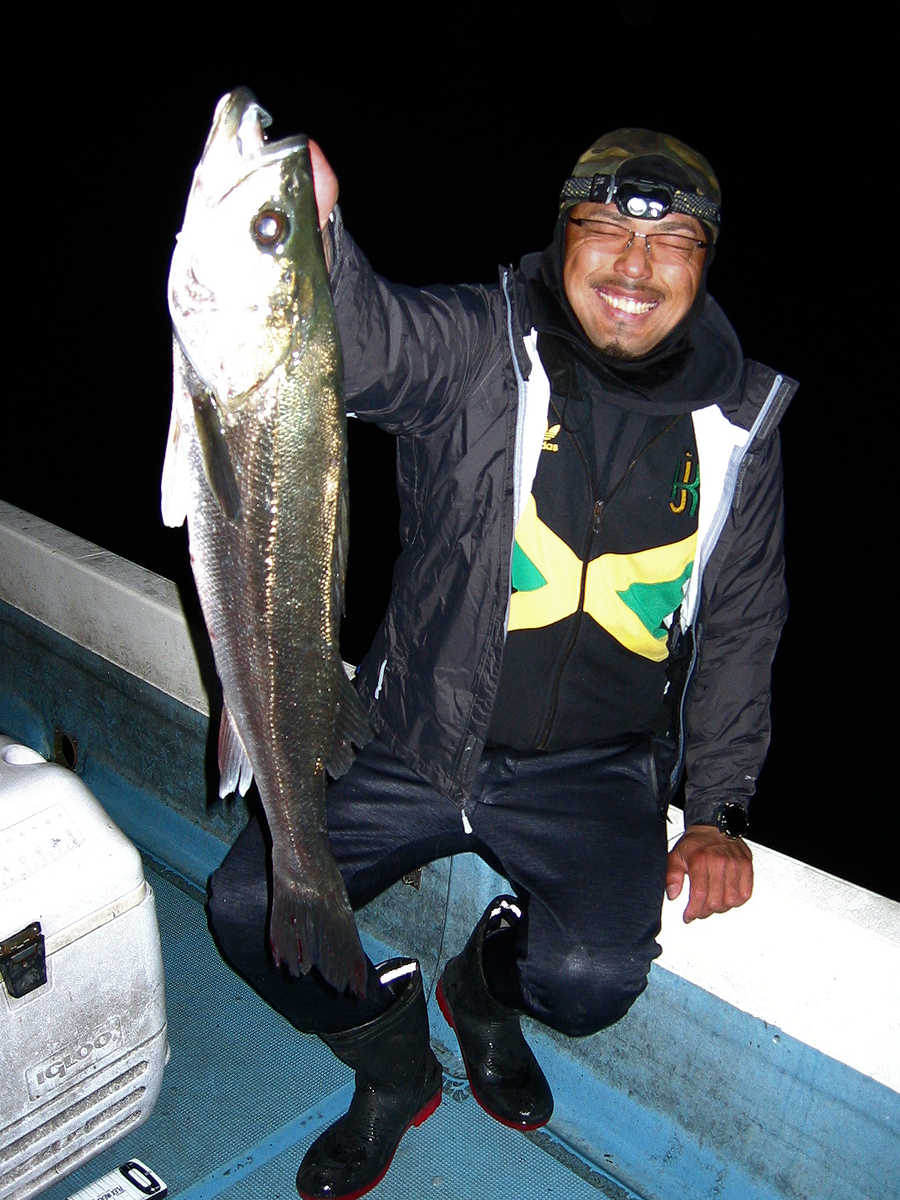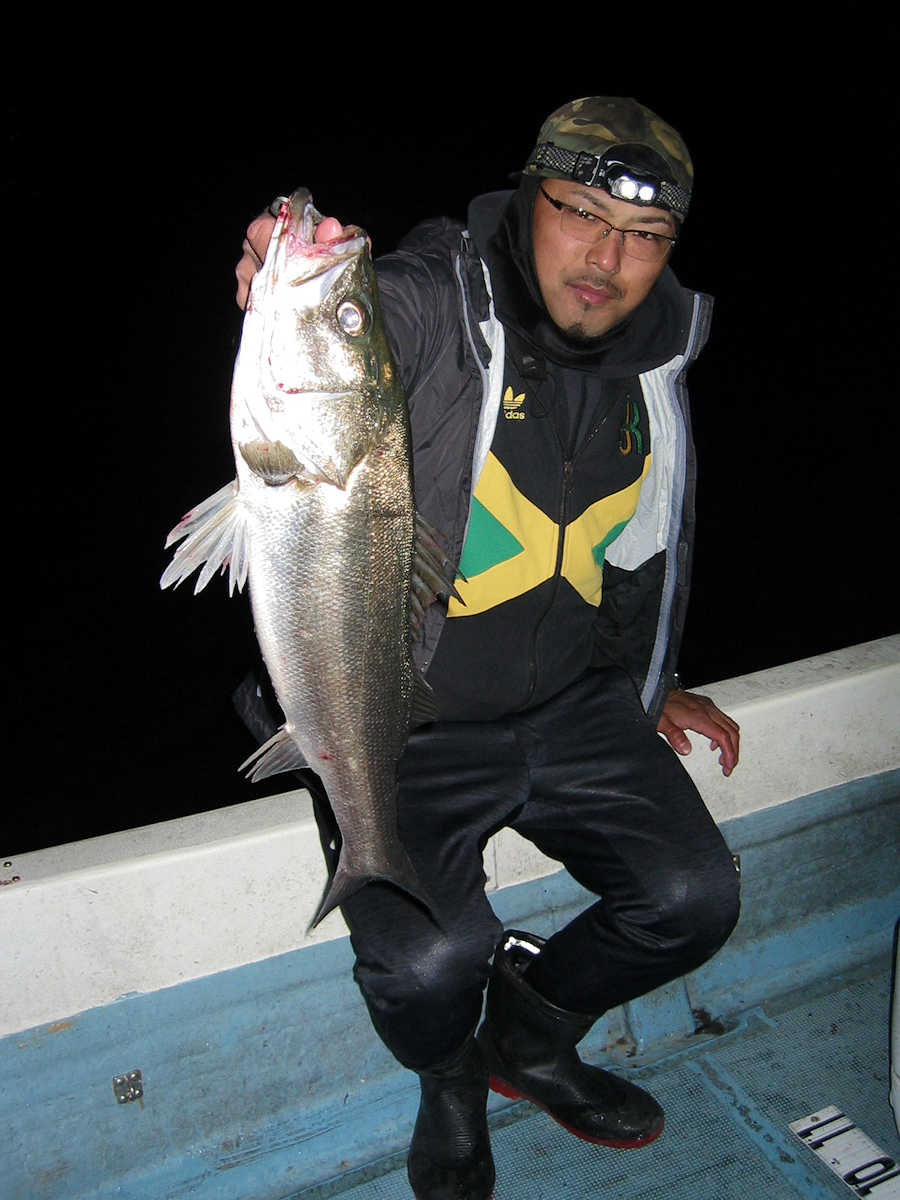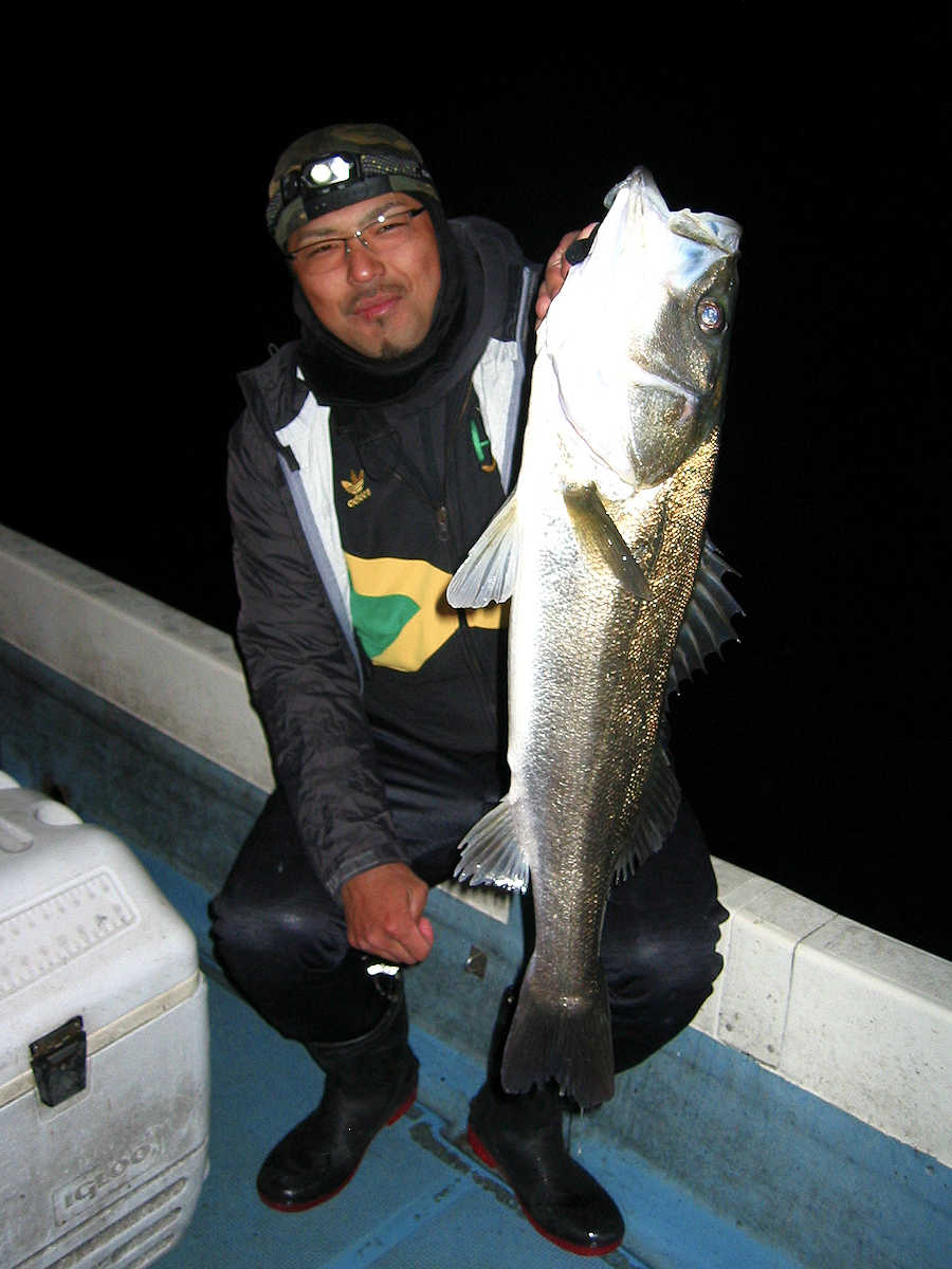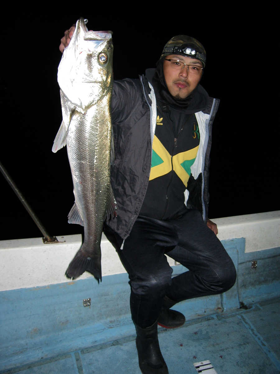 ■シーバス・ナイト×11匹 ■コメント ルアーによるシーバス狙いは奥が深い釣り方である。 私がルアーフィッシングを始めた当初はルアー関係の書籍が少なく、釣り方のイロハについて掲載されている魚種はブラックバスばかりでした。 この為、実戦でルアーを追い掛けてくる”水中に見える ”シーバスの行動を確認しながら、数多くバイトさせる秘訣を探し求めていました。 この試行錯誤の段階で感じた事は、ルアーの種類やカラー・リトリーブスピードとアクション・ポイント毎の狙い目などでバイト率が大きく変化する事でした。 なので、ルアーによるシーバス狙いは”奥が深い釣り方である”と認識しています。 本題に戻りますが、この日の対戦成績は、りょうちゃんが10匹、ちーちゃんが1匹でした。 過去、当船に乗船した時のお二人のキャッチ数はそれほど差が出ないのですが、今回は大差がついてしまいました! で、最近忘れていたルアーフィッシングの真実である、『ちょっとした違いでヒット数が変わってしまう恐ろしさ』を、今回の釣行で再認識したしだいです。 そう言えば先日の出船で、「マクー空間さんは、毎回運が良いよね~」と話した際の回答が、「腕前が良いと言ってもらえると嬉しいな~」と返答が返ってきました。 確かにその通りですね! アハハ・・・ ■シーバス・ナイト×11匹 □サイズ:55cm前後×1匹/58cm前後×1匹/60cm前後×1匹/64cm×1匹 /71cm×1匹/72cm×1匹/74cm×1匹/75cm×3匹/76cm×1匹/77cm×1匹 |