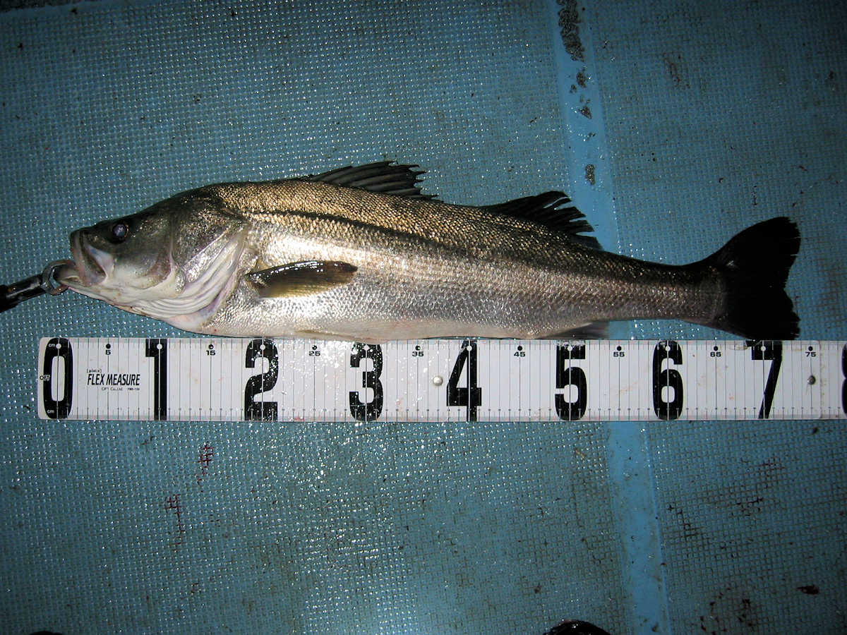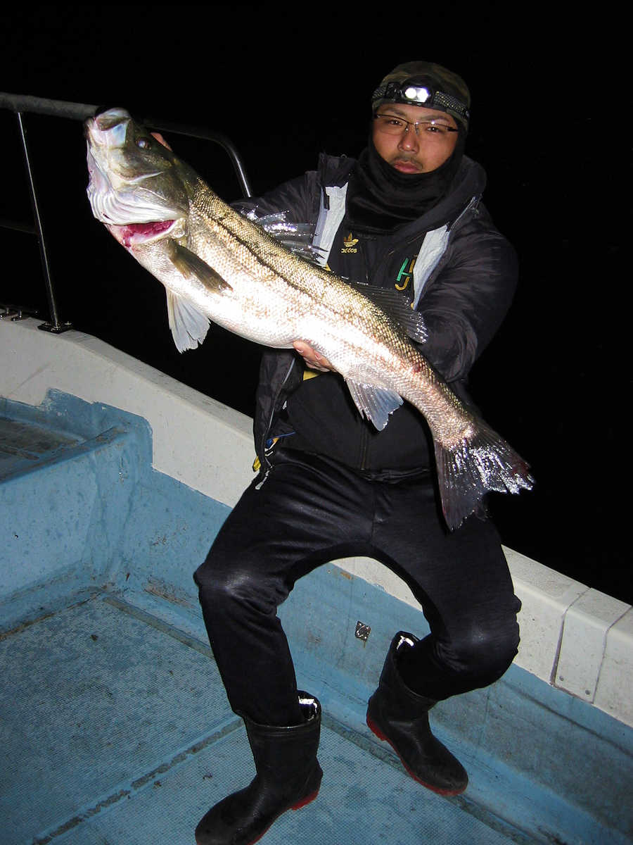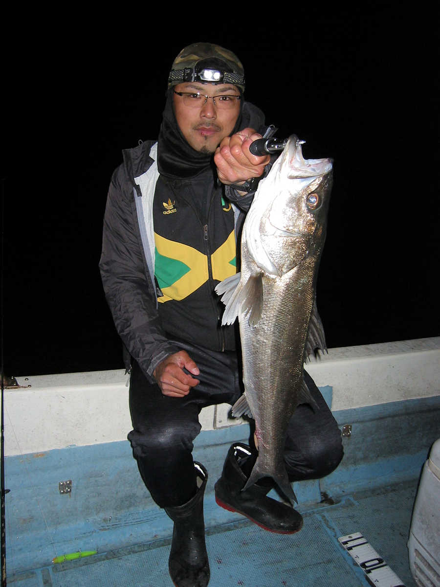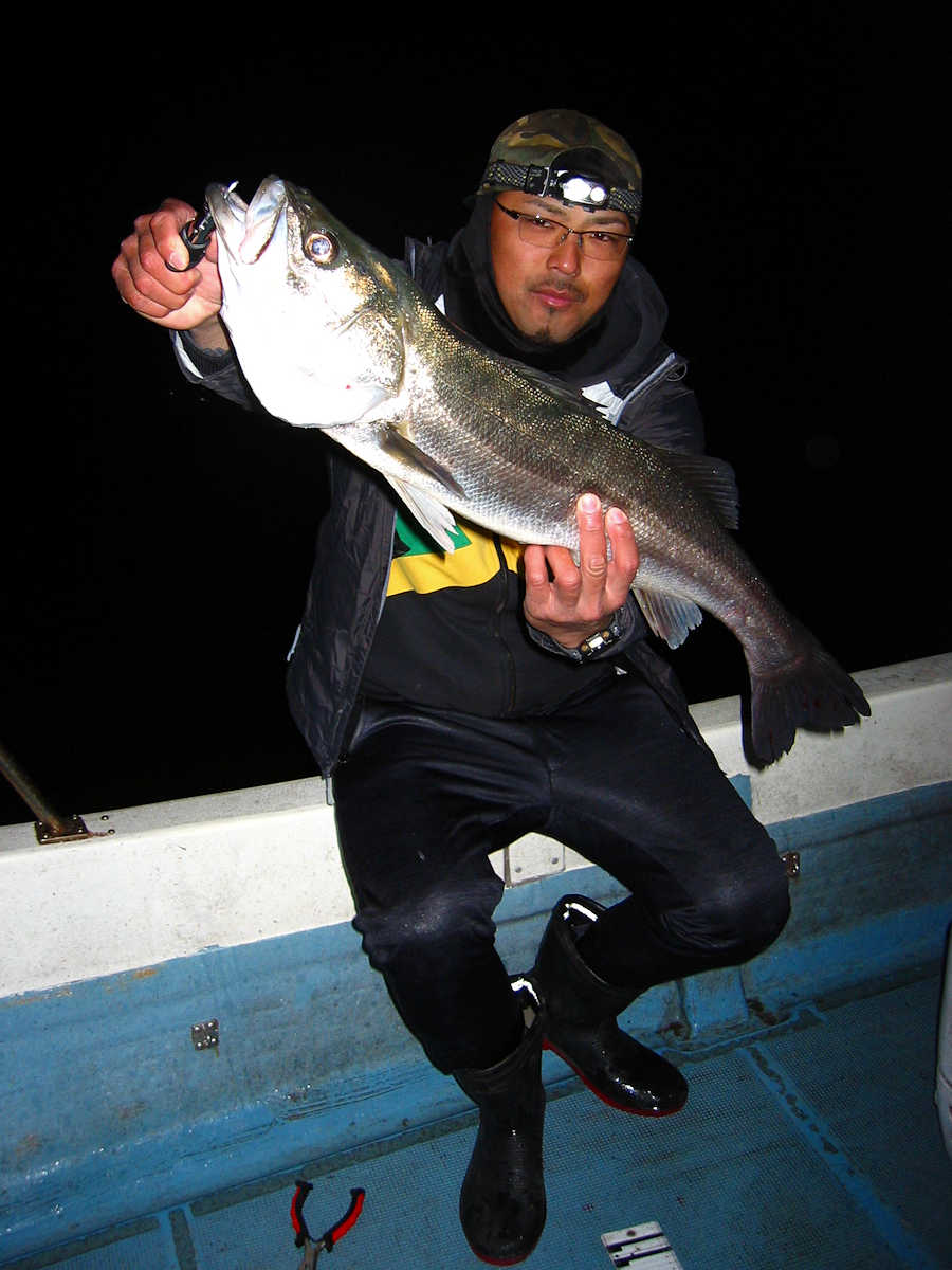 ■シーバス・ナイト×11匹 ■コメント ルアーによるシーバス狙いは奥が深い釣り方である。 私がルアーフィッシングを始めた当初はルアー関係の書籍が少なく、釣り方のイロハについて掲載されている魚種はブラックバスばかりでした。 この為、実戦でルアーを追い掛けてくる”水中に見える ”シーバスの行動を確認しながら、数多くバイトさせる秘訣を探し求めていました。 この試行錯誤の段階で感じた事は、ルアーの種類やカラー・リトリーブスピードとアクション・ポイント毎の狙い目などでバイト率が大きく変化する事でした。 なので、ルアーによるシーバス狙いは”奥が深い釣り方である”と認識しています。 本題に戻りますが、この日の対戦成績は、りょうちゃんが10匹、ちーちゃんが1匹でした。 過去、当船に乗船した時のお二人のキャッチ数はそれほど差が出ないのですが、今回は大差がついてしまいました! で、最近忘れていたルアーフィッシングの真実である、『ちょっとした違いでヒット数が変わってしまう恐ろしさ』を、今回の釣行で再認識したしだいです。 そう言えば先日の出船で、「マクー空間さんは、毎回運が良いよね~」と話した際の回答が、「腕前が良いと言ってもらえると嬉しいな~」と返答が返ってきました。 確かにその通りですね! アハハ・・・ ■シーバス・ナイト×11匹 □サイズ:55cm前後×1匹/58cm前後×1匹/60cm前後×1匹/64cm×1匹 /71cm×1匹/72cm×1匹/74cm×1匹/75cm×3匹/76cm×1匹/77cm×1匹 |