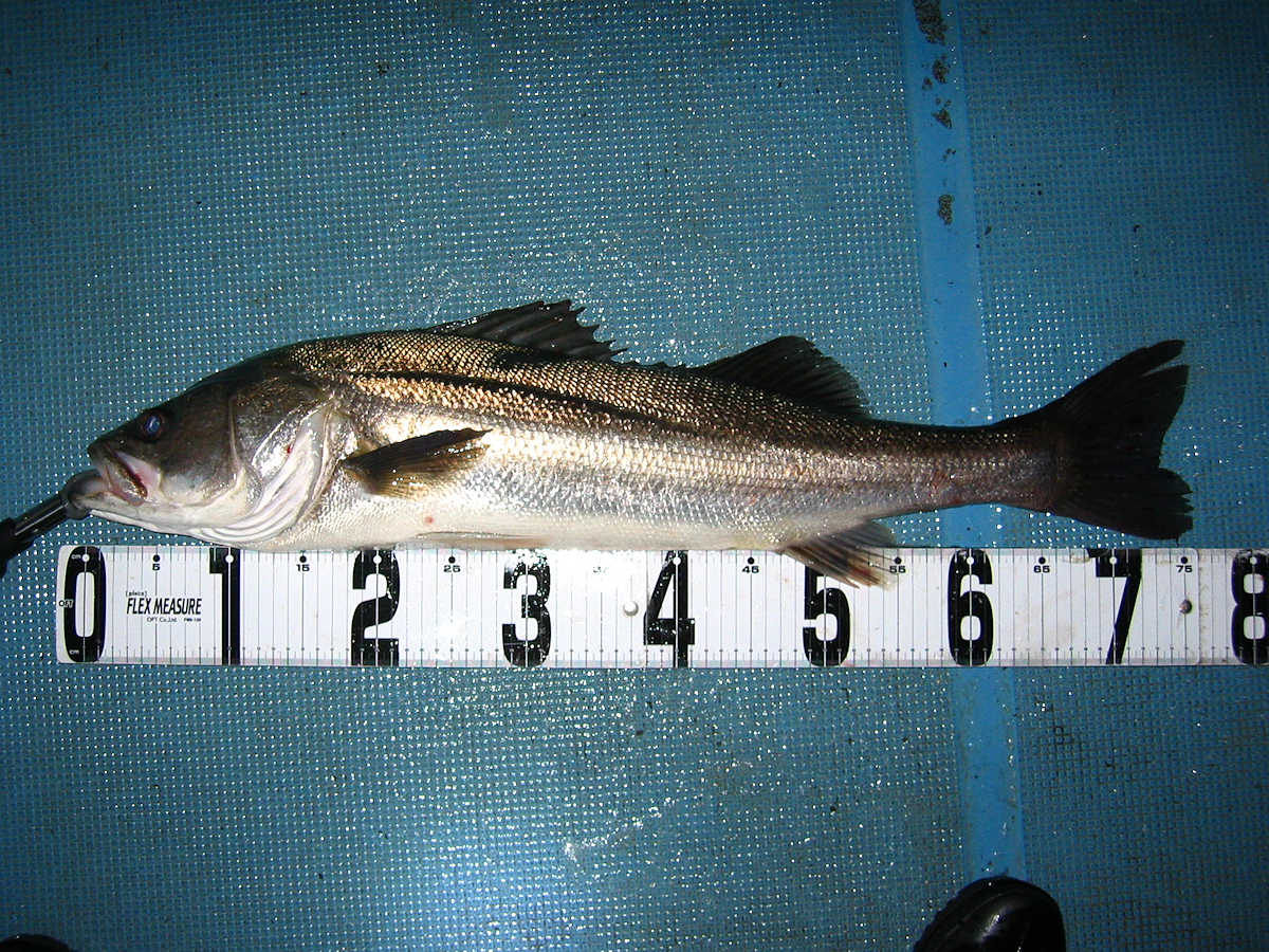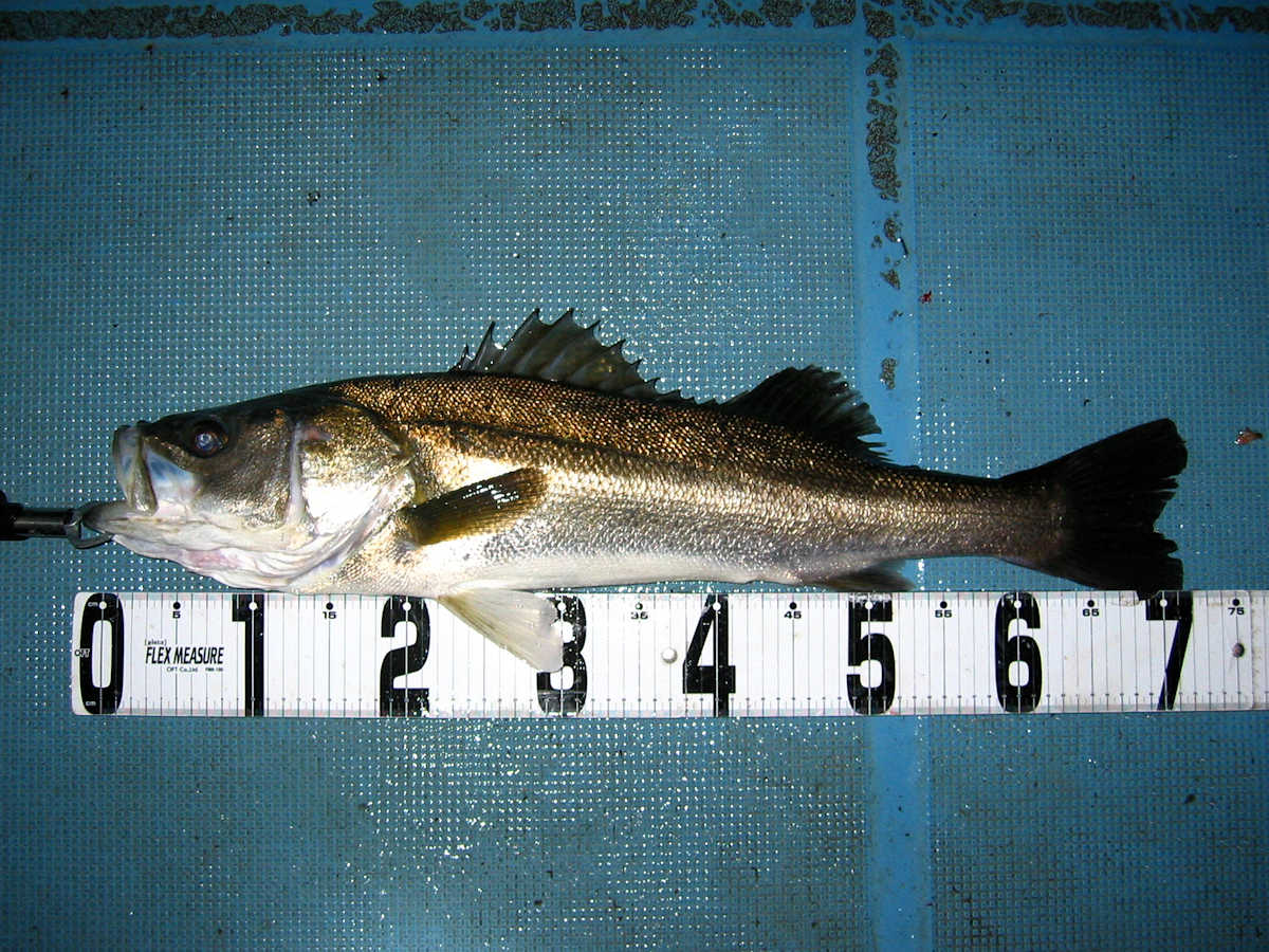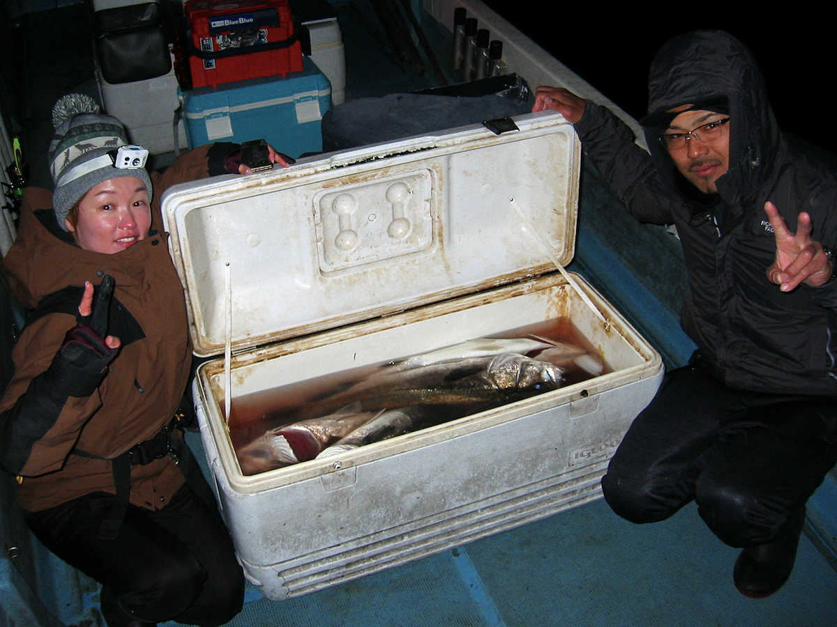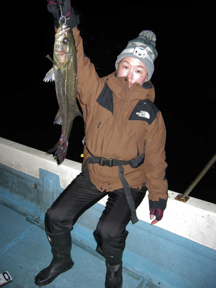 ■シーバス・ナイト×11匹 ■コメント ルアーによるシーバス狙いは奥が深い釣り方である。 私がルアーフィッシングを始めた当初はルアー関係の書籍が少なく、釣り方のイロハについて掲載されている魚種はブラックバスばかりでした。 この為、実戦でルアーを追い掛けてくる”水中に見える ”シーバスの行動を確認しながら、数多くバイトさせる秘訣を探し求めていました。 この試行錯誤の段階で感じた事は、ルアーの種類やカラー・リトリーブスピードとアクション・ポイント毎の狙い目などでバイト率が大きく変化する事でした。 なので、ルアーによるシーバス狙いは”奥が深い釣り方である”と認識しています。 本題に戻りますが、この日の対戦成績は、りょうちゃんが10匹、ちーちゃんが1匹でした。 過去、当船に乗船した時のお二人のキャッチ数はそれほど差が出ないのですが、今回は大差がついてしまいました! で、最近忘れていたルアーフィッシングの真実である、『ちょっとした違いでヒット数が変わってしまう恐ろしさ』を、今回の釣行で再認識したしだいです。 そう言えば先日の出船で、「マクー空間さんは、毎回運が良いよね~」と話した際の回答が、「腕前が良いと言ってもらえると嬉しいな~」と返答が返ってきました。 確かにその通りですね! アハハ・・・ ■シーバス・ナイト×11匹 □サイズ:55cm前後×1匹/58cm前後×1匹/60cm前後×1匹/64cm×1匹 /71cm×1匹/72cm×1匹/74cm×1匹/75cm×3匹/76cm×1匹/77cm×1匹 |