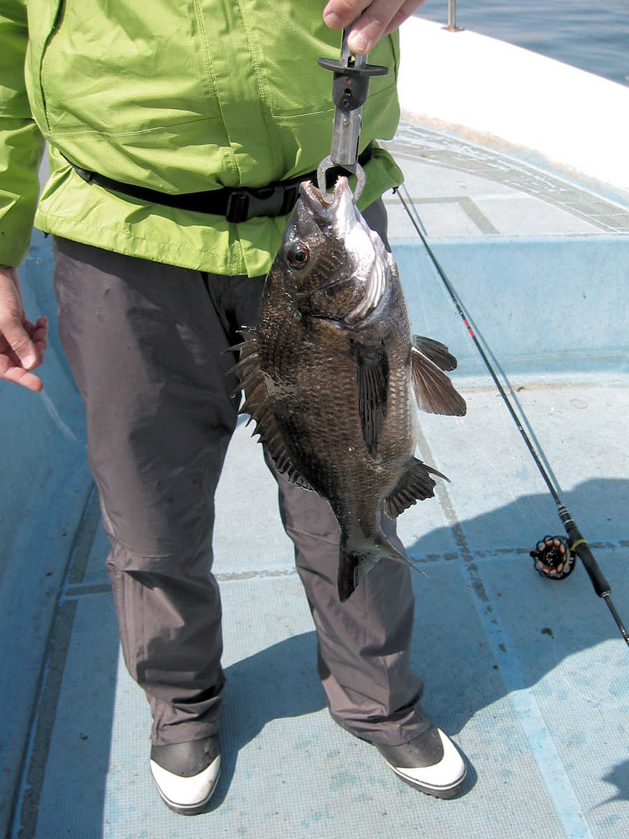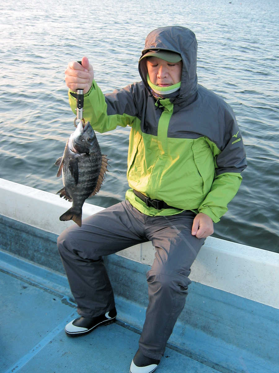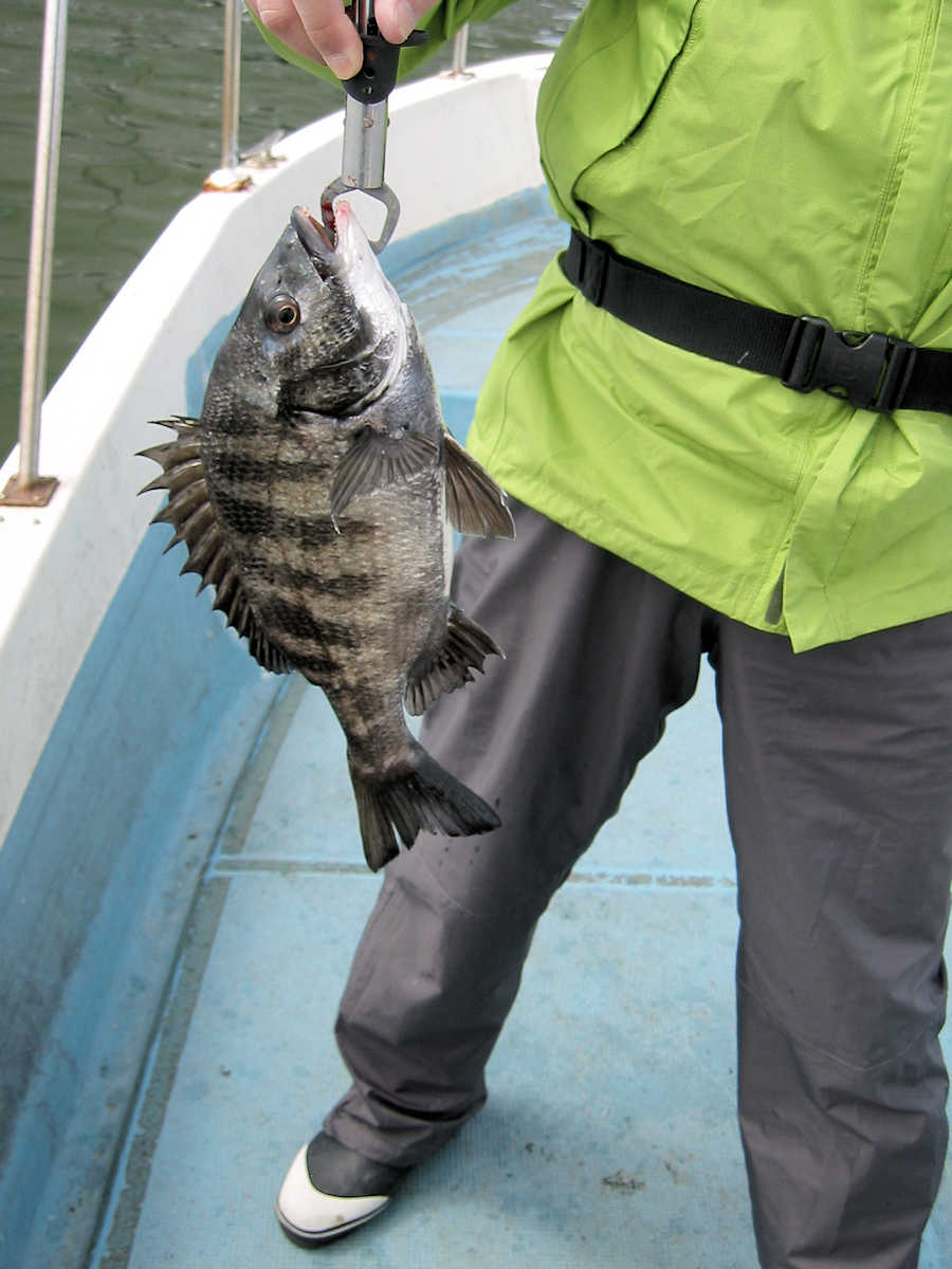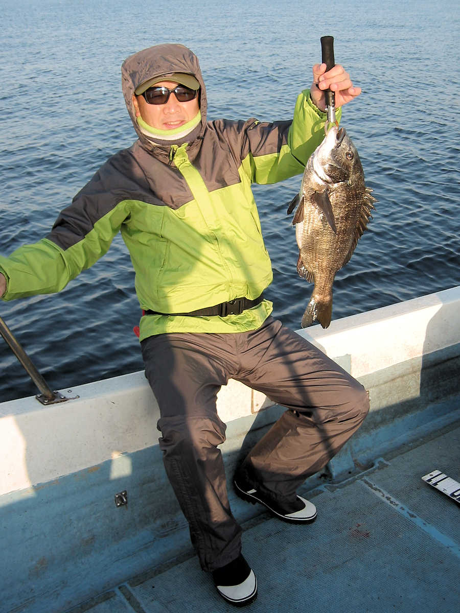 ■黒鯛× 27匹 ■コメント 今年2回目の黒鯛狙い、前回の出船では11匹でしたが、今回は魚が入って来たようで27匹キャッチできました。 雨降りの天候が続き海水のニゴリ具合が心配でしたが、出船してみると悪い予想が当たり、スミスミの奇麗な海でした。 心配しながら釣りを開始すると早々とアタリが出ましたが、なんと3匹連続でバラシ! 針の大きさを変えると、今度は順調にキャッチ数を伸ばす展開となりホッとしました。 そんなこんなで飽きない程度にアタリが続き、この時期としては珍しく27匹キャッチでき楽しい黒鯛釣りとなりました。 ただ、相変わらず釣れるサイズが小さく、まともなサイズは、45㎝と48㎝の2匹だけ。 その他は、35㎝前後が7割り、40㎝前後が3割とチイサイズがメインでした。 今後サイズアップする事を祈りましょう。 ■黒鯛× 27匹 □サイズ:35cm前後×7割りぐらい/40cm前後×3割りぐらい/45cm×1匹/48cm×1匹 □きんちゃん× 25匹 バラシ×19匹 +スッポヌケ×4回ぐらい、エサ潰され×2回 □恵比寿さん× 2匹 バラシ×2匹 +スッポヌケ×1回、エサ潰され×1回 |