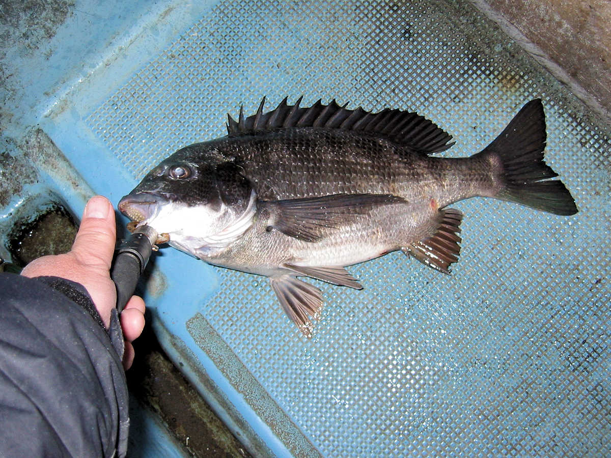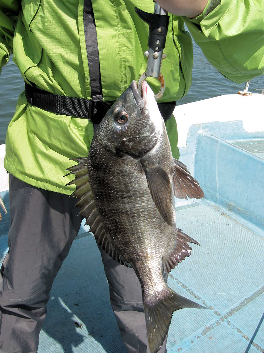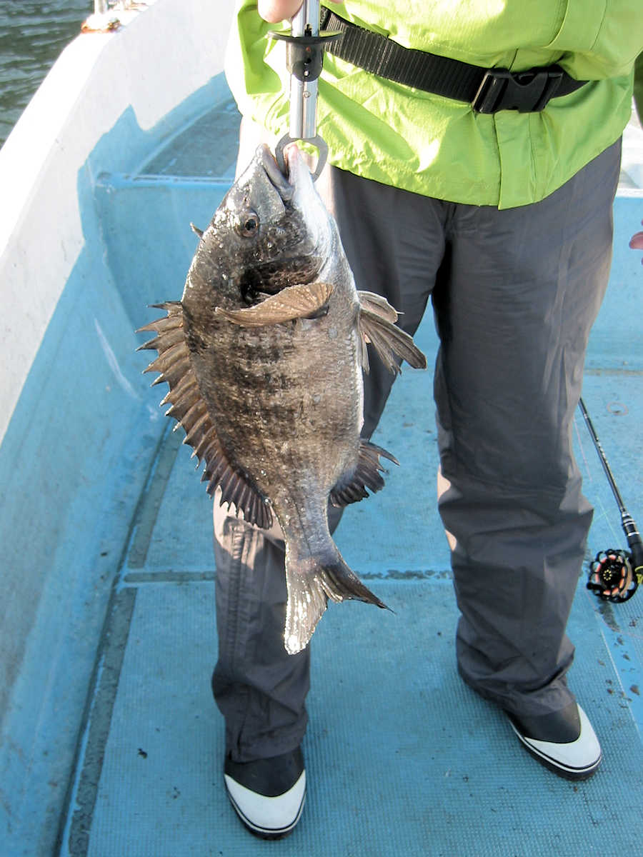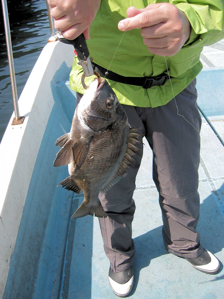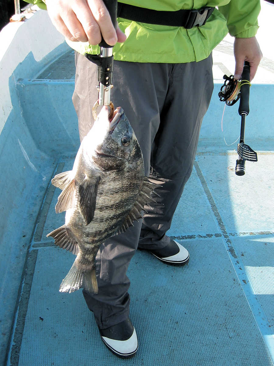 ■黒鯛× 27匹 ■コメント 今年2回目の黒鯛狙い、前回の出船では11匹でしたが、今回は魚が入って来たようで27匹キャッチできました。 雨降りの天候が続き海水のニゴリ具合が心配でしたが、出船してみると悪い予想が当たり、スミスミの奇麗な海でした。 心配しながら釣りを開始すると早々とアタリが出ましたが、なんと3匹連続でバラシ! 針の大きさを変えると、今度は順調にキャッチ数を伸ばす展開となりホッとしました。 そんなこんなで飽きない程度にアタリが続き、この時期としては珍しく27匹キャッチでき楽しい黒鯛釣りとなりました。 ただ、相変わらず釣れるサイズが小さく、まともなサイズは、45㎝と48㎝の2匹だけ。 その他は、35㎝前後が7割り、40㎝前後が3割とチイサイズがメインでした。 今後サイズアップする事を祈りましょう。 ■黒鯛× 27匹 □サイズ:35cm前後×7割りぐらい/40cm前後×3割りぐらい/45cm×1匹/48cm×1匹 □きんちゃん× 25匹 バラシ×19匹 +スッポヌケ×4回ぐらい、エサ潰され×2回 □恵比寿さん× 2匹 バラシ×2匹 +スッポヌケ×1回、エサ潰され×1回 |