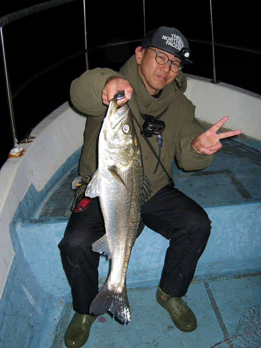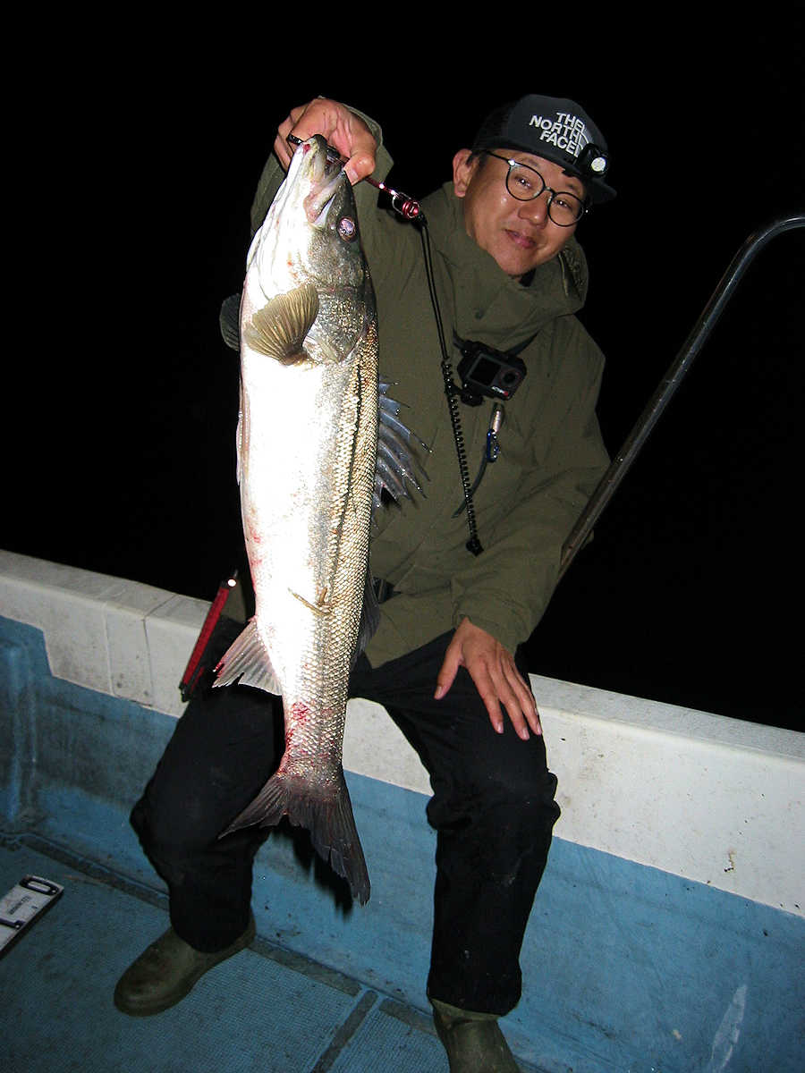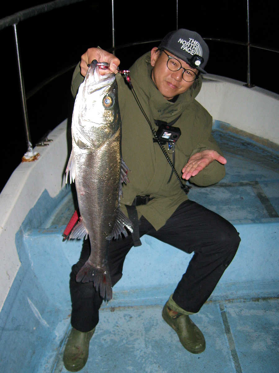 ■シーバス・ナイト×20匹(放流サイズ×1匹含む) ■シーバス・デイ×9匹(放流サイズ×3匹含む) ■コメント ナイトの状況はマアマアで、この日は、60㎝級が9匹・70㎝級が2匹・80㎝も顔を出し、楽しい釣りができました。 ただ、反応が全くないポイントもありますので、良いサイズに出会えるかは運しだいですね! ナイトとは逆にデイは相変わらずシブく、最大級は53cmぐらいなヤツが1匹だけで、たまにヒットするのは40㎝級ばかりでした。 まあ、サイズが小さかったのでバラシは多めでしたが、お客様のお二人は、「ナイトと違って、これはこれで楽しい!」と言われていましたのでヨシとしましょう。 ■シーバス・ナイト×20匹(放流サイズ×1匹含む) □サイズ:42cm前後×1匹/50cm前後×1匹/54cm前後×2匹/58cm前後×4匹ぐらい /61cm前後×5匹ぐらい/65cm×1匹/67cm×3匹/71cm×1匹/78cm×1匹/80cm×1匹 ■シーバス・デイ×9匹(放流サイズ×3匹含む) □サイズ:40cm前後×3匹/45cm前後×3匹/48cm前後×2匹/53cm前後×1匹 |