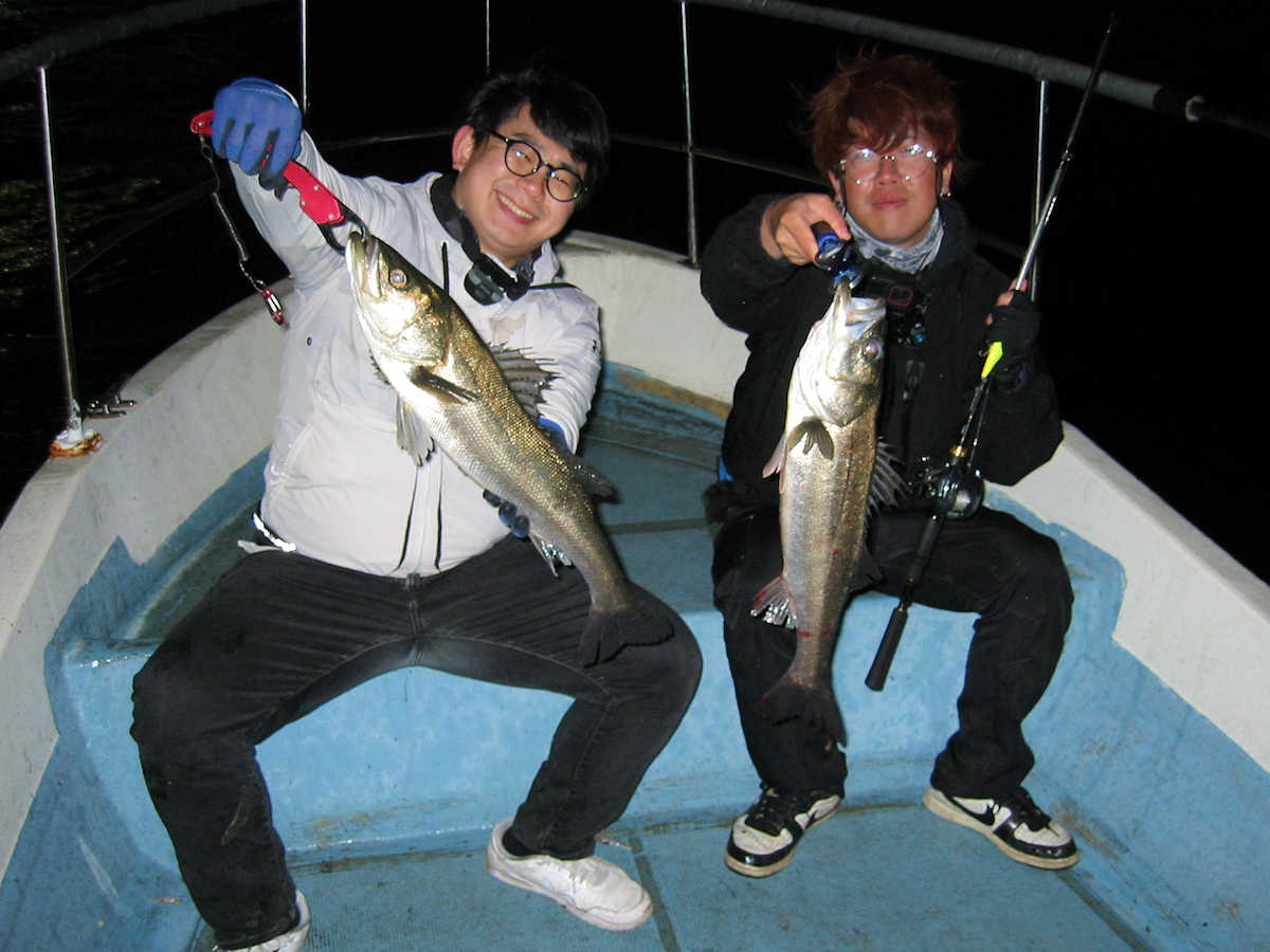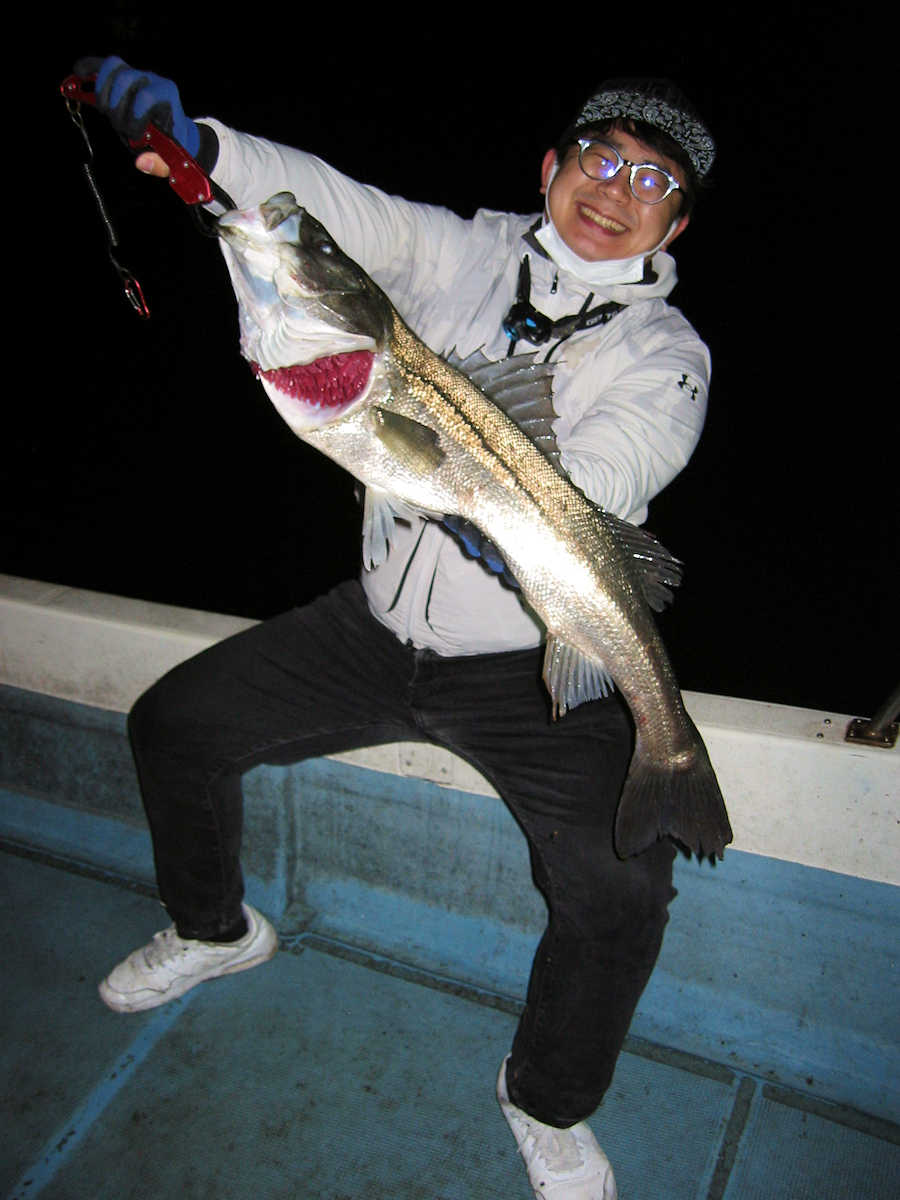 ■シーバス・ナイト×21匹(放流サイズ×3匹+痩せた62㎝級×1匹を含む) ■コメント イェ~ィ! ひぐっちゃん、83㎝キャッチ! おめでとうございます♪ 毎回このサイズが出れば良いのですが、なかなかヒットしないんですよね~。 まあ、当然か・・・。 この日は狙うポイントに入っている魚の群れが入れ替わったようで、全体的にサイズが小さくなり、痩せた魚が目立ち少々がっかり! とは言え、幸運な事にルアーへの反応はマアマアで、バラシやバイトのコンも続いてくれましたので楽しい釣ができました。 釣れて良かったです♪ ■シーバス・ナイト×21匹(放流サイズ×3匹+痩せた64㎝級×1匹を含む) □サイズ:35~43cm×3匹/54cm前後×4匹ぐらい/57cm前後×6匹ぐらい /61cm前後×5匹ぐらい/69cm×1匹/83cm×1匹 |