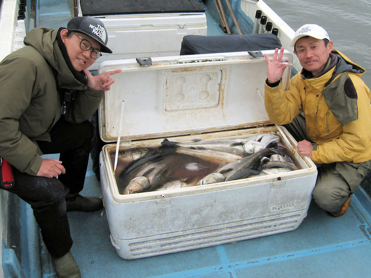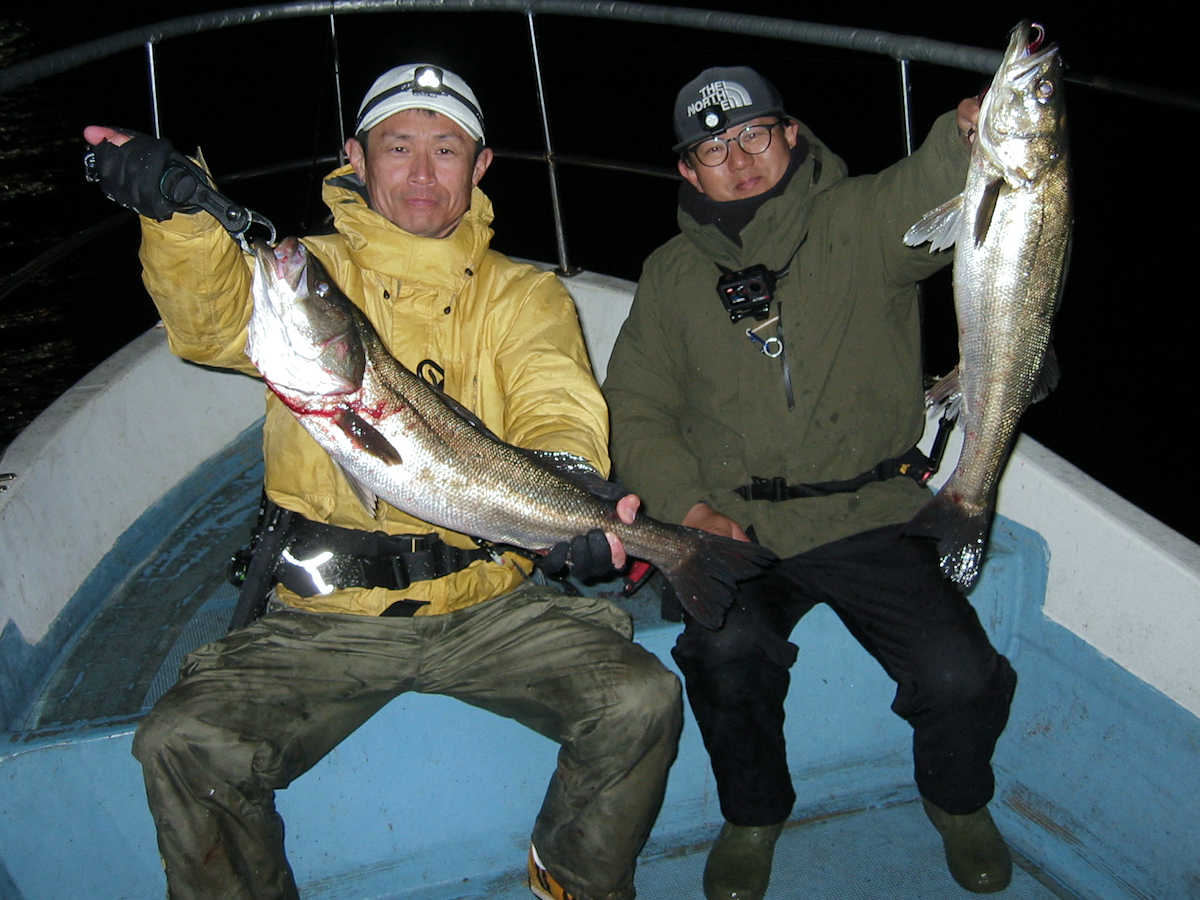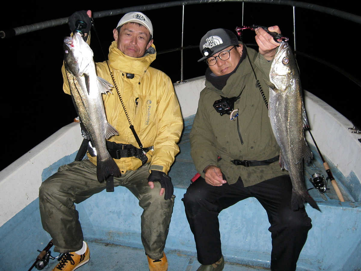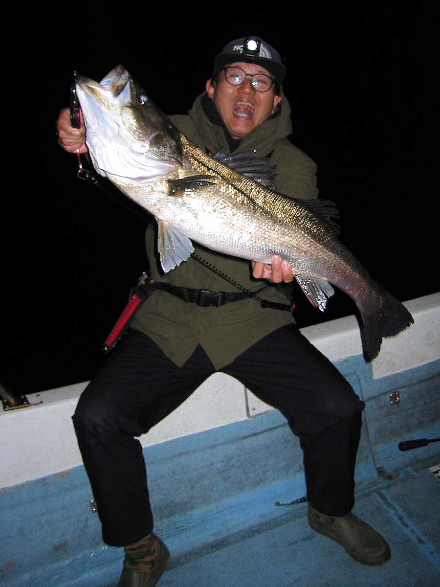 ■シーバス・ナイト×45匹 ■シーバス・デイ×1匹(40㎝前後の放流サイズ) ■コメント ウヒョ~! なんと、この日はお腹パンパンの群れに出会う事ができ大漁でした! サイズも60㎝級がメインで、70~80㎝も顔を出し、楽しく大忙しな釣行となりました。 この日は風が弱かったので、前日とは違うコースを調査に行きました。 前半は前日と同様の50㎝級がメインでしたが、とあるポイントで急にお腹パンパンの魚が釣れだし、サイズも60~70㎝前半ばかり。 良い感じでバイト&ヒットが続き、ダブルヒットも何度もありで大忙し。 メジャーでサイズを計測したり写真撮影する暇がない状況が続いてくれたお陰で、楽しいルアーフィッシングを満喫できました。 ちなみに、前日との違いは狙うポイント以外に、キャッチした魚が吐き出すベイトの大きさでした。 前日は7㎝前後のカタクチイワシでしたが、この日は11~15㎝の大きなカタクチイワシ。 このサイズのカタクチイワシを毎日食べていれば、オデブの体型になるのかな? そうそう、明るくなりデイのポイントを40分ほど探りましたが、40㎝前後のチイサイズを1匹キャッチ&バイトのコンが1回だけとショボショボ。 デイはしばらくの間、我慢の釣りが続きそうです。 ■シーバス・ナイト×45匹 □サイズ:54cm前後×4匹ぐらい/58cm前後×4匹ぐらい /62cm前後×10匹ぐらい/65cm前後×10匹ぐらい/67cm前後×9匹ぐらい /70cm前後×多分6匹/72cm×1匹/80cm×1匹 ■シーバス・デイ×1匹(40㎝前後の放流サイズ) |