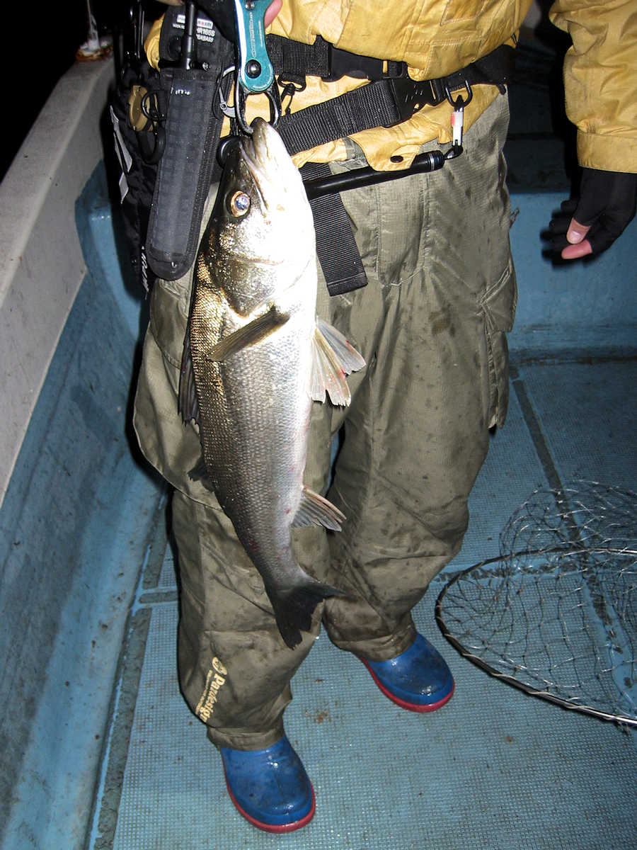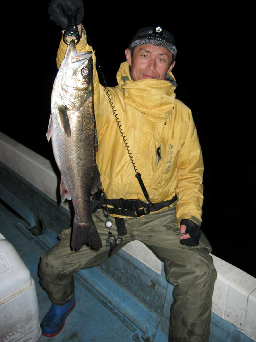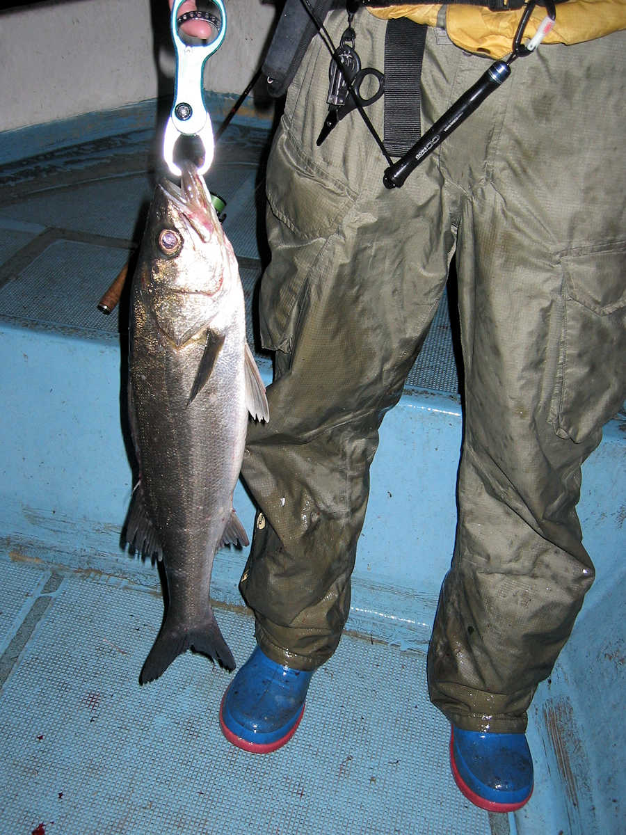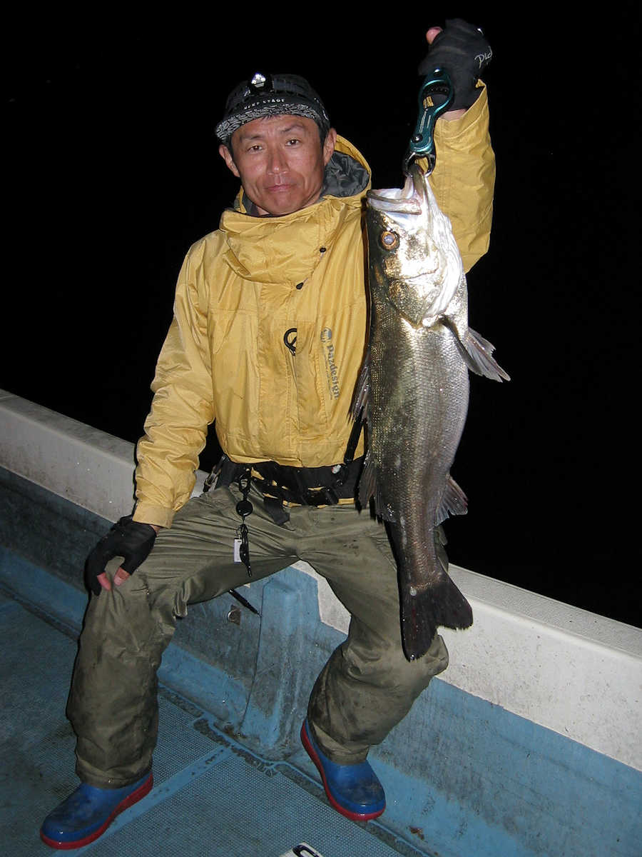 ■シーバス・ナイト×31匹 ■シーバス・デイ×6匹(めぐりさん) ■黒鯛× 10匹(しんちゃん×8/めぐりさん×2) ■コメント この日はナイト・シーバスで良い釣果となり、デイでも本命の黒鯛を10匹キャッチでき楽しい釣行となりました。 当日は魚を卸している魚屋が休みなので、血が出たシーバス2匹以外はリリースしましたので、その分、ナイトのシーバスと黒鯛の写真を全て撮影してみました。 ナイトのシーバスは太った魚が多く、60アップを23匹キャッチ! デイでは、めぐりさんがシーバスを狙い、チイサイズでしたが6匹キャッチ! しんちゃんは黒鯛を狙い8匹キャッチ! シーバスを一緒に狙えないポイントでは、めぐりさんも短竿で黒鯛狙いに挑戦し2匹キャッチでき、船頭としてはノルマ達成で満足できる釣行となりました。 海水のニゴリ具合はスミスミ状態ですので、良い天気が続かない限り黒鯛狙いはかなり厳しい状況となりますので、予めご了承ください。 ■シーバス・ナイト×31匹(魚屋や休みで、血が出た2匹以外は放流) □サイズ:57cm前後×8匹/60cm前後×8匹/62cm前後×5匹/64cm×4匹 /65cm×3匹/66cm×1匹/67cm×1匹/70cm×1匹 ■シーバス・デイ×6匹(全て放流) □サイズ:40~45cm×4匹/48cm前後×2匹 ■黒鯛× 10匹(全て放流) □サイズ:35cm前後×1匹/40cm前後×4匹/43cm前後×1匹/47cm前後×4匹 |