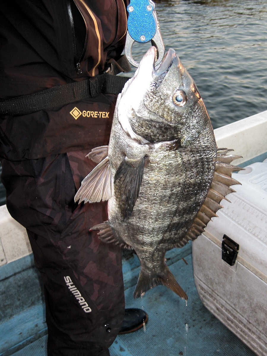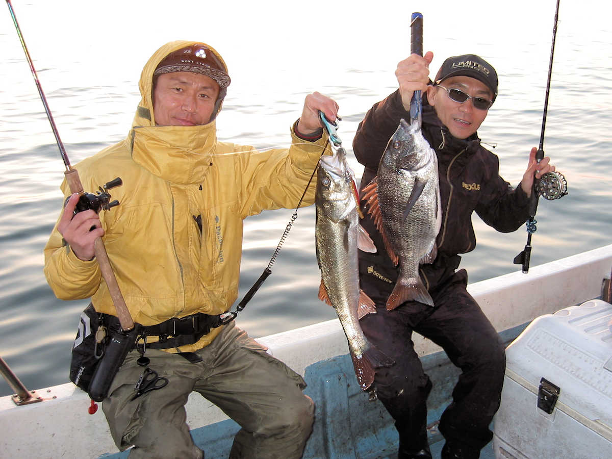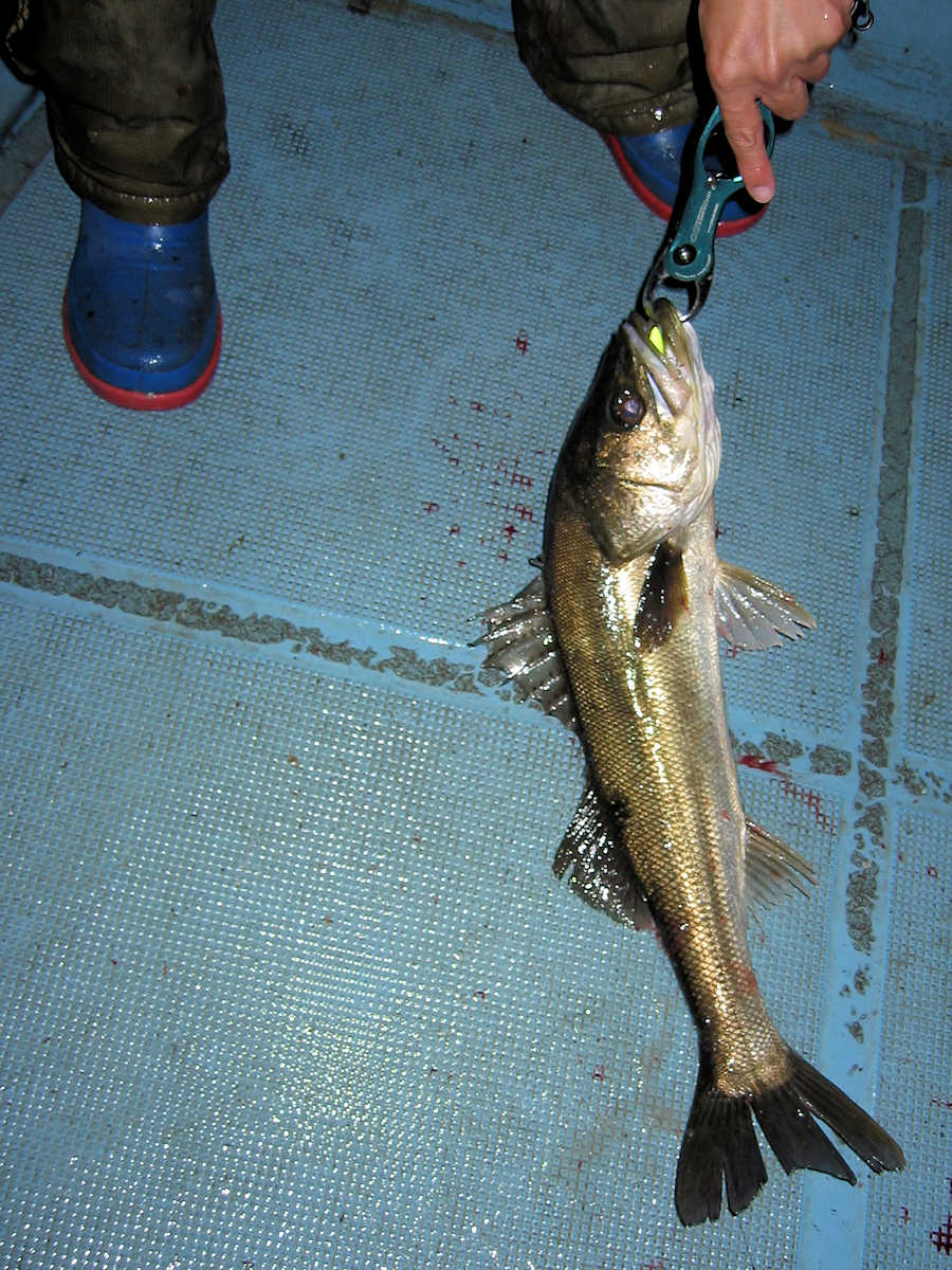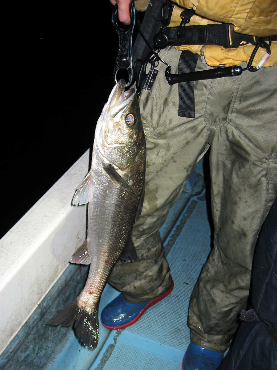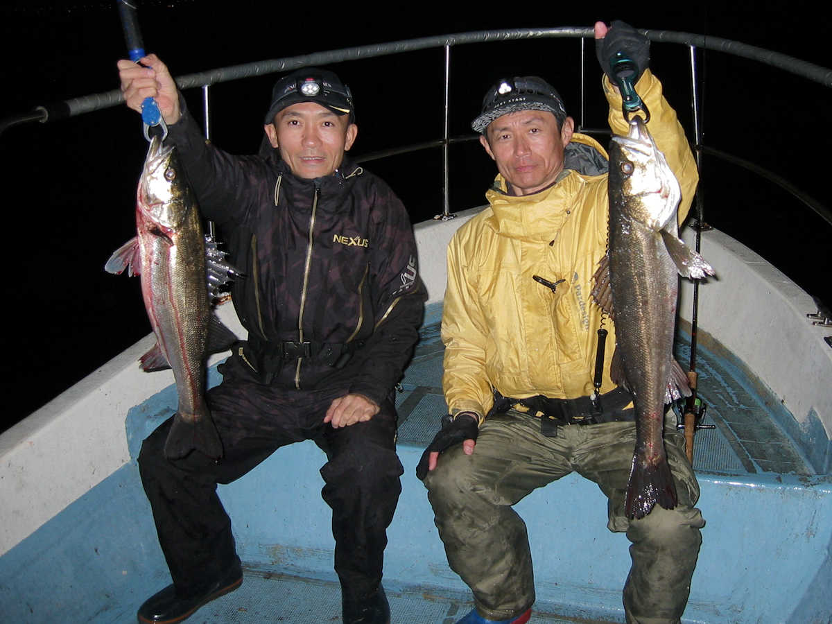 ■シーバス・ナイト×31匹 ■シーバス・デイ×6匹(めぐりさん) ■黒鯛× 10匹(しんちゃん×8/めぐりさん×2) ■コメント この日はナイト・シーバスで良い釣果となり、デイでも本命の黒鯛を10匹キャッチでき楽しい釣行となりました。 当日は魚を卸している魚屋が休みなので、血が出たシーバス2匹以外はリリースしましたので、その分、ナイトのシーバスと黒鯛の写真を全て撮影してみました。 ナイトのシーバスは太った魚が多く、60アップを23匹キャッチ! デイでは、めぐりさんがシーバスを狙い、チイサイズでしたが6匹キャッチ! しんちゃんは黒鯛を狙い8匹キャッチ! シーバスを一緒に狙えないポイントでは、めぐりさんも短竿で黒鯛狙いに挑戦し2匹キャッチでき、船頭としてはノルマ達成で満足できる釣行となりました。 海水のニゴリ具合はスミスミ状態ですので、良い天気が続かない限り黒鯛狙いはかなり厳しい状況となりますので、予めご了承ください。 ■シーバス・ナイト×31匹(魚屋や休みで、血が出た2匹以外は放流) □サイズ:57cm前後×8匹/60cm前後×8匹/62cm前後×5匹/64cm×4匹 /65cm×3匹/66cm×1匹/67cm×1匹/70cm×1匹 ■シーバス・デイ×6匹(全て放流) □サイズ:40~45cm×4匹/48cm前後×2匹 ■黒鯛× 10匹(全て放流) □サイズ:35cm前後×1匹/40cm前後×4匹/43cm前後×1匹/47cm前後×4匹 |