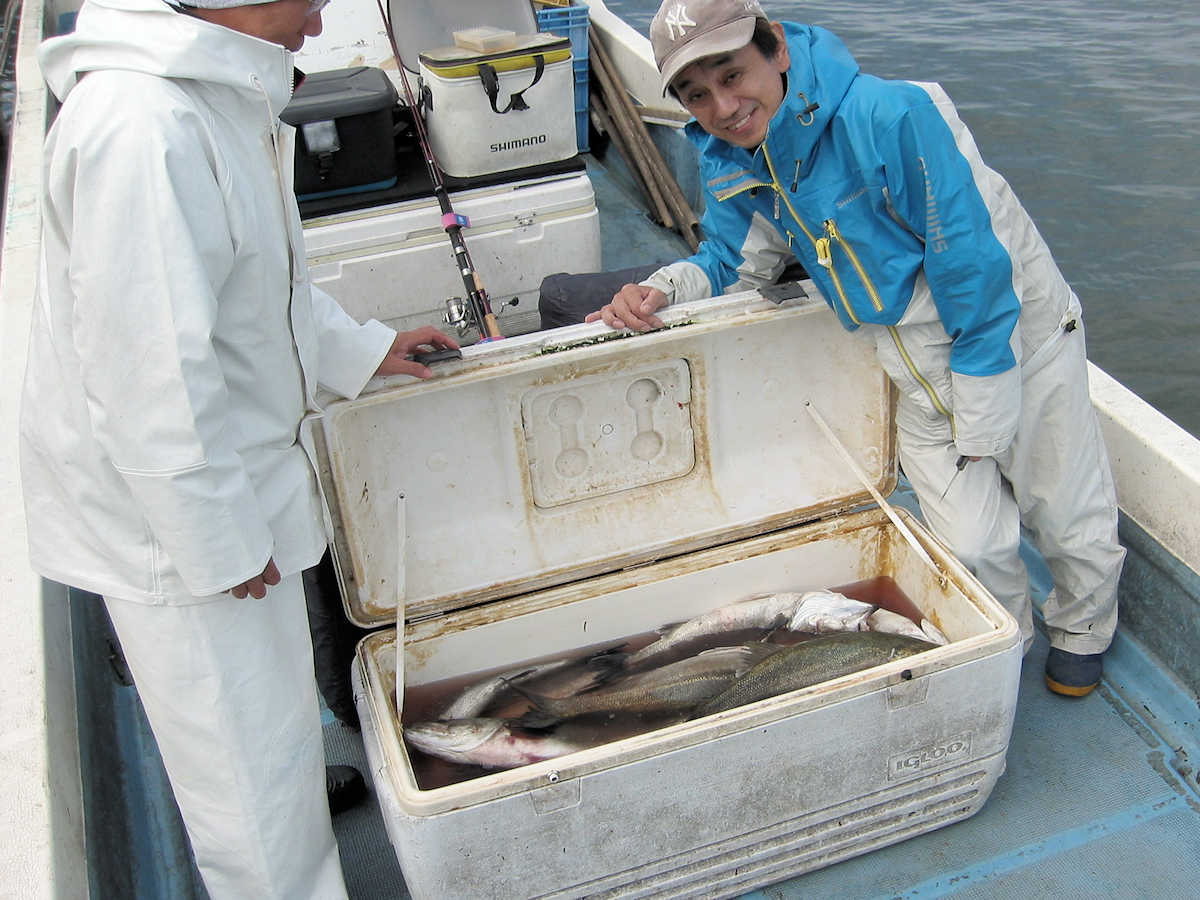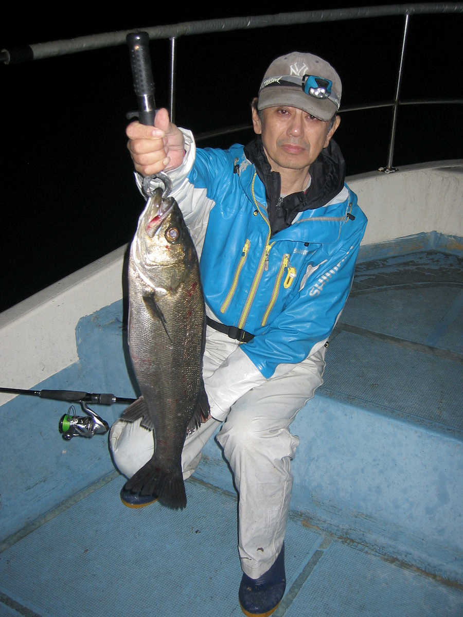 ■シーバス・ナイト× 25匹(放流サイズ×1匹含む) ■マダコ× チイサイズばかり30パイぐらい?(放流サイズ×15タコぐらい含む) ■コメント 6/1はマダコの解禁日、前半ナイト・シーバス狙い、明るくなったらタコのはっちゃん狙いで出船しました。 好調のナイト・シーバスは、天気予報大外れで風が収まらずガボガボの海。 狙いたいポイントを狙いに行けず、仕方なく風が若干避けられるポイントを狙うが、釣れないポイント多く大苦戦! それでも釣れるポイントもあり狙うが、そんなポイントに限り風と波の影響を受けて船が吹っ飛んで行ってしまうので、流し直すのにも波が高く時間が掛かる。 そんなこんなで苦戦しながら時間だけが過ぎてゆき、風が収まり、まともな釣りができるようになった頃には明るくなっていました。ガチャピーン! まあ、25匹釣れたのでホッとしましたが、久しぶりに船頭もお客さまも大変苦労するシーバス狙いとなりました。 明るくなり 到着すると同業者とレジャーボートがワサワサ動き回り、皆さんお気に入りのポイントをチェックしている。 狙ってみると飽きない程度のタイミングでエギに乗るが、チイサイズばかりで、リールを巻いている最中に外れてしまう。 キャッチしたはっちゃんも、放流するかキープするか迷うサイズばかりで、ポイント移動をしてもサイズが大きくなることはなく、一般的なキープサイズの数は30パイ前後釣れた中の4ハイぐらいでした。 まあ、シーバスもタコのはっちゃんも釣れて良かったです。 ■シーバス・ナイト×25匹(放流サイズ×1匹含む) □サイズ:40cm前後×1匹/50cm前後×2匹/55cm前後×4匹ぐらい/58cm前後×5匹ぐらい/62cm前後×10匹ぐらい/65cm前後×3匹 |