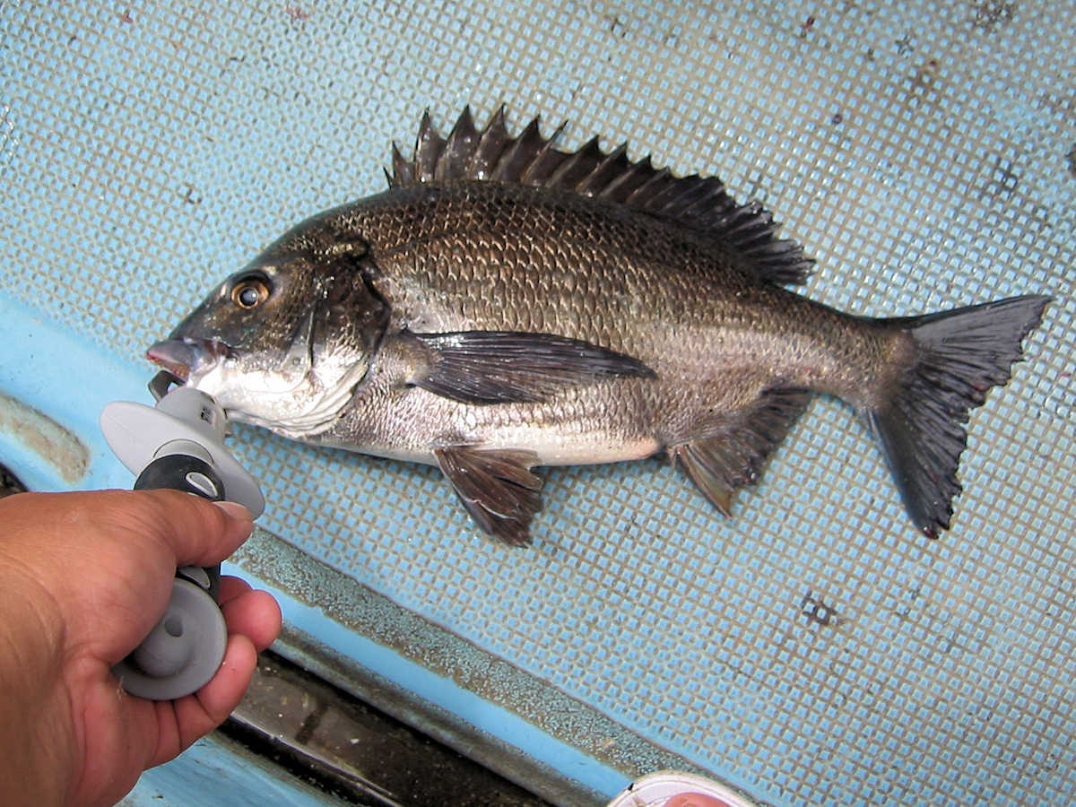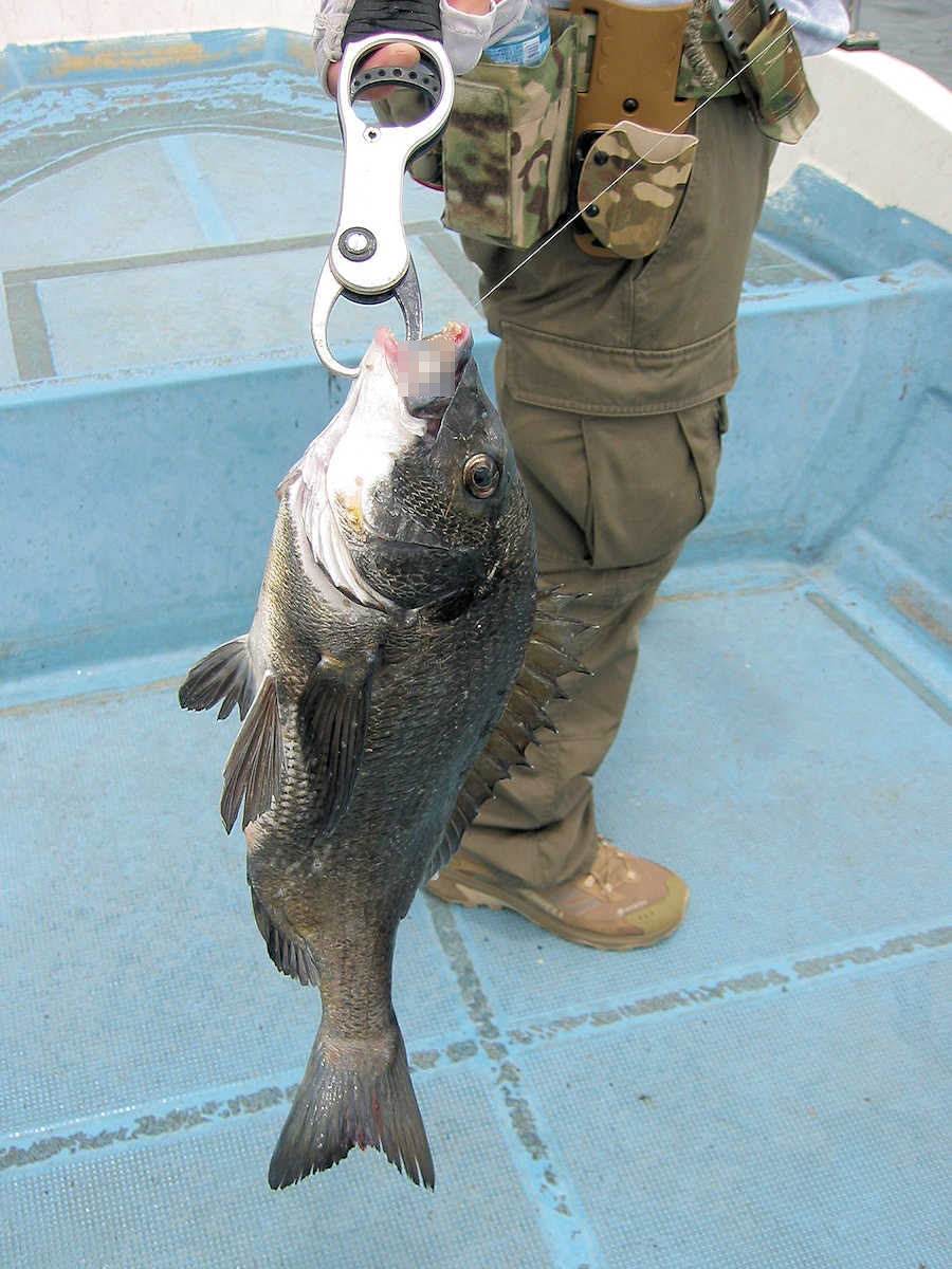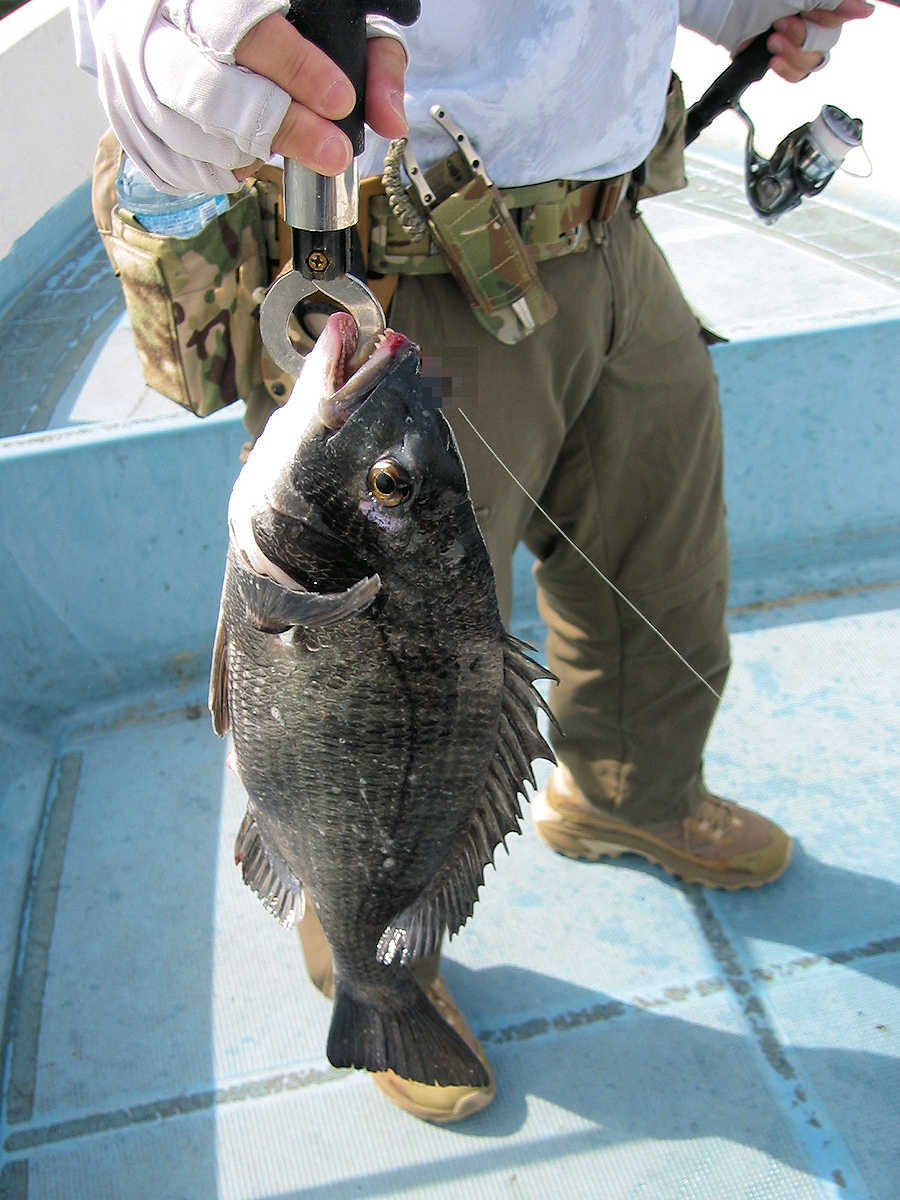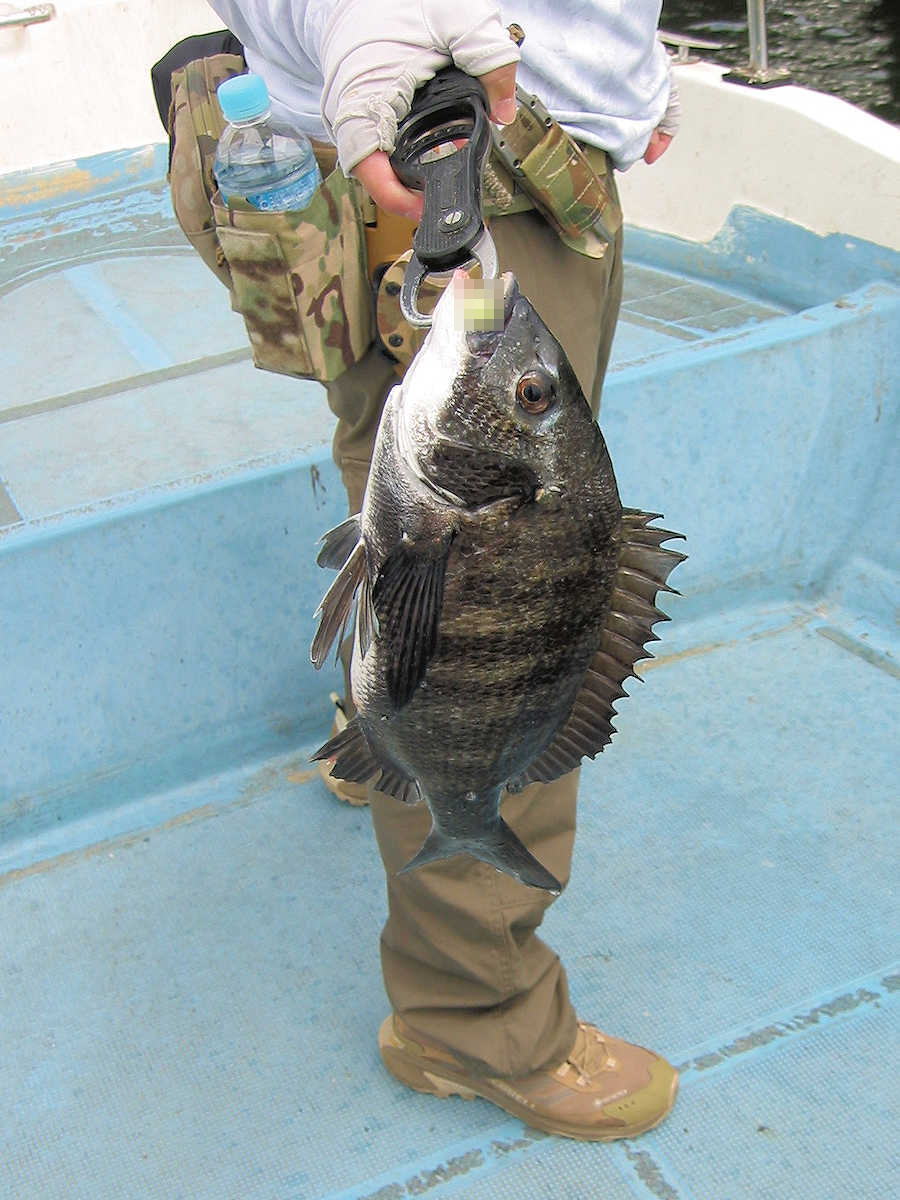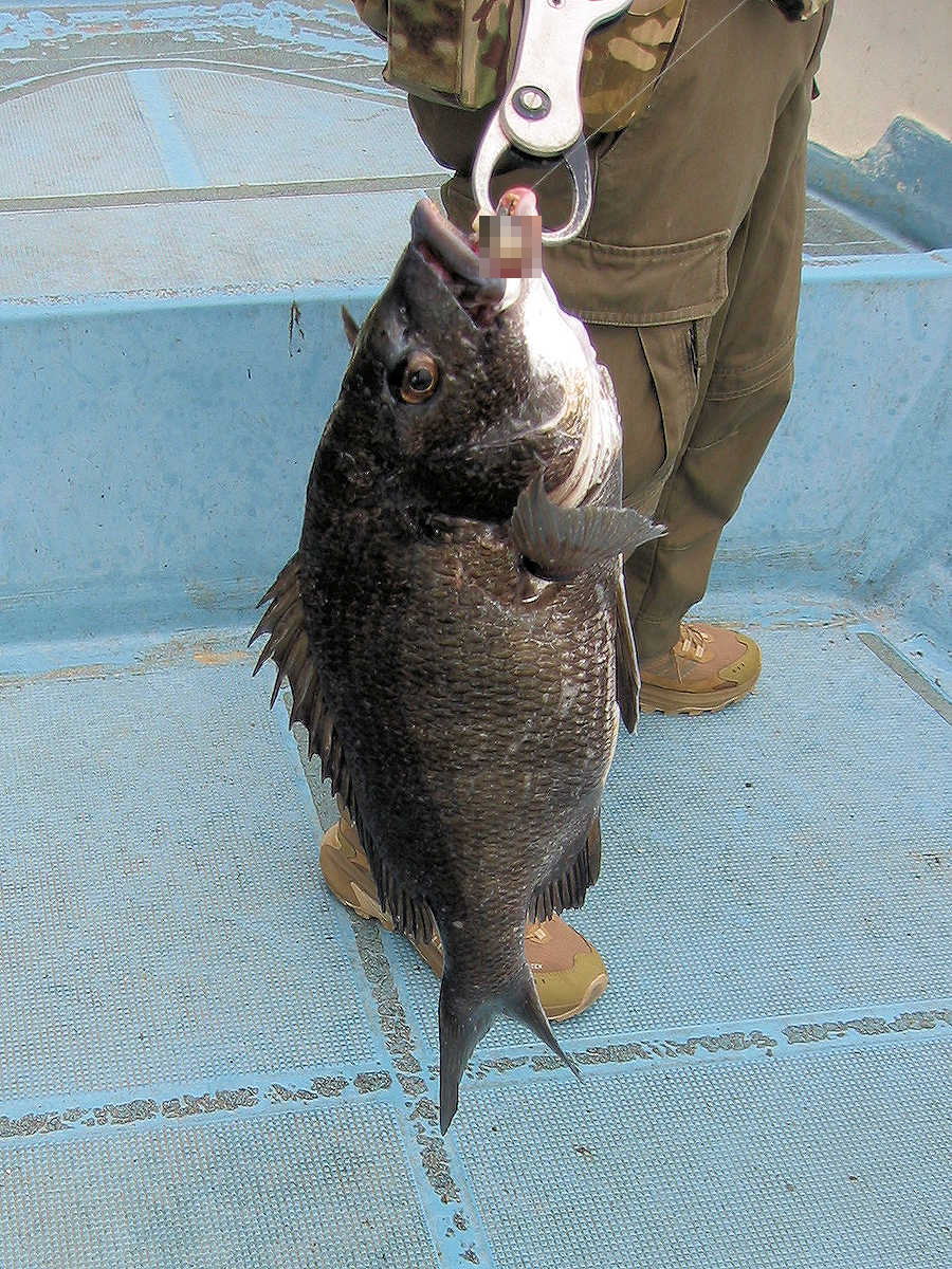 ■黒鯛× 34匹 (放流サイズ×8匹含む) ■コメント この日は二日連続で降り続いた雨が、予想していた以上の降水量でしたので、出船してみると海水のニゴリが消えてしまいがっかり。 ニゴリが消えてしまった関係から、魚の姿はチョロチョロと見えるのですが、人間の動きで魚が警戒するのでアタリの数は少なく苦戦しました。 お客さまは疑似エサによる黒鯛狙いがお好きな方でしたので、ニゴリがある条件であれば、どの位アタリがあるのか良くわからないまま、時間となり釣り終了となりました。 ちなみに、疑似エサは秘密のエサなので、写真ではモザイクを入れています。 この秘密のエサ、ニゴリのある条件で効果を確かめたいですね! そうそう、アニメ化のイラスト、背景の要求が上手く行かず、なんだか良くわからない塔が表示されました。アハハ・・・ ■黒鯛× 34匹 (放流サイズ×8匹含む) □サイズ:25~28cm×8匹/30cm前後×10匹ぐらい/35cm前後×8匹ぐらい/41cm前後×7匹ぐらい/44cm前後×1匹 □TMさん× 23匹 □恵比須さん× 11匹 |
