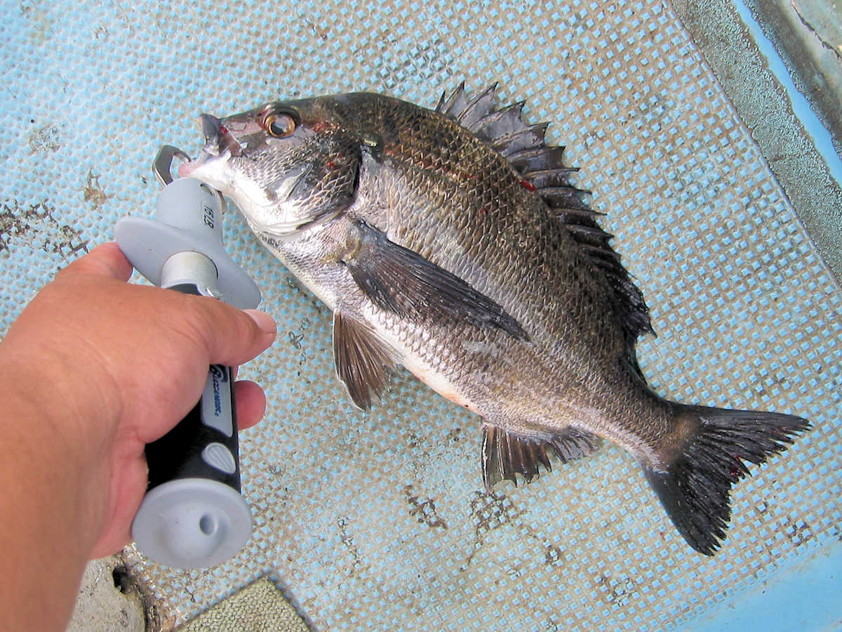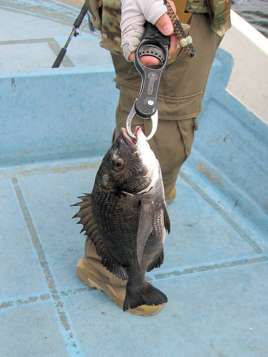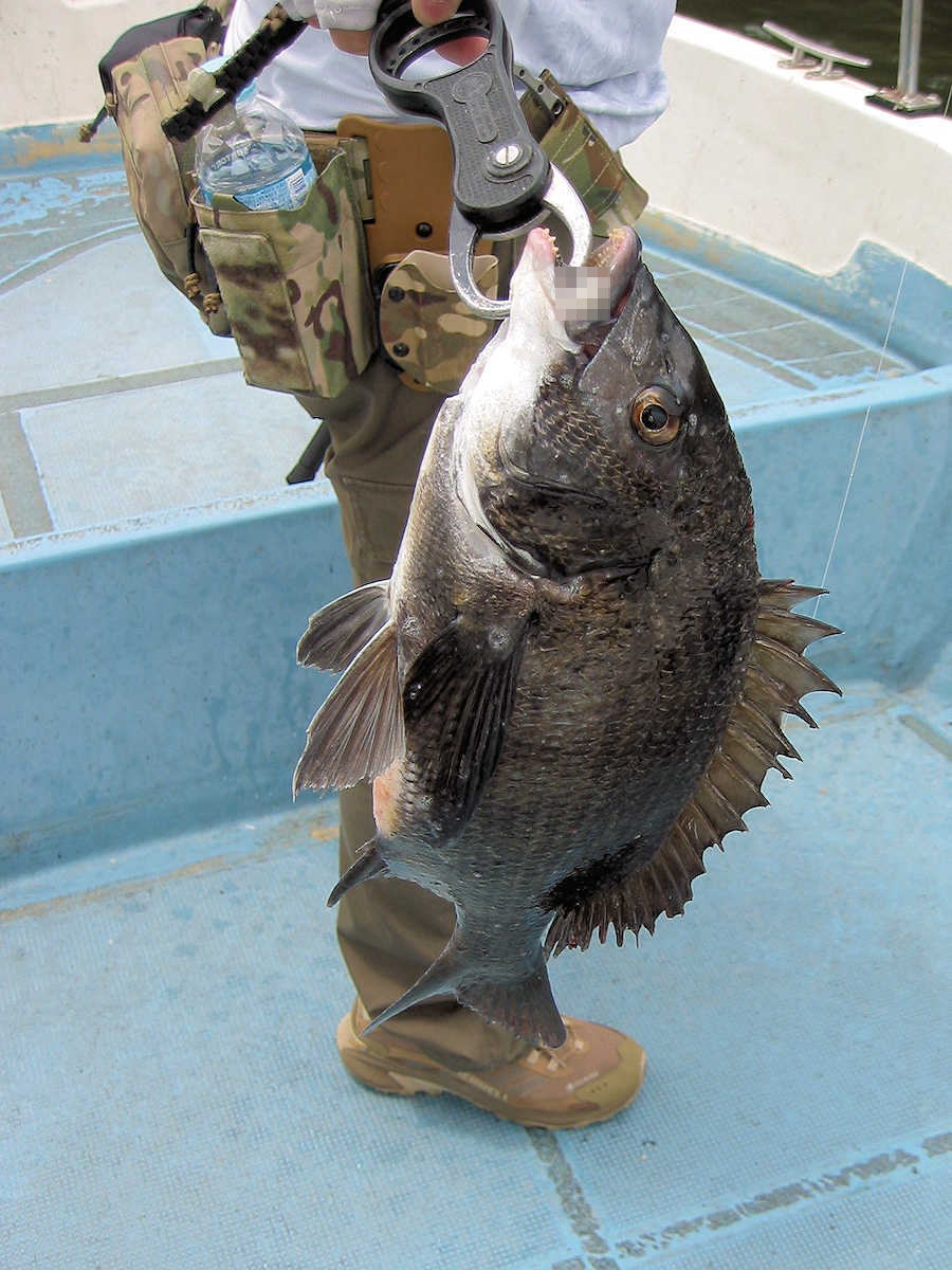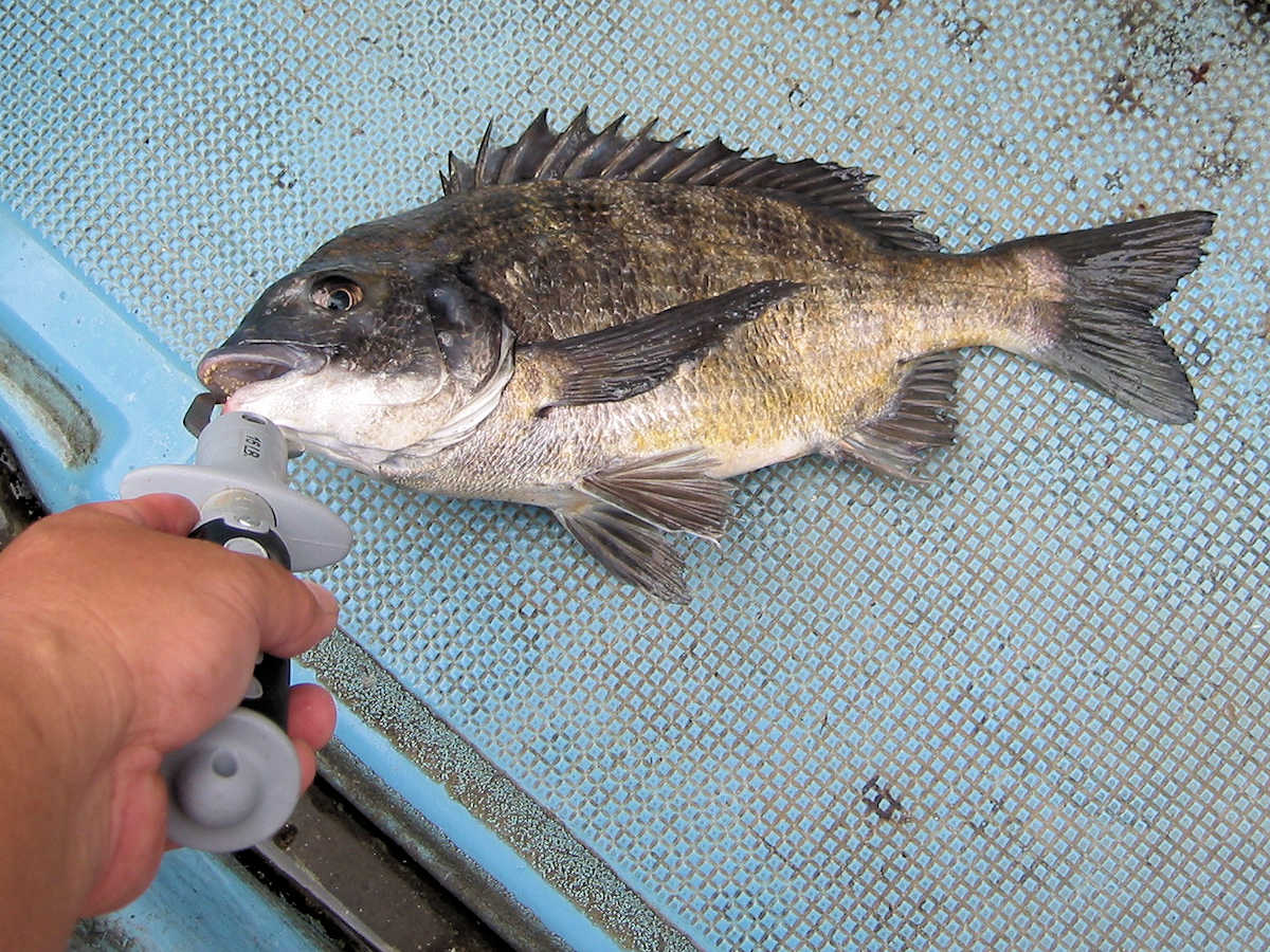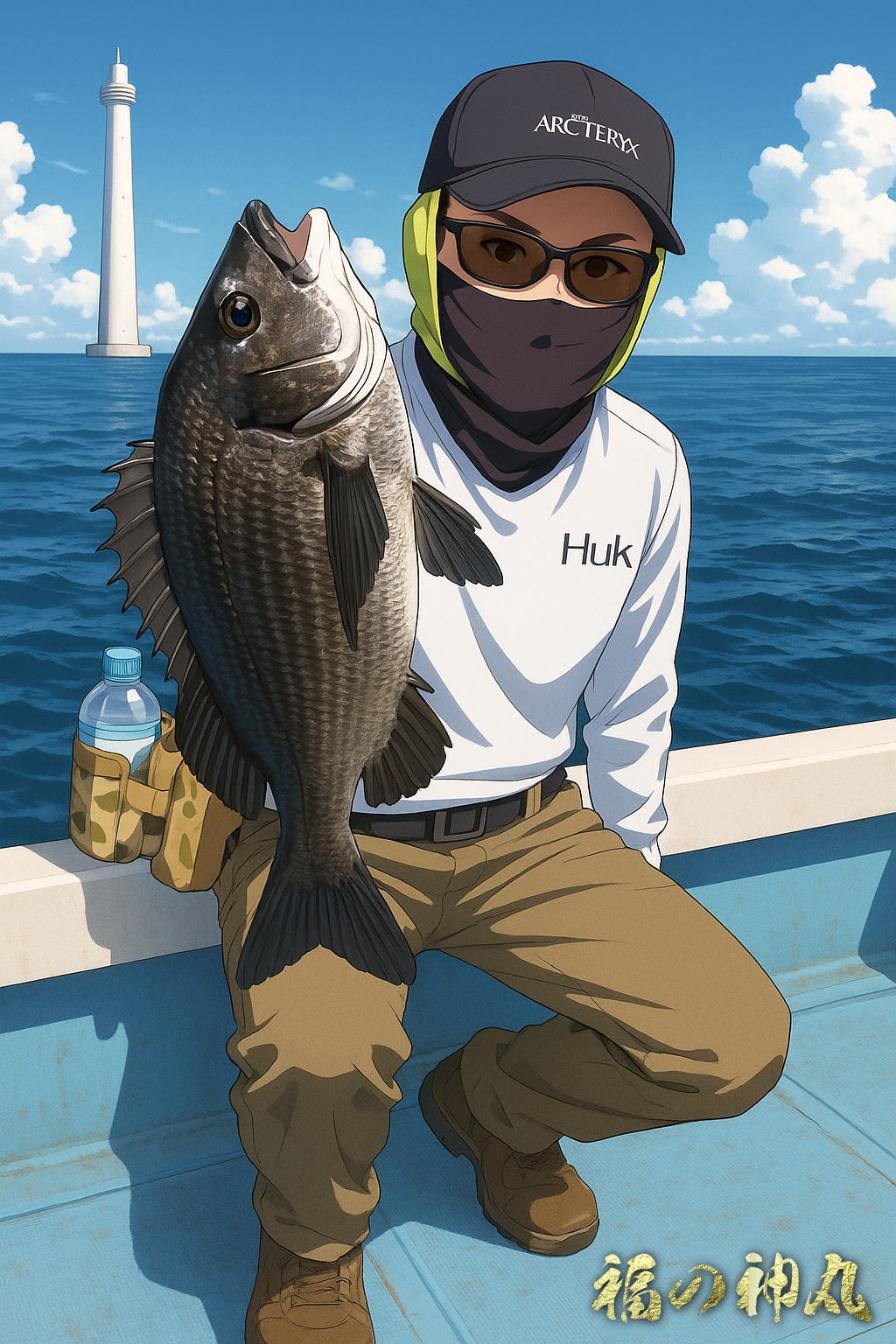 ■黒鯛× 34匹 (放流サイズ×8匹含む) ■コメント この日は二日連続で降り続いた雨が、予想していた以上の降水量でしたので、出船してみると海水のニゴリが消えてしまいがっかり。 ニゴリが消えてしまった関係から、魚の姿はチョロチョロと見えるのですが、人間の動きで魚が警戒するのでアタリの数は少なく苦戦しました。 お客さまは疑似エサによる黒鯛狙いがお好きな方でしたので、ニゴリがある条件であれば、どの位アタリがあるのか良くわからないまま、時間となり釣り終了となりました。 ちなみに、疑似エサは秘密のエサなので、写真ではモザイクを入れています。 この秘密のエサ、ニゴリのある条件で効果を確かめたいですね! そうそう、アニメ化のイラスト、背景の要求が上手く行かず、なんだか良くわからない塔が表示されました。アハハ・・・ ■黒鯛× 34匹 (放流サイズ×8匹含む) □サイズ:25~28cm×8匹/30cm前後×10匹ぐらい/35cm前後×8匹ぐらい/41cm前後×7匹ぐらい/44cm前後×1匹 □TMさん× 23匹 □恵比須さん× 11匹 |
