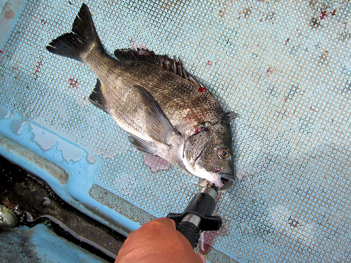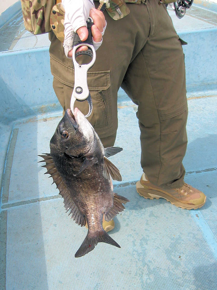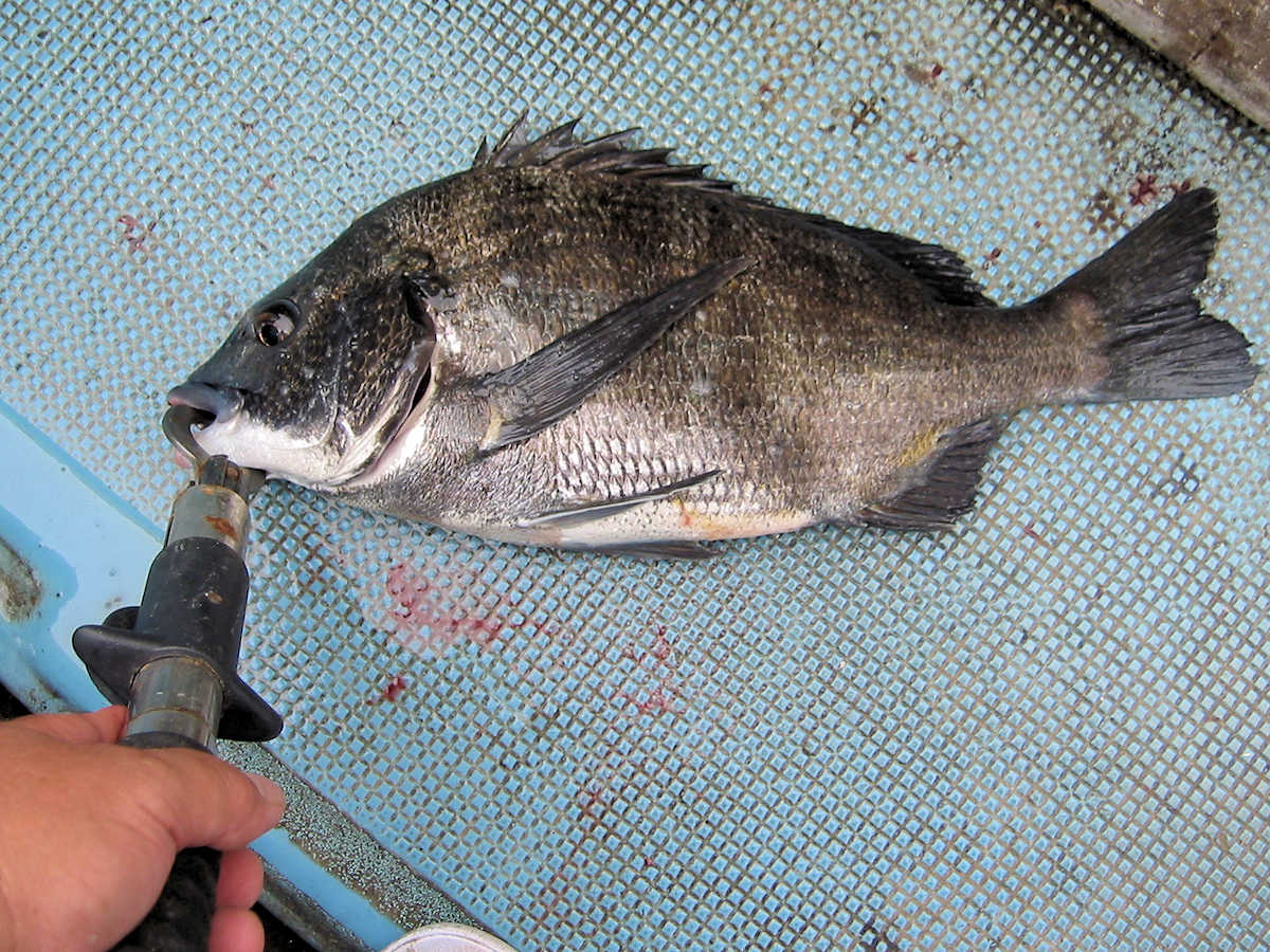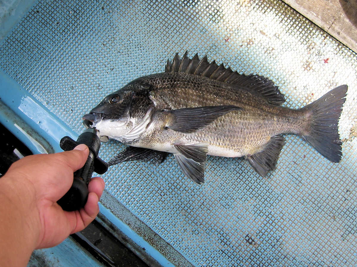■黒鯛× 34匹 (放流サイズ×8匹含む) ■コメント この日は二日連続で降り続いた雨が、予想していた以上の降水量でしたので、出船してみると海水のニゴリが消えてしまいがっかり。 ニゴリが消えてしまった関係から、魚の姿はチョロチョロと見えるのですが、人間の動きで魚が警戒するのでアタリの数は少なく苦戦しました。 お客さまは疑似エサによる黒鯛狙いがお好きな方でしたので、ニゴリがある条件であれば、どの位アタリがあるのか良くわからないまま、時間となり釣り終了となりました。 ちなみに、疑似エサは秘密のエサなので、写真ではモザイクを入れています。 この秘密のエサ、ニゴリのある条件で効果を確かめたいですね! そうそう、アニメ化のイラスト、背景の要求が上手く行かず、なんだか良くわからない塔が表示されました。アハハ・・・ ■黒鯛× 34匹 (放流サイズ×8匹含む) □サイズ:25~28cm×8匹/30cm前後×10匹ぐらい/35cm前後×8匹ぐらい/41cm前後×7匹ぐらい/44cm前後×1匹 □TMさん× 23匹 □恵比須さん× 11匹 |
