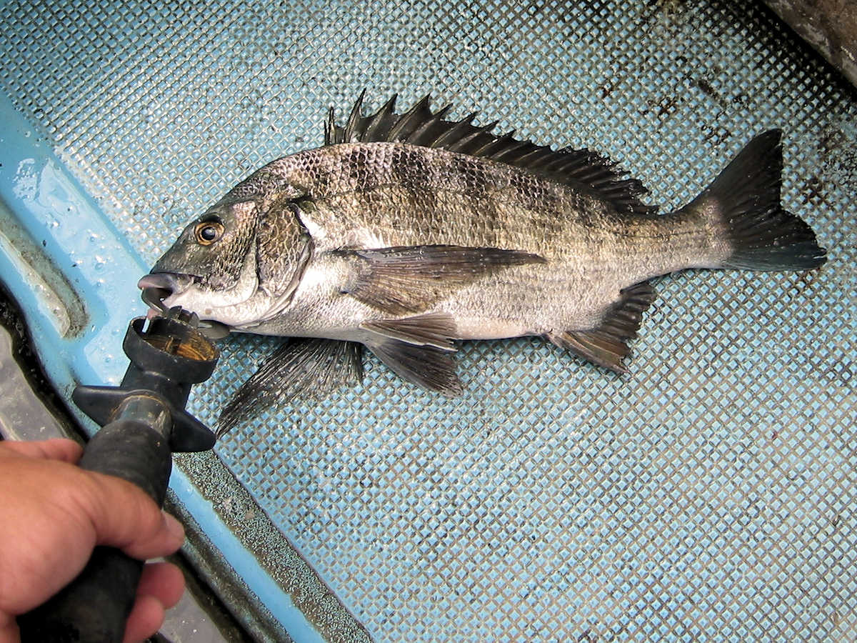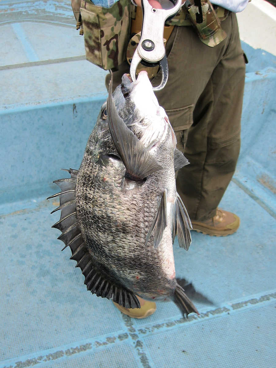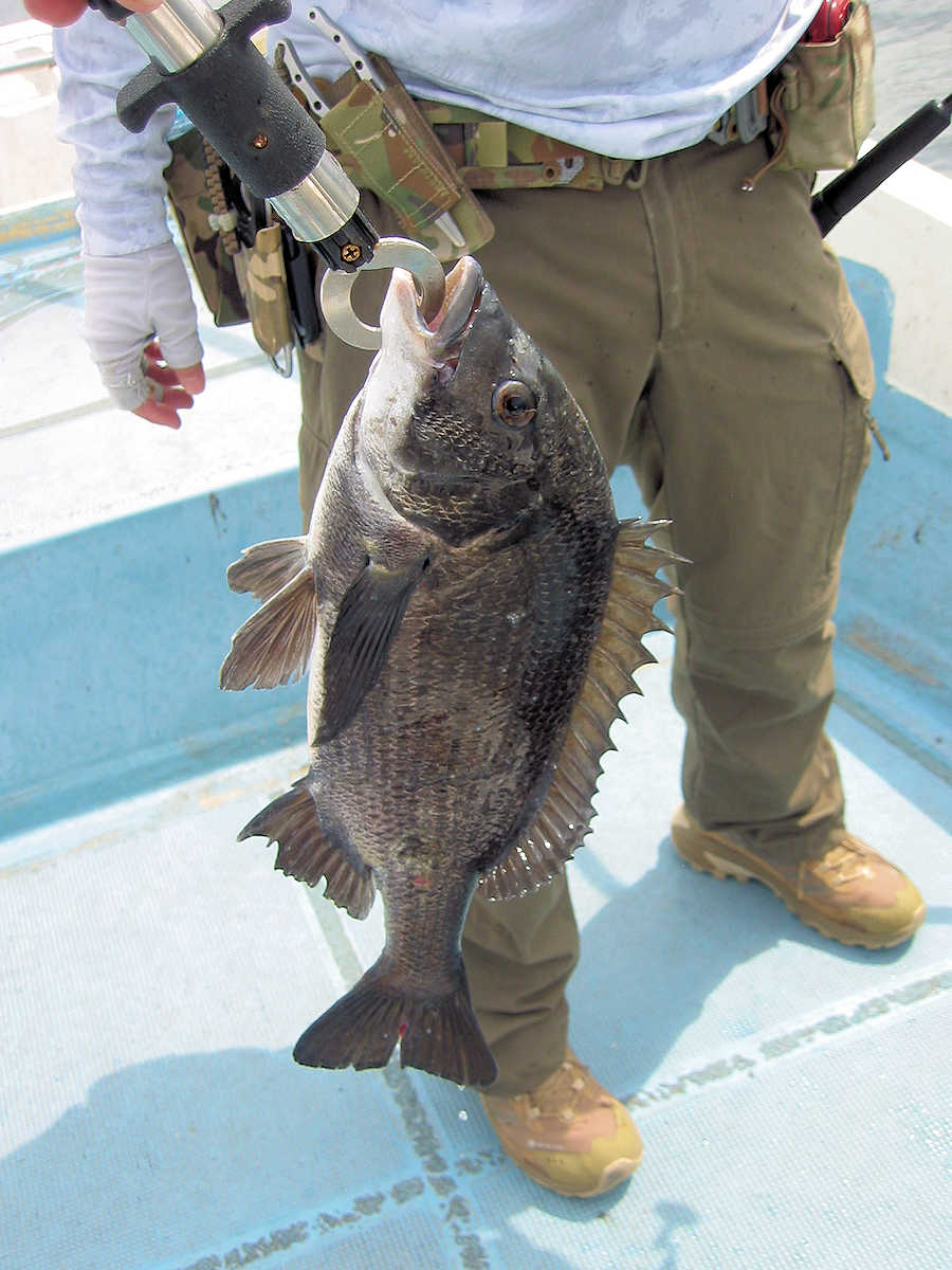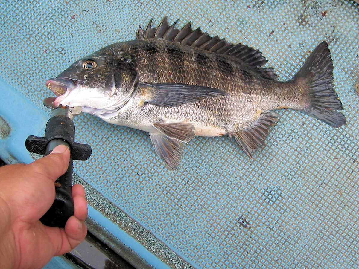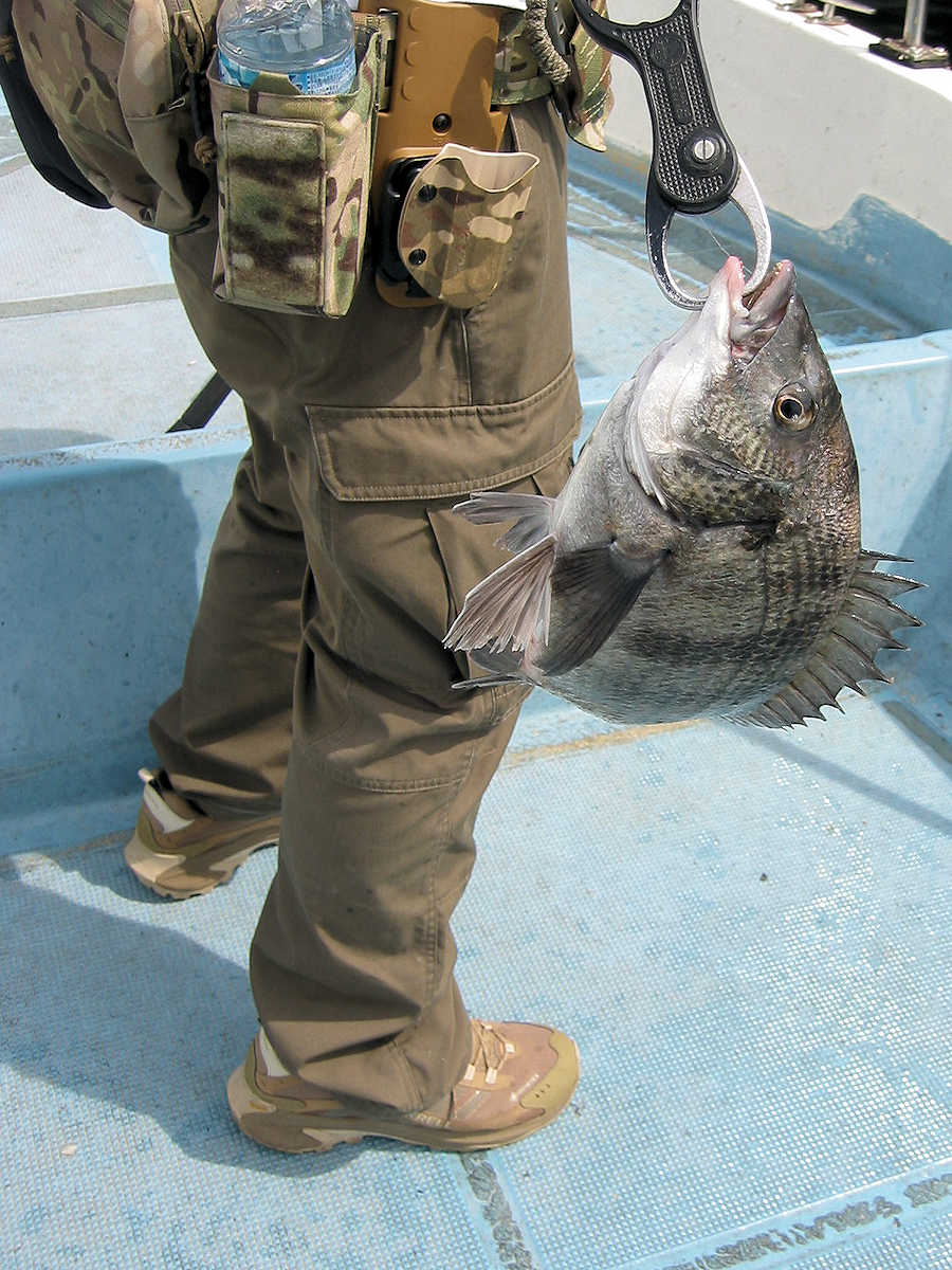 ■黒鯛× 34匹 (放流サイズ×8匹含む) ■コメント この日は二日連続で降り続いた雨が、予想していた以上の降水量でしたので、出船してみると海水のニゴリが消えてしまいがっかり。 ニゴリが消えてしまった関係から、魚の姿はチョロチョロと見えるのですが、人間の動きで魚が警戒するのでアタリの数は少なく苦戦しました。 お客さまは疑似エサによる黒鯛狙いがお好きな方でしたので、ニゴリがある条件であれば、どの位アタリがあるのか良くわからないまま、時間となり釣り終了となりました。 ちなみに、疑似エサは秘密のエサなので、写真ではモザイクを入れています。 この秘密のエサ、ニゴリのある条件で効果を確かめたいですね! そうそう、アニメ化のイラスト、背景の要求が上手く行かず、なんだか良くわからない塔が表示されました。アハハ・・・ ■黒鯛× 34匹 (放流サイズ×8匹含む) □サイズ:25~28cm×8匹/30cm前後×10匹ぐらい/35cm前後×8匹ぐらい/41cm前後×7匹ぐらい/44cm前後×1匹 □TMさん× 23匹 □恵比須さん× 11匹 |