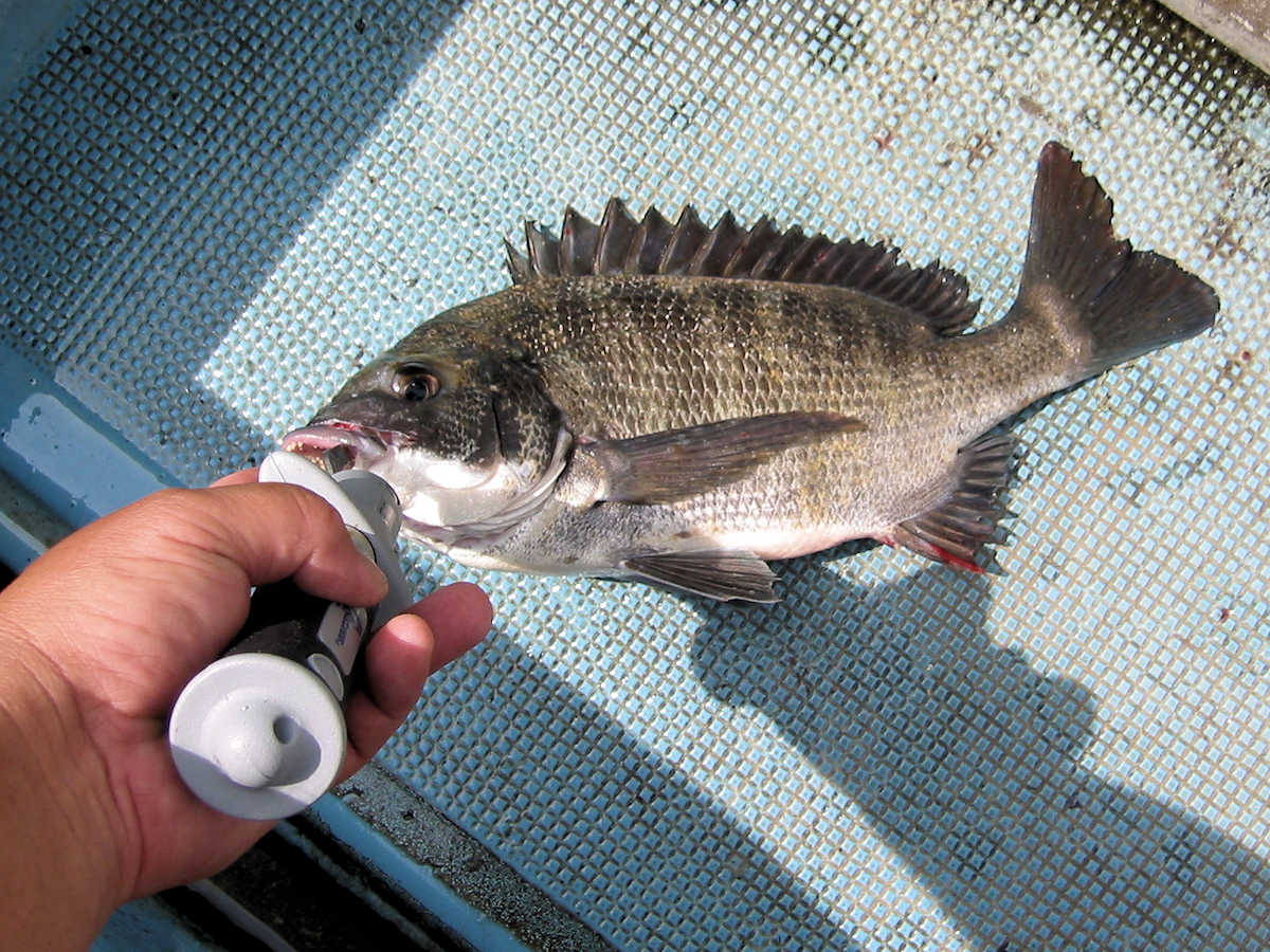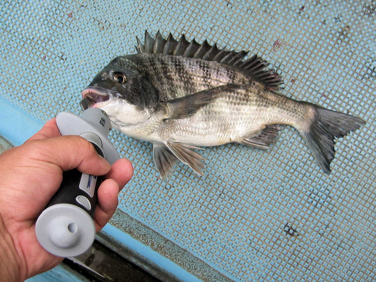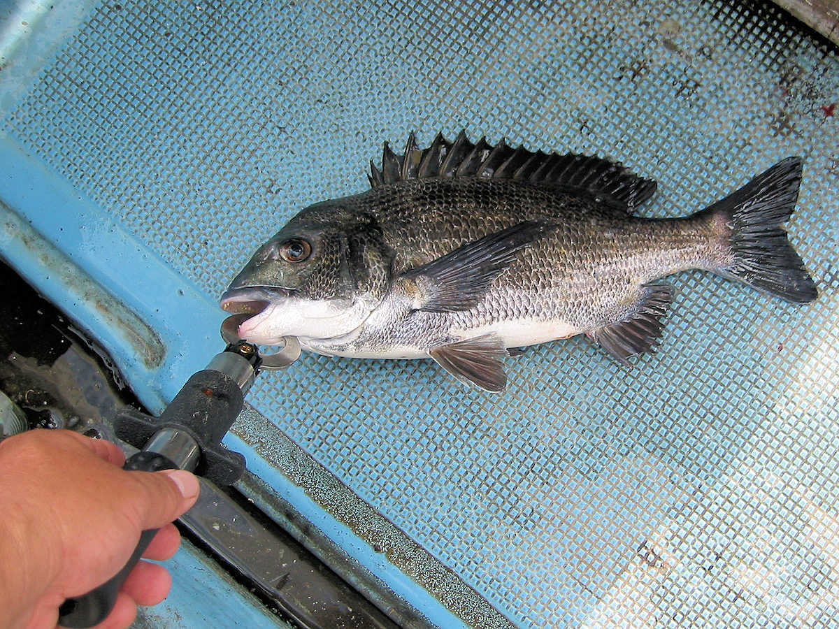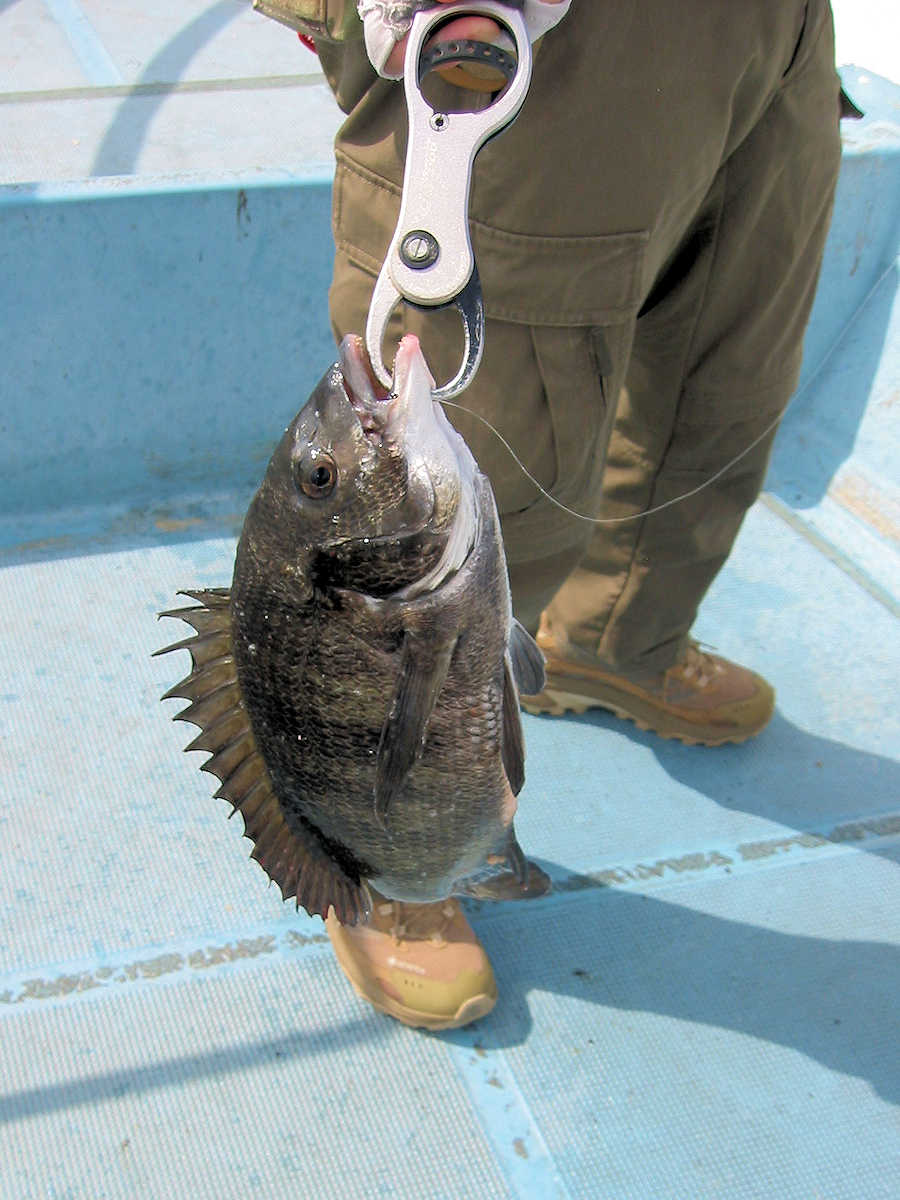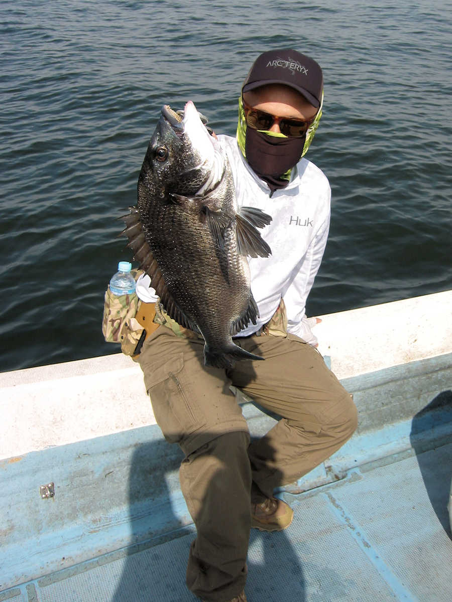 ■黒鯛× 34匹 (放流サイズ×8匹含む) ■コメント この日は二日連続で降り続いた雨が、予想していた以上の降水量でしたので、出船してみると海水のニゴリが消えてしまいがっかり。 ニゴリが消えてしまった関係から、魚の姿はチョロチョロと見えるのですが、人間の動きで魚が警戒するのでアタリの数は少なく苦戦しました。 お客さまは疑似エサによる黒鯛狙いがお好きな方でしたので、ニゴリがある条件であれば、どの位アタリがあるのか良くわからないまま、時間となり釣り終了となりました。 ちなみに、疑似エサは秘密のエサなので、写真ではモザイクを入れています。 この秘密のエサ、ニゴリのある条件で効果を確かめたいですね! そうそう、アニメ化のイラスト、背景の要求が上手く行かず、なんだか良くわからない塔が表示されました。アハハ・・・ ■黒鯛× 34匹 (放流サイズ×8匹含む) □サイズ:25~28cm×8匹/30cm前後×10匹ぐらい/35cm前後×8匹ぐらい/41cm前後×7匹ぐらい/44cm前後×1匹 □TMさん× 23匹 □恵比須さん× 11匹 |