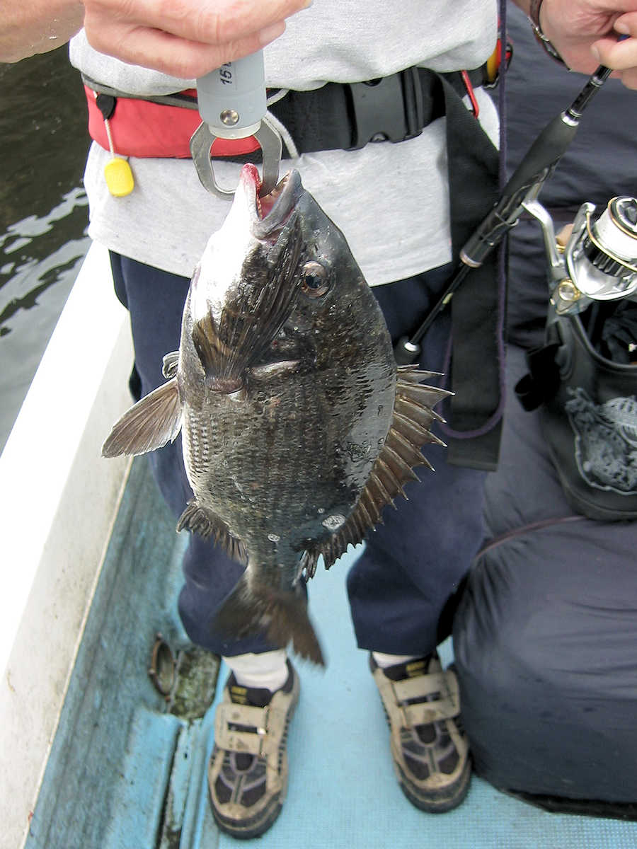 ■黒鯛× 32匹 ■コメント この日、がりがり爺さんは自己記録である、黒鯛29匹キャッチを超え、31匹キャッチに成功! おめでとうございます! バラシ&スッポヌケの回数は合わせて20発、ヤラレの数が少なく、お見事でした! 前日まで南風ビュンビュンだった関係で海水にニゴリが発生。 狙うポイントによって、雨ニゴリの白色と茶色とがあり、雨ニゴリのポイントはパッとしませんでした。 今週は良い天候が続きそうなので、更に条件が良くなりそうです。 ■黒鯛× 32匹 □サイズ:30cm前後×6匹ぐらい/35cm前後×11匹ぐらい/40cm前後×10匹ぐらい/43cm前後×2匹/45cm前後×2匹/48cm前後×1匹 □がりがり爺さん× 31匹(バラシ×7匹 スッポヌケ×13匹) □恵比須さん× 1匹(スッポヌケ×1匹) |