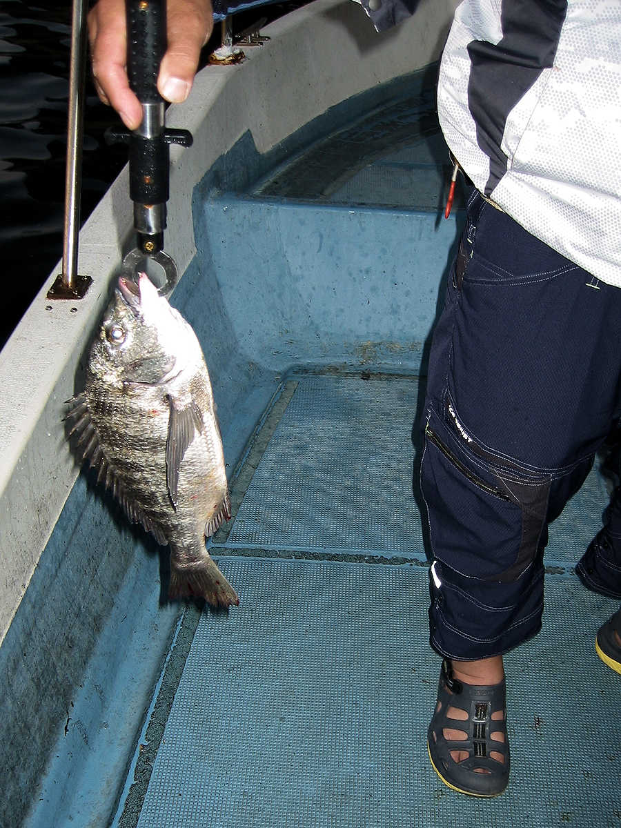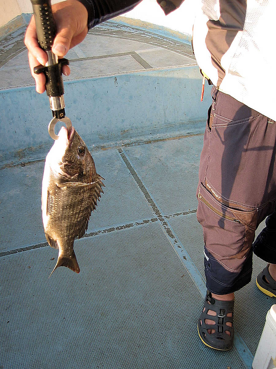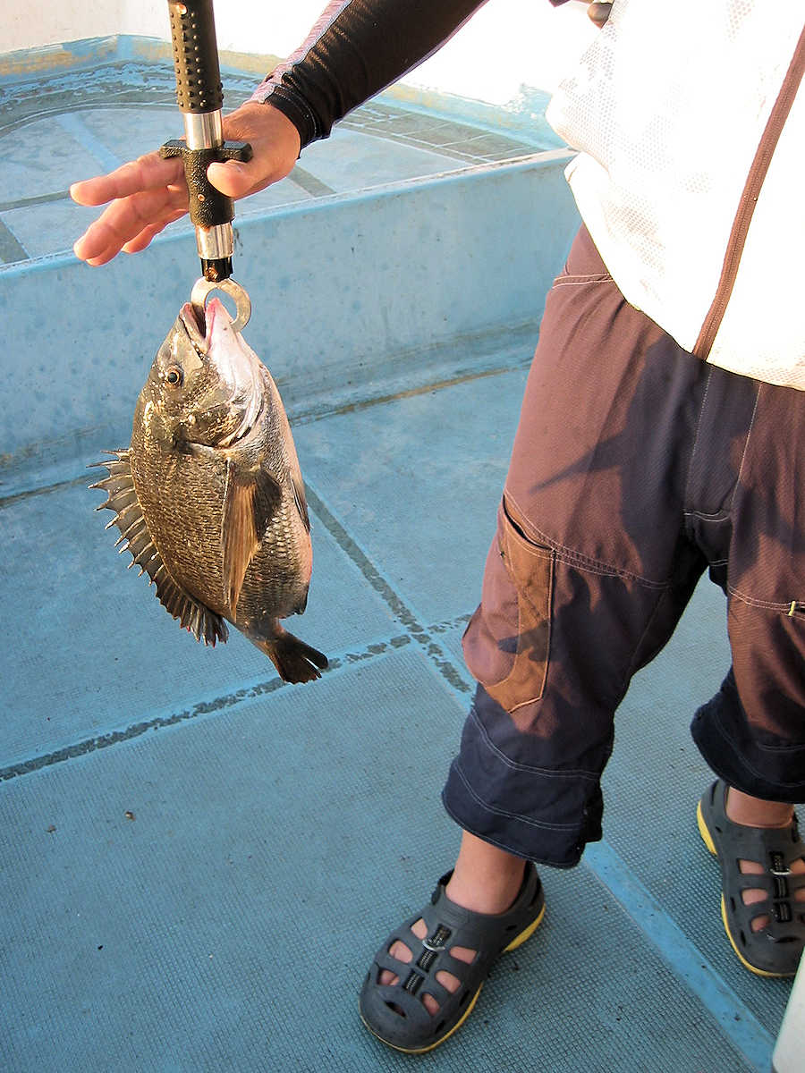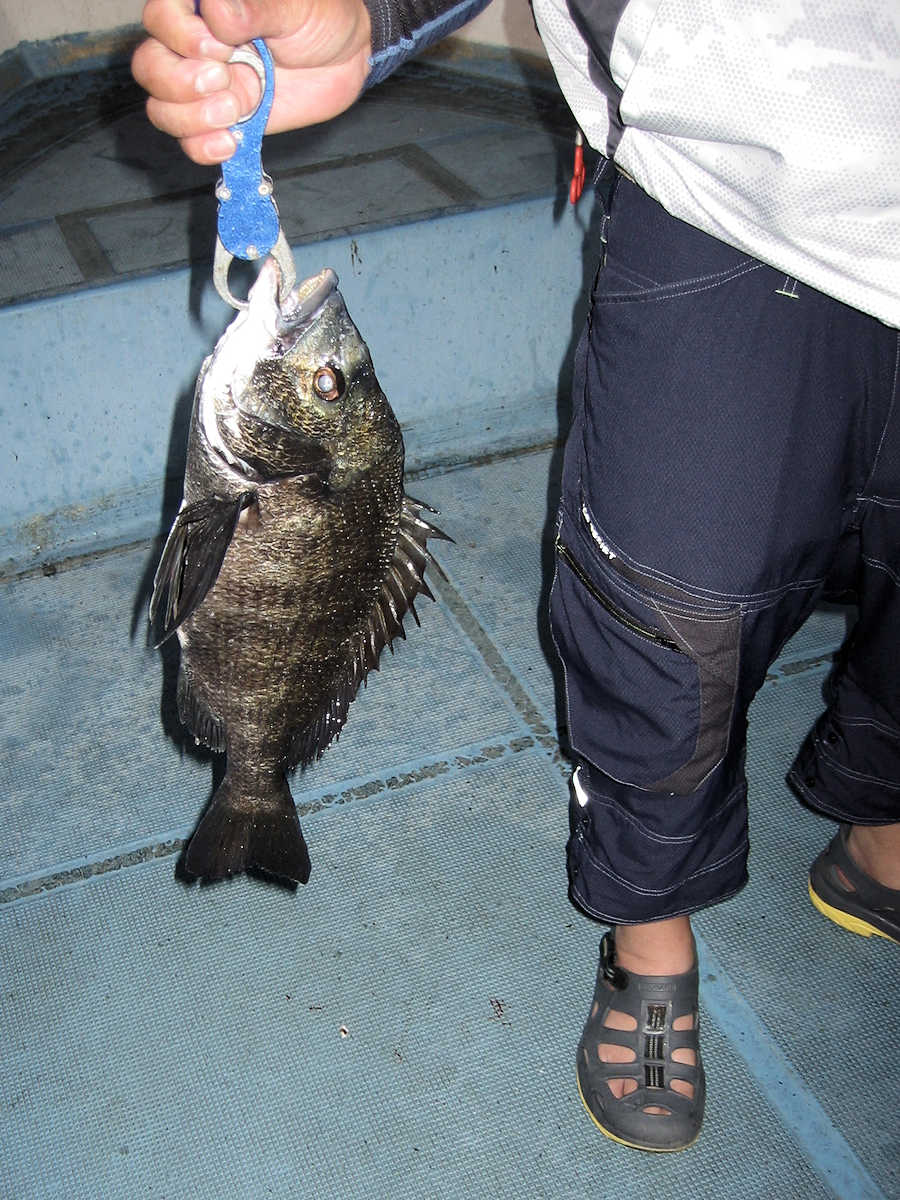■黒鯛× 36匹 (放流サイズ×4匹含む) ■コメント この日はバラシとスッポヌケに泣きましたが、36匹キャッチでき、悔しくも楽しい釣りとなりました。 なんと、キャッチ以外のバラシとスッポヌケの数は110発ぐらいありましたが、スッポヌケ防止対策が上手く行かず、最後までスッポヌケの嵐が続いてしまいました。 私もチョロリ竿を出せましたが、「スッポヌケ×3・バラシ×1」とノーキャッチで終わってしまいました! アハハ・・・ まあ、こんな日もあるから黒鯛釣りは楽しいですね! ■黒鯛× 36匹 (放流サイズ×4匹含む) □サイズ:28cm前後×4匹/30cm前後×7匹ぐらい/35cm前後×10匹ぐらい/40cm前後×10匹ぐらい/43cm前後×5匹 □マサさん× 36匹 □キャッチ以外のバラシとスッポヌケの数:110発ぐらい? □恵比須さん× ボーズ!(スッポヌケ×3・バラシ×1) |
