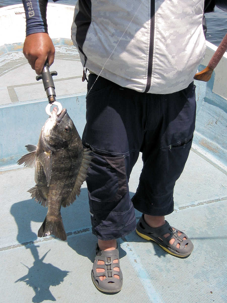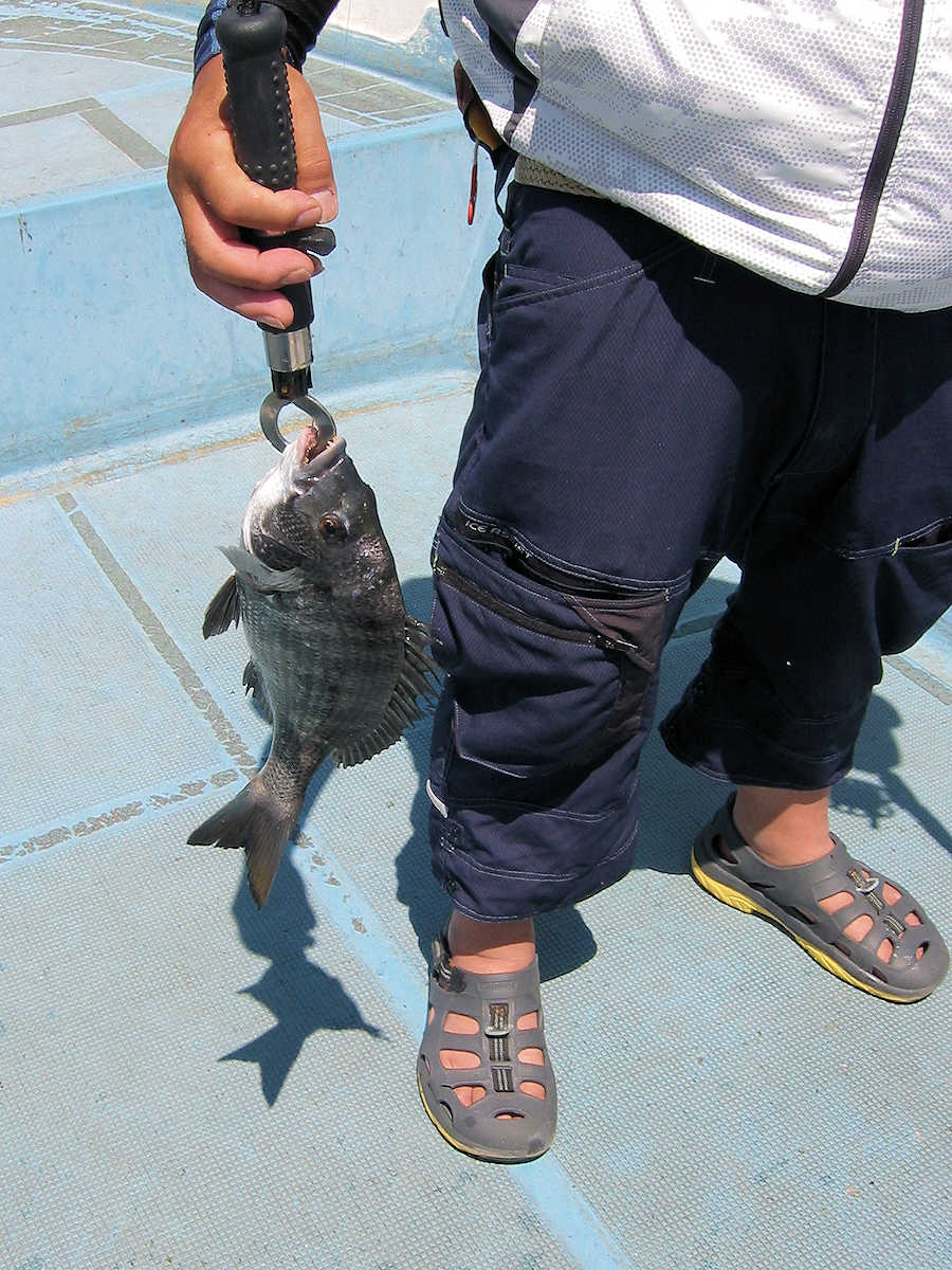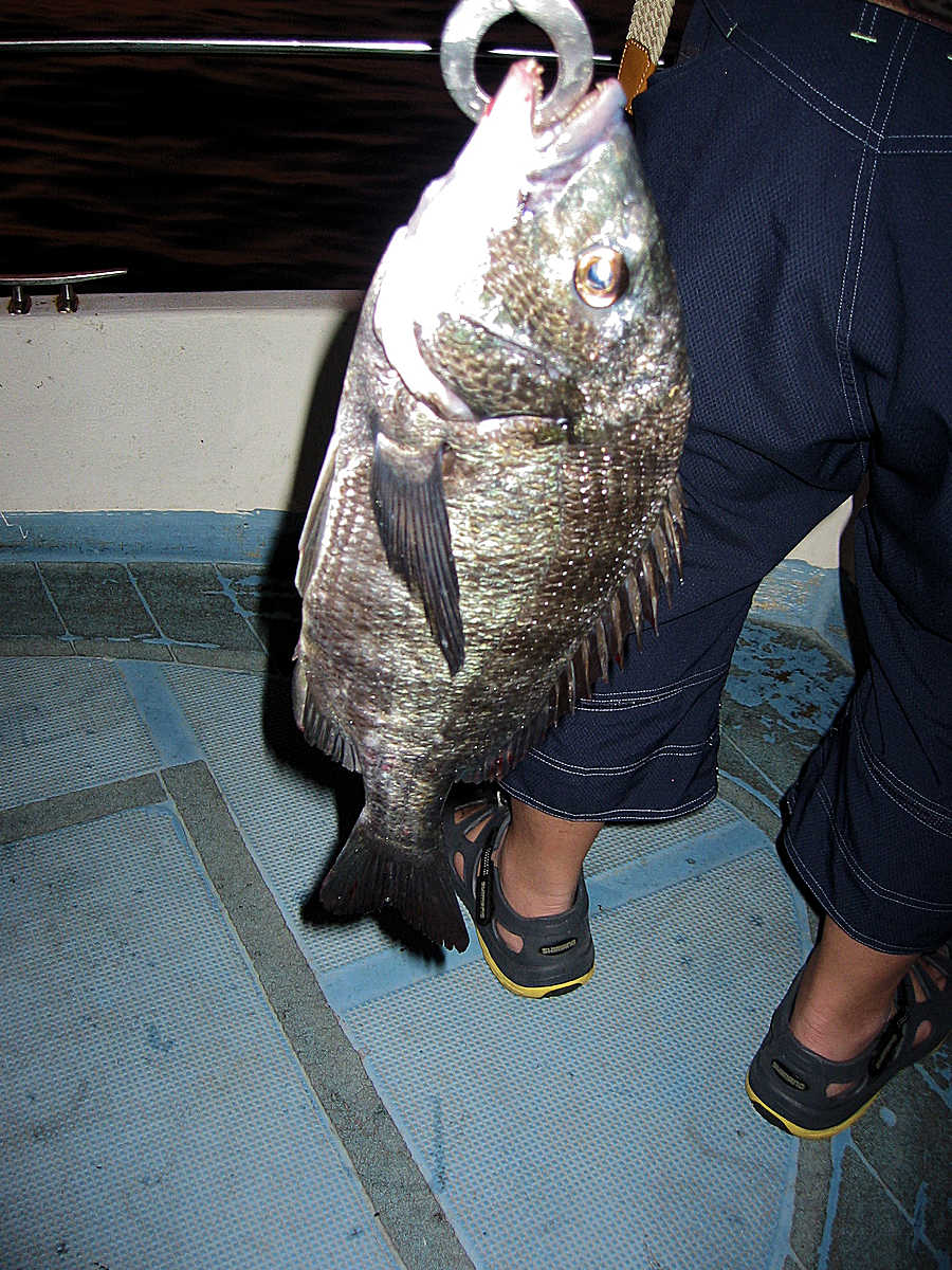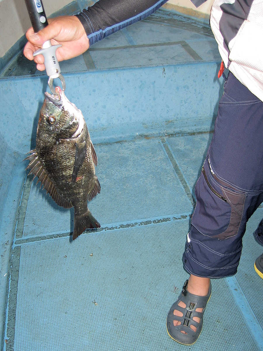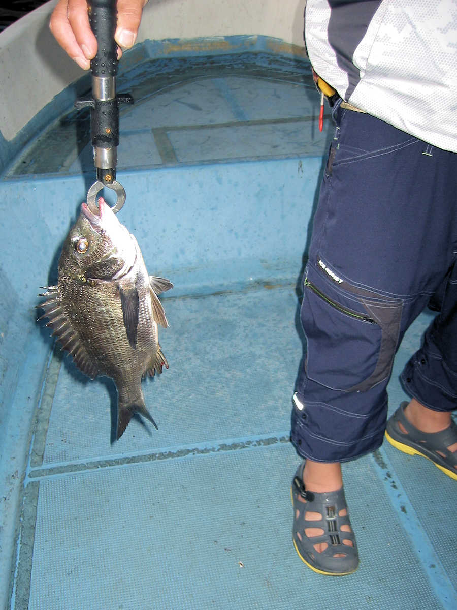 ■黒鯛× 36匹 (放流サイズ×4匹含む) ■コメント この日はバラシとスッポヌケに泣きましたが、36匹キャッチでき、悔しくも楽しい釣りとなりました。 なんと、キャッチ以外のバラシとスッポヌケの数は110発ぐらいありましたが、スッポヌケ防止対策が上手く行かず、最後までスッポヌケの嵐が続いてしまいました。 私もチョロリ竿を出せましたが、「スッポヌケ×3・バラシ×1」とノーキャッチで終わってしまいました! アハハ・・・ まあ、こんな日もあるから黒鯛釣りは楽しいですね! ■黒鯛× 36匹 (放流サイズ×4匹含む) □サイズ:28cm前後×4匹/30cm前後×7匹ぐらい/35cm前後×10匹ぐらい/40cm前後×10匹ぐらい/43cm前後×5匹 □マサさん× 36匹 □キャッチ以外のバラシとスッポヌケの数:110発ぐらい? □恵比須さん× ボーズ!(スッポヌケ×3・バラシ×1) |