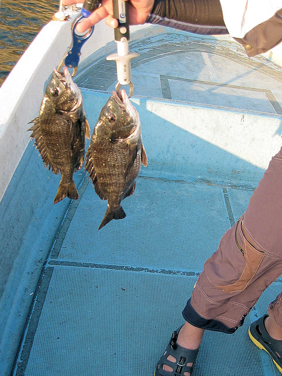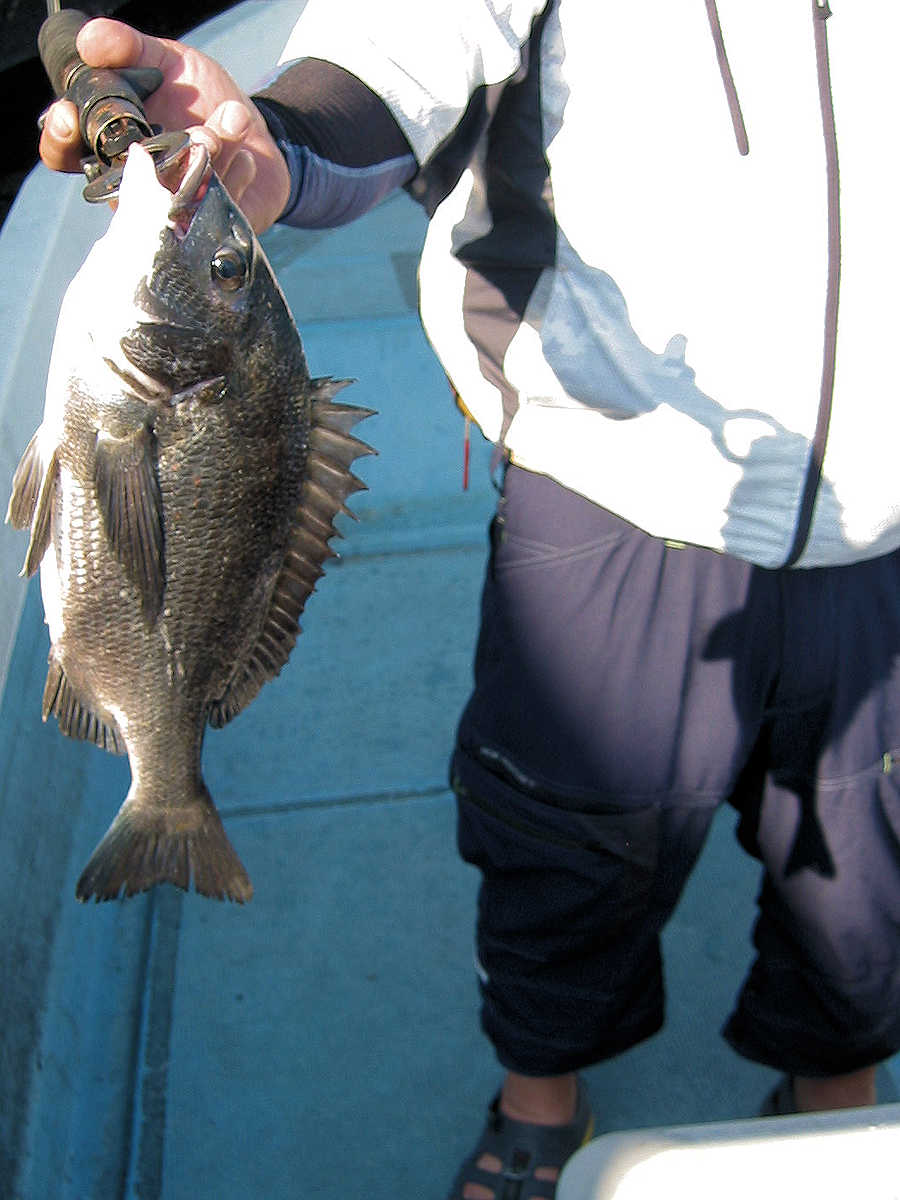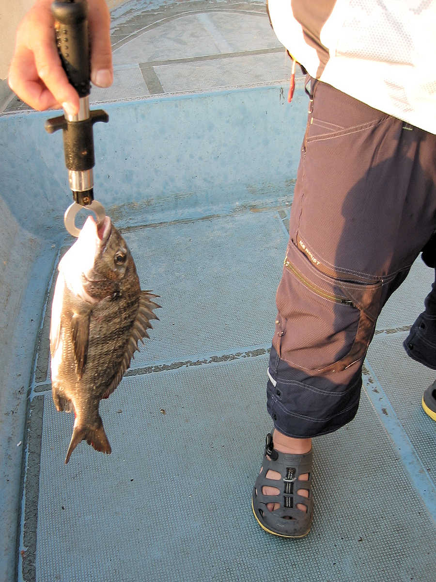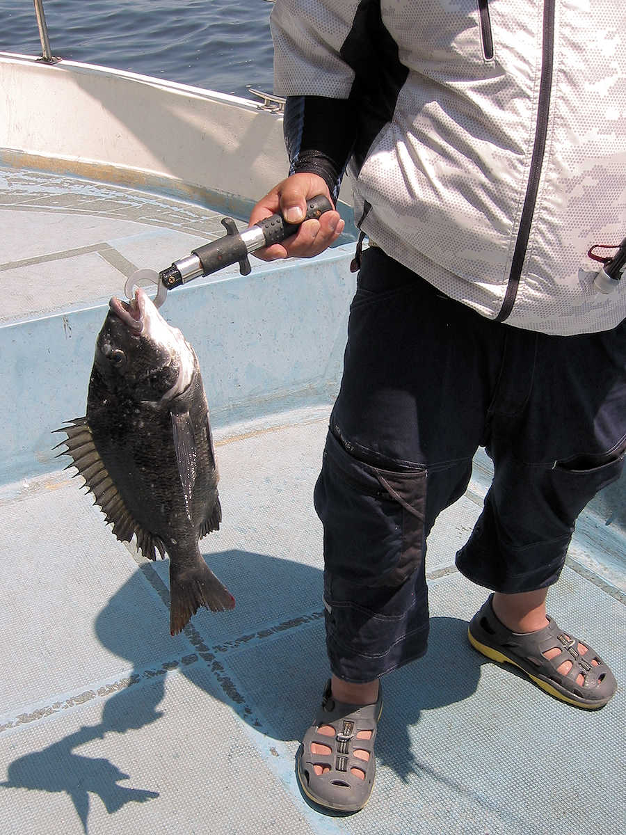 ■黒鯛× 36匹 (放流サイズ×4匹含む) ■コメント この日はバラシとスッポヌケに泣きましたが、36匹キャッチでき、悔しくも楽しい釣りとなりました。 なんと、キャッチ以外のバラシとスッポヌケの数は110発ぐらいありましたが、スッポヌケ防止対策が上手く行かず、最後までスッポヌケの嵐が続いてしまいました。 私もチョロリ竿を出せましたが、「スッポヌケ×3・バラシ×1」とノーキャッチで終わってしまいました! アハハ・・・ まあ、こんな日もあるから黒鯛釣りは楽しいですね! ■黒鯛× 36匹 (放流サイズ×4匹含む) □サイズ:28cm前後×4匹/30cm前後×7匹ぐらい/35cm前後×10匹ぐらい/40cm前後×10匹ぐらい/43cm前後×5匹 □マサさん× 36匹 □キャッチ以外のバラシとスッポヌケの数:110発ぐらい? □恵比須さん× ボーズ!(スッポヌケ×3・バラシ×1) |