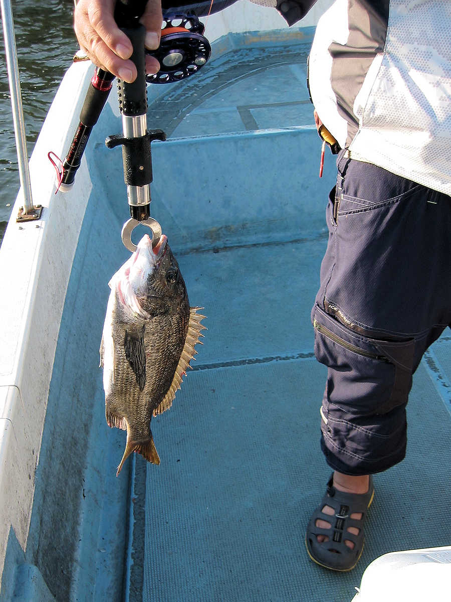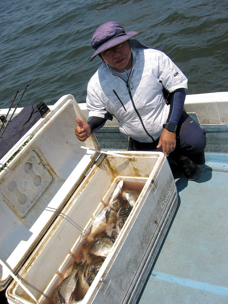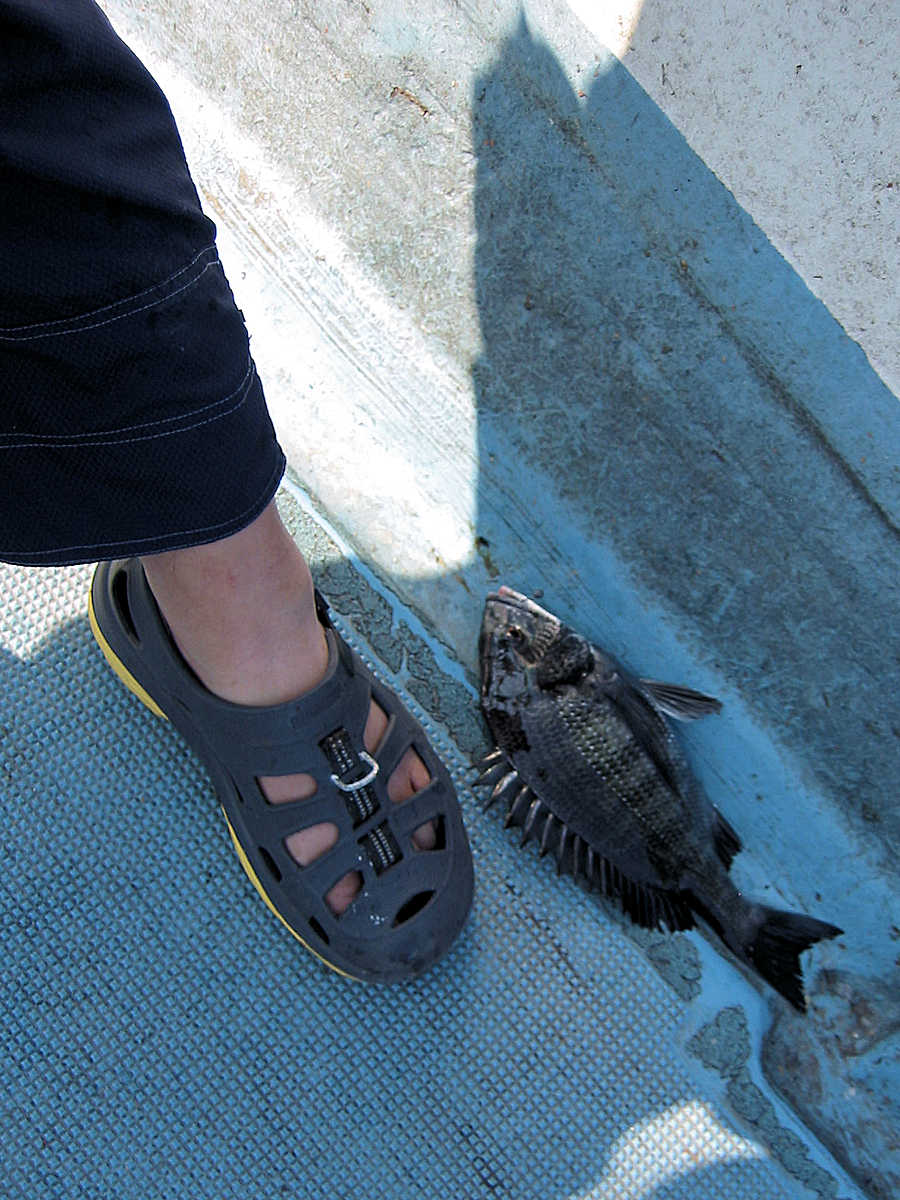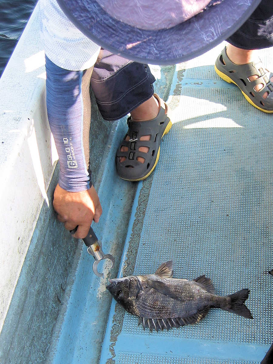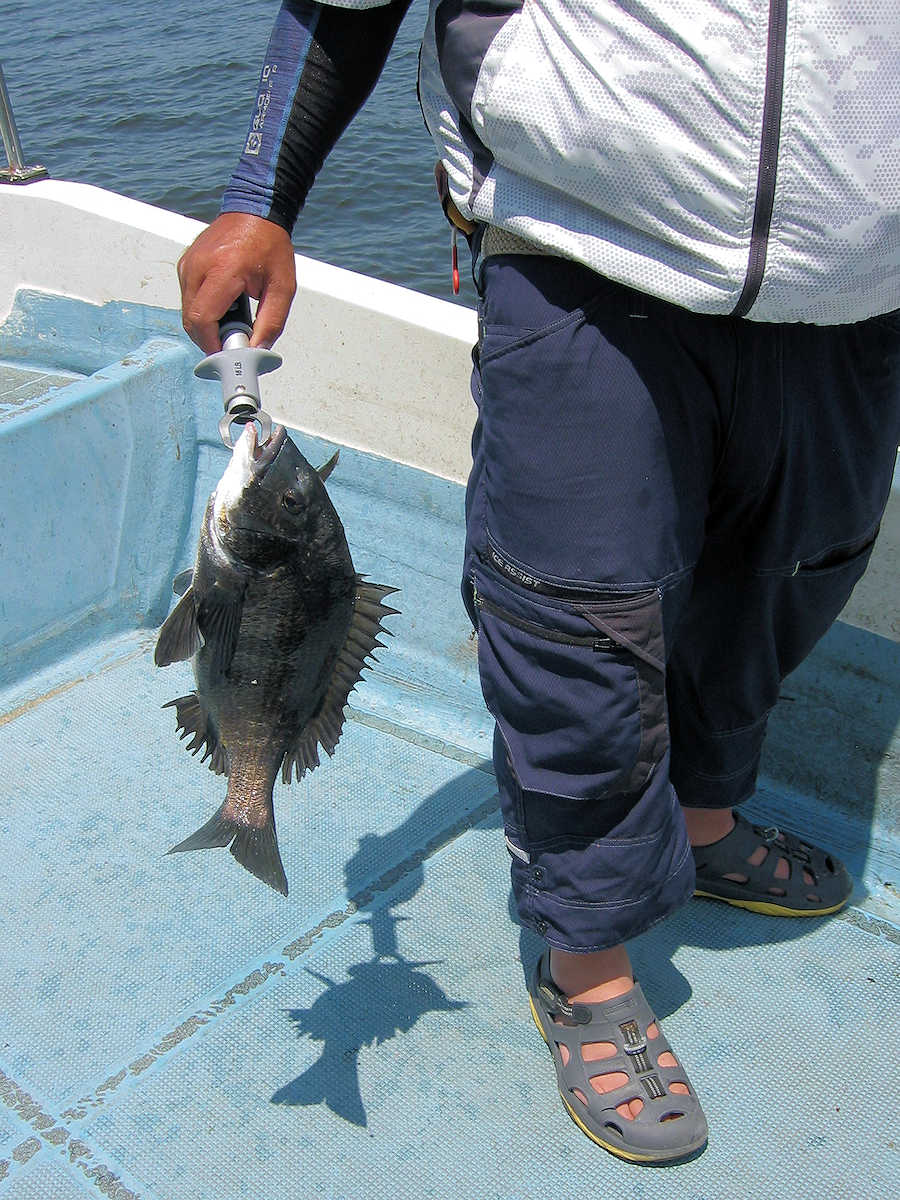 ■黒鯛× 36匹 (放流サイズ×4匹含む) ■コメント この日はバラシとスッポヌケに泣きましたが、36匹キャッチでき、悔しくも楽しい釣りとなりました。 なんと、キャッチ以外のバラシとスッポヌケの数は110発ぐらいありましたが、スッポヌケ防止対策が上手く行かず、最後までスッポヌケの嵐が続いてしまいました。 私もチョロリ竿を出せましたが、「スッポヌケ×3・バラシ×1」とノーキャッチで終わってしまいました! アハハ・・・ まあ、こんな日もあるから黒鯛釣りは楽しいですね! ■黒鯛× 36匹 (放流サイズ×4匹含む) □サイズ:28cm前後×4匹/30cm前後×7匹ぐらい/35cm前後×10匹ぐらい/40cm前後×10匹ぐらい/43cm前後×5匹 □マサさん× 36匹 □キャッチ以外のバラシとスッポヌケの数:110発ぐらい? □恵比須さん× ボーズ!(スッポヌケ×3・バラシ×1) |