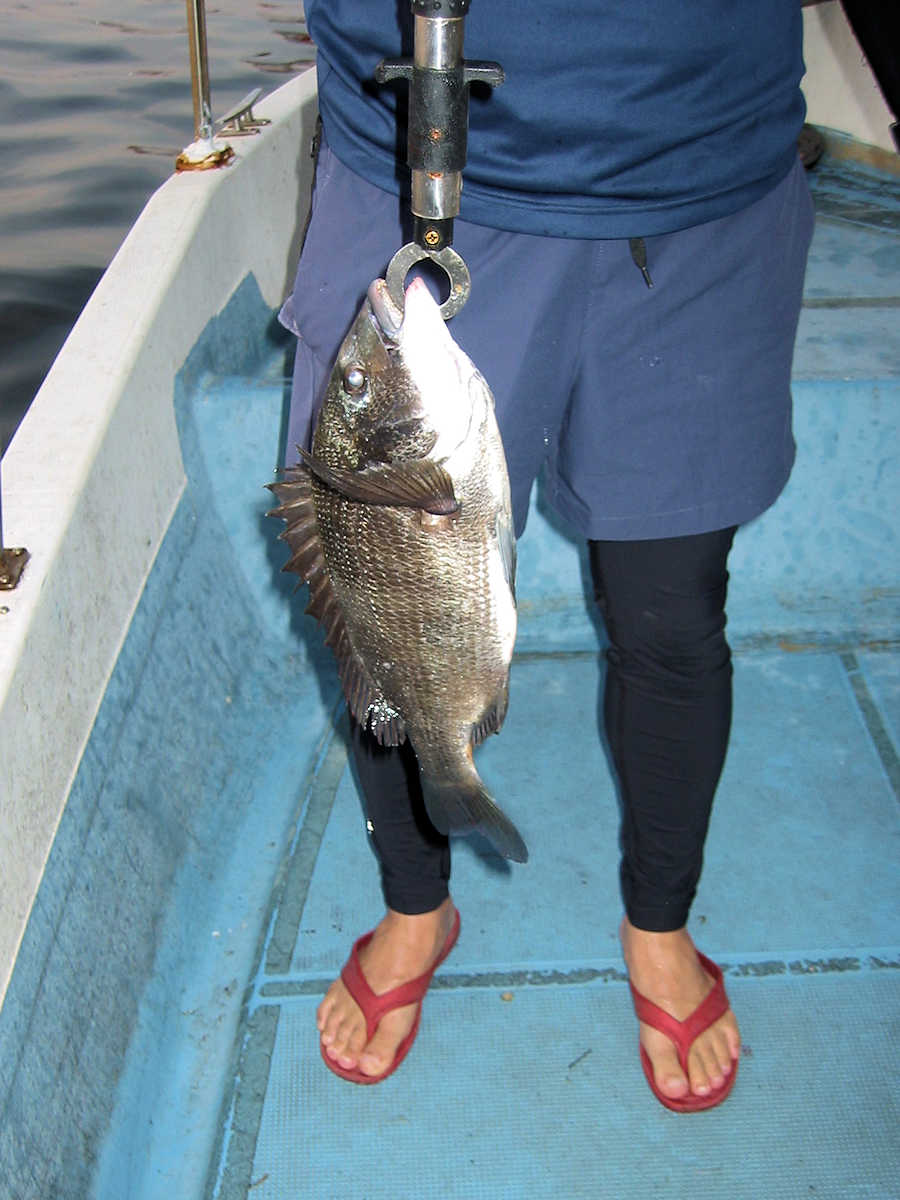 ■黒鯛×95匹(37㎝以下は放流×42匹) ■コメント 悪天候続きで出船できず、8日ぶりの黒鯛狙いとなりました。 前半は魚の反応が悪くポツリポツリと拾い釣りでしたが、その後はヤル気のある魚と出会い、良い感じでアタリが続きました。 終わってみると95匹キャッチ! アタリの数に対し半分キャッチでき、バラシとスッポヌケ少なくお見事でした! ■黒鯛×95匹(37㎝以下は放流×42匹) □アタリの数×190発ぐらい □きんちゃん×50匹 こめちゃん×45匹 |
