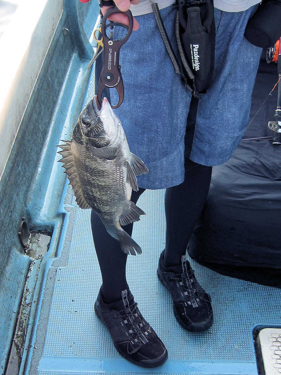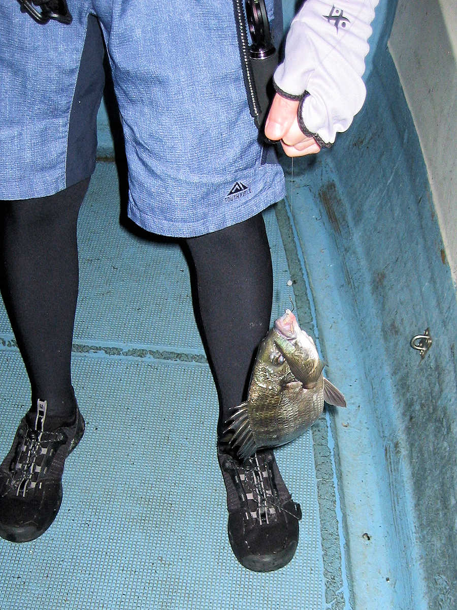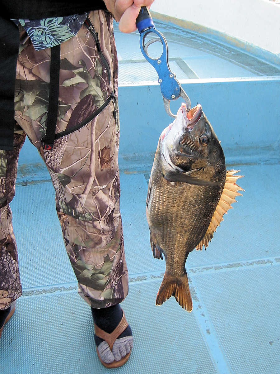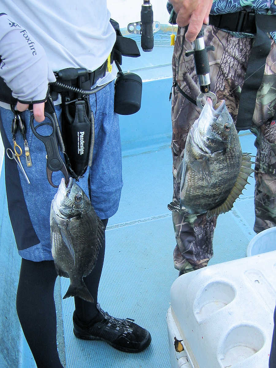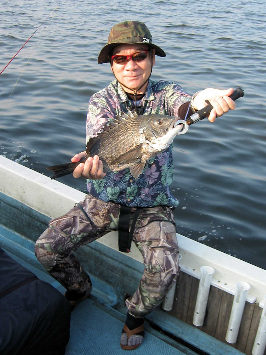 ■エサ釣り・黒鯛×52匹(37㎝以下は放流×12匹) ■チニング×8匹(37㎝以下は放流×6匹)(ひろ×5/パパ×3) ■コメント この日はエサ釣りで黒鯛を狙った後、近年流行のチニングで狙うコースで出船しました。 エサ釣りでは良い感じでアタリが続きましたが、お二人共にバラシとスッポヌケが多く頭を抱える展開が続きました。 最終的には150発ぐらいアタリがあり、キャッチ数は54匹と1/3のキャッチ数でした。 そんなとんでもないバラシの数にもかかわらず、お二人共にキャッチ数が27匹づつ、信じられない偶然にビックリです。 まあ、親子ですから、仲良しって事ですね! アハハ・・・ 後半はチニングでのクロちゃん狙い、今回で3回目の挑戦となります。 エサ釣りとは狙うポイントが異なる為、お客さまからアドバイスを頂き、狙いやすく釣れそうなポイントを選び釣り開始。 開始15分ぐらいはノーバイト、ポイントを少し変えるとバイトがあるがヒットせず! その後、ひろ君が1匹目をキャッチし全員に気合が入る! ポイントを変えながら2時間ほど狙い続け、最終的には8匹キャッチ(キビレ×1匹含む)でした。 私の立場からチニングの釣り方についての感想を言わせてもらえば、”ルアーマンが行う黒鯛釣り”って感じです。 基本はブラックバス狙いの釣り方を、黒鯛が好奇心を持つワームに変え、海での狙い方に変えた感じ。 狙うポイントによってはマゴチが外道でヒットする事も納得できます。 実際、今回で3回狙った感じから、狙ってみたいポイントは何ヶ所もありますので、チニングのご希望があれば対応いたします。 とは言え、真剣に狙ってみないとどの程度アタリがあるかわからないので、一発勝負での釣りとなりますので、予めご理解ください。 ■エサ釣り・黒鯛×54匹(37㎝以下は放流×12匹) □ひろくん×27匹 パパさん×27匹 まさかの同数!?) □エサ釣り・アタリの数×150発ぐらい ■チニング×8匹(37㎝以下は放流×6匹)(ひろ×5/パパ×3) □ひろくん×5匹 パパさん×3匹 |