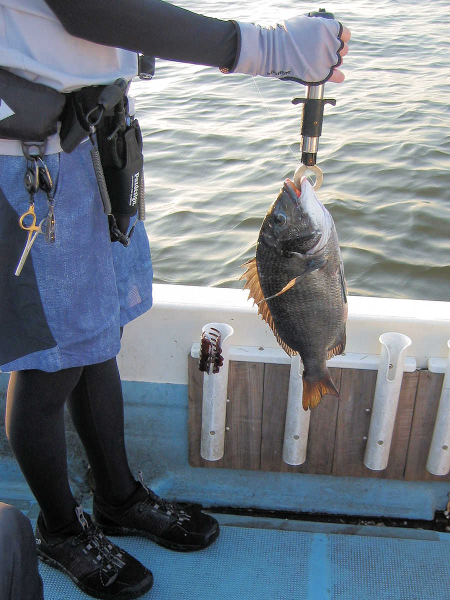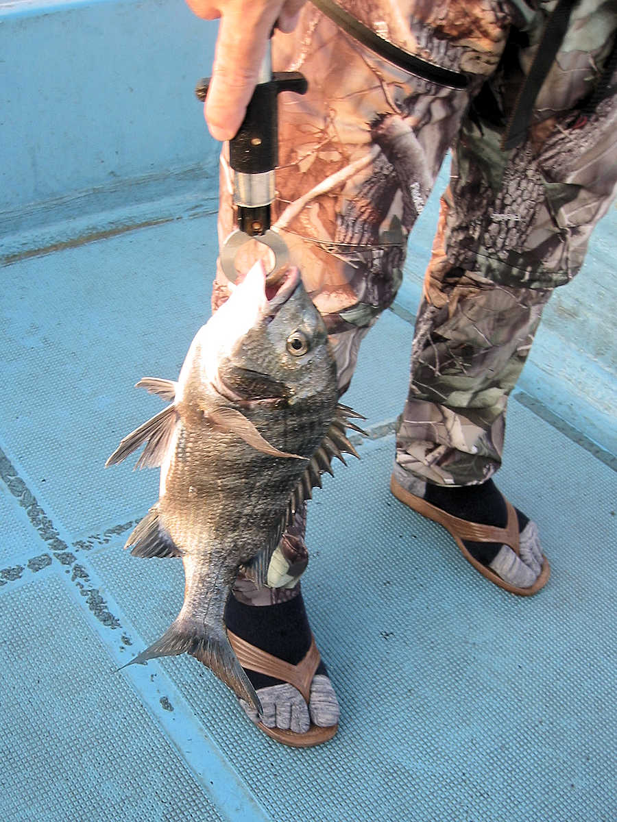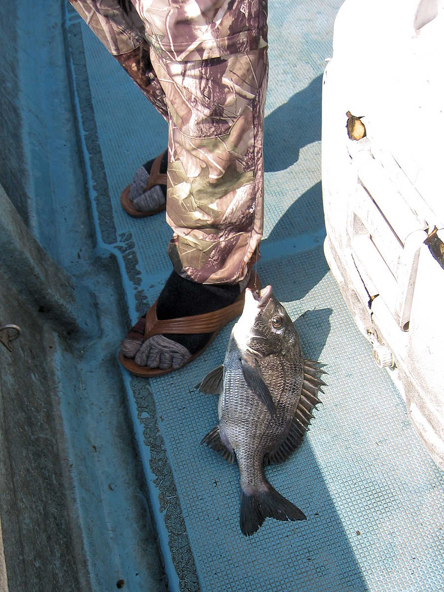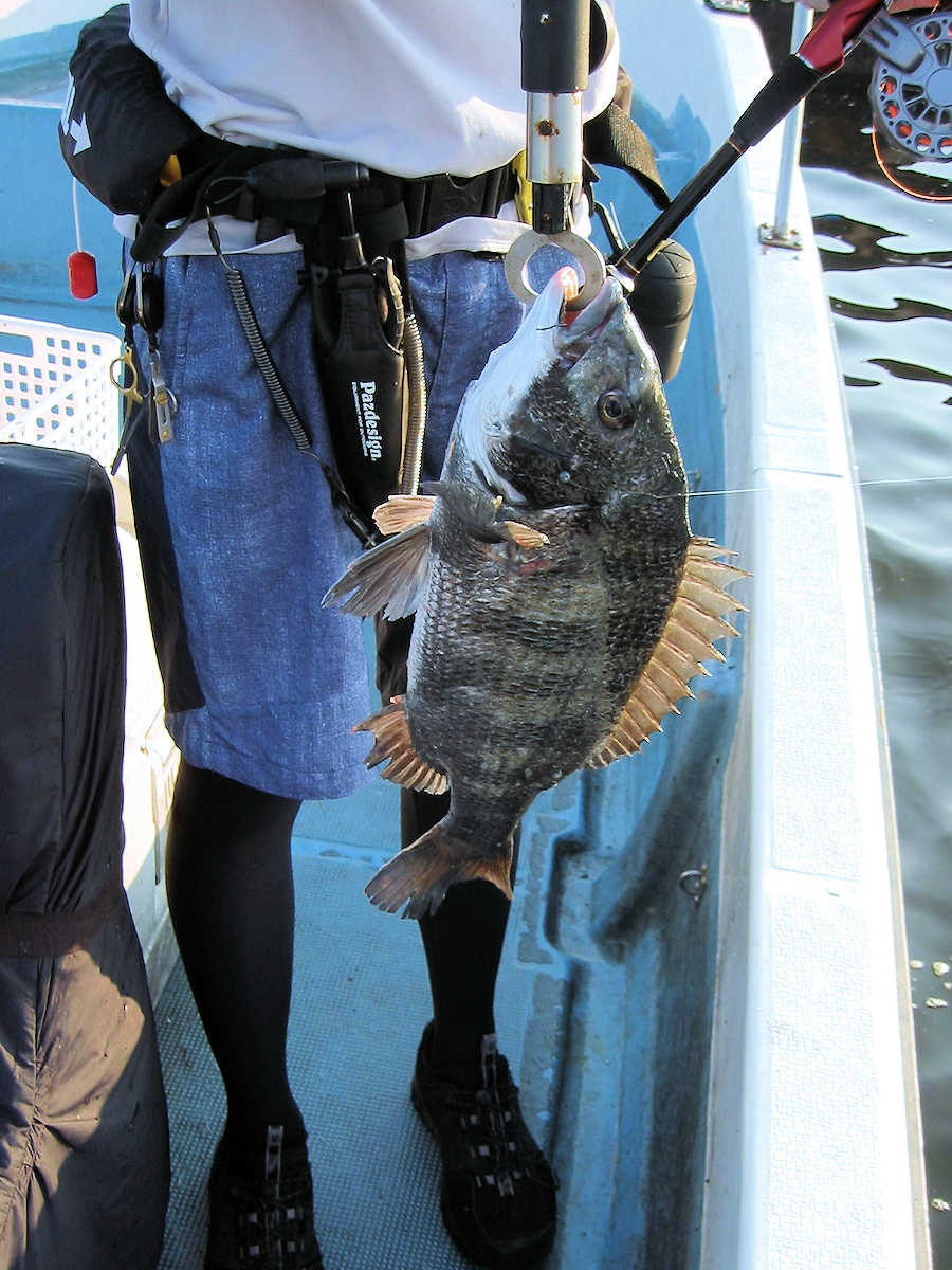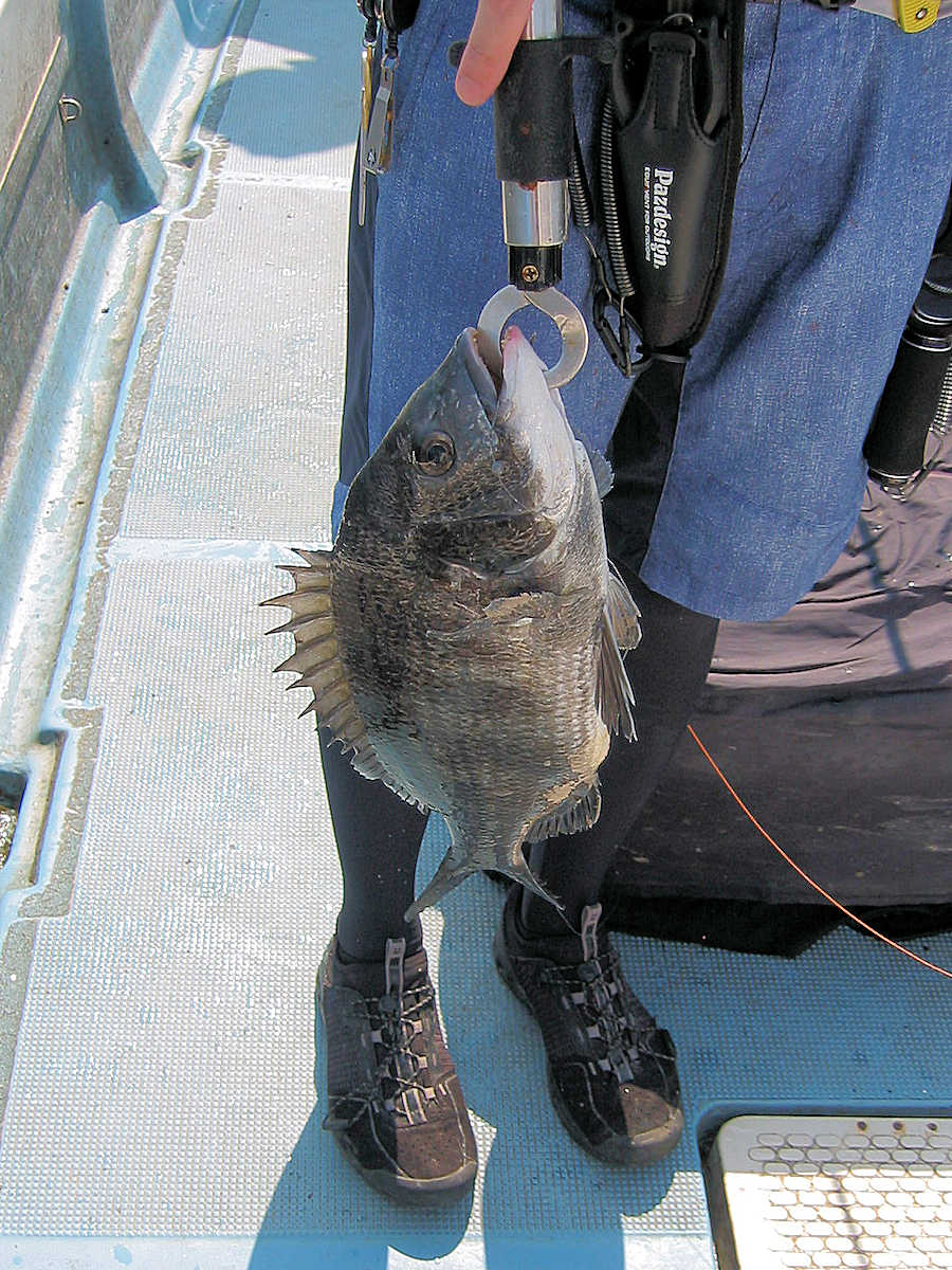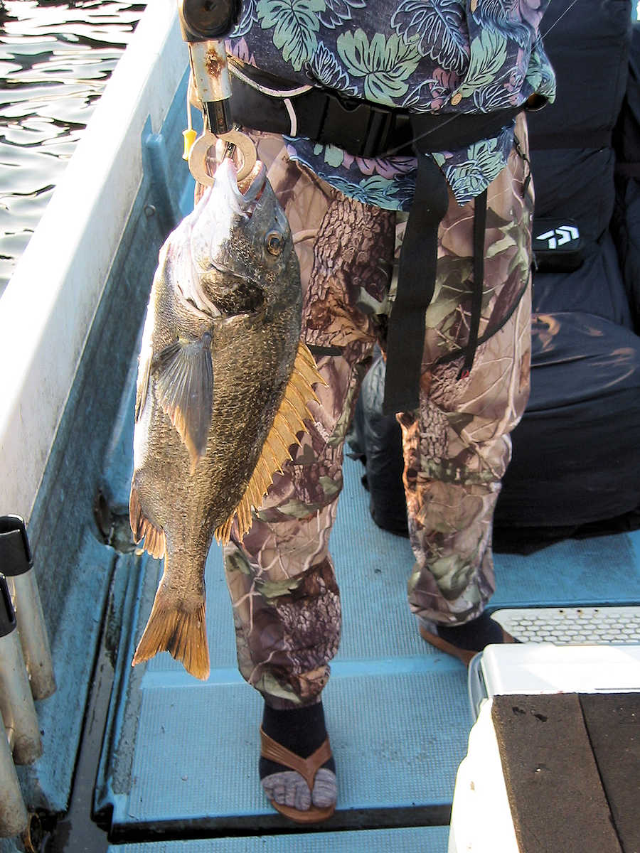 ■エサ釣り・黒鯛×52匹(37㎝以下は放流×12匹) ■チニング×8匹(37㎝以下は放流×6匹)(ひろ×5/パパ×3) ■コメント この日はエサ釣りで黒鯛を狙った後、近年流行のチニングで狙うコースで出船しました。 エサ釣りでは良い感じでアタリが続きましたが、お二人共にバラシとスッポヌケが多く頭を抱える展開が続きました。 最終的には150発ぐらいアタリがあり、キャッチ数は54匹と1/3のキャッチ数でした。 そんなとんでもないバラシの数にもかかわらず、お二人共にキャッチ数が27匹づつ、信じられない偶然にビックリです。 まあ、親子ですから、仲良しって事ですね! アハハ・・・ 後半はチニングでのクロちゃん狙い、今回で3回目の挑戦となります。 エサ釣りとは狙うポイントが異なる為、お客さまからアドバイスを頂き、狙いやすく釣れそうなポイントを選び釣り開始。 開始15分ぐらいはノーバイト、ポイントを少し変えるとバイトがあるがヒットせず! その後、ひろ君が1匹目をキャッチし全員に気合が入る! ポイントを変えながら2時間ほど狙い続け、最終的には8匹キャッチ(キビレ×1匹含む)でした。 私の立場からチニングの釣り方についての感想を言わせてもらえば、”ルアーマンが行う黒鯛釣り”って感じです。 基本はブラックバス狙いの釣り方を、黒鯛が好奇心を持つワームに変え、海での狙い方に変えた感じ。 狙うポイントによってはマゴチが外道でヒットする事も納得できます。 実際、今回で3回狙った感じから、狙ってみたいポイントは何ヶ所もありますので、チニングのご希望があれば対応いたします。 とは言え、真剣に狙ってみないとどの程度アタリがあるかわからないので、一発勝負での釣りとなりますので、予めご理解ください。 ■エサ釣り・黒鯛×54匹(37㎝以下は放流×12匹) □ひろくん×27匹 パパさん×27匹 まさかの同数!?) □エサ釣り・アタリの数×150発ぐらい ■チニング×8匹(37㎝以下は放流×6匹)(ひろ×5/パパ×3) □ひろくん×5匹 パパさん×3匹 |