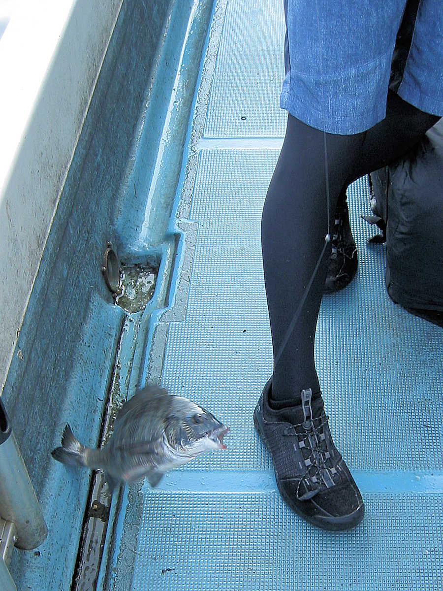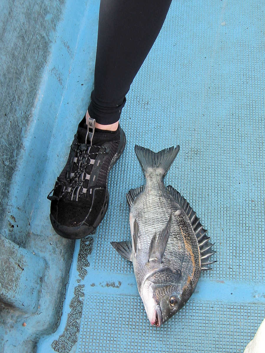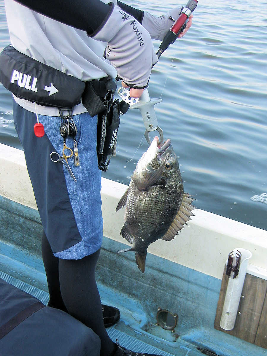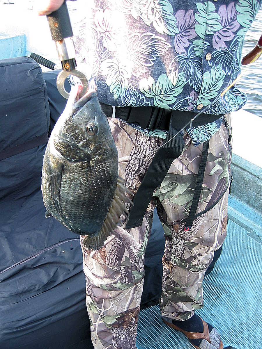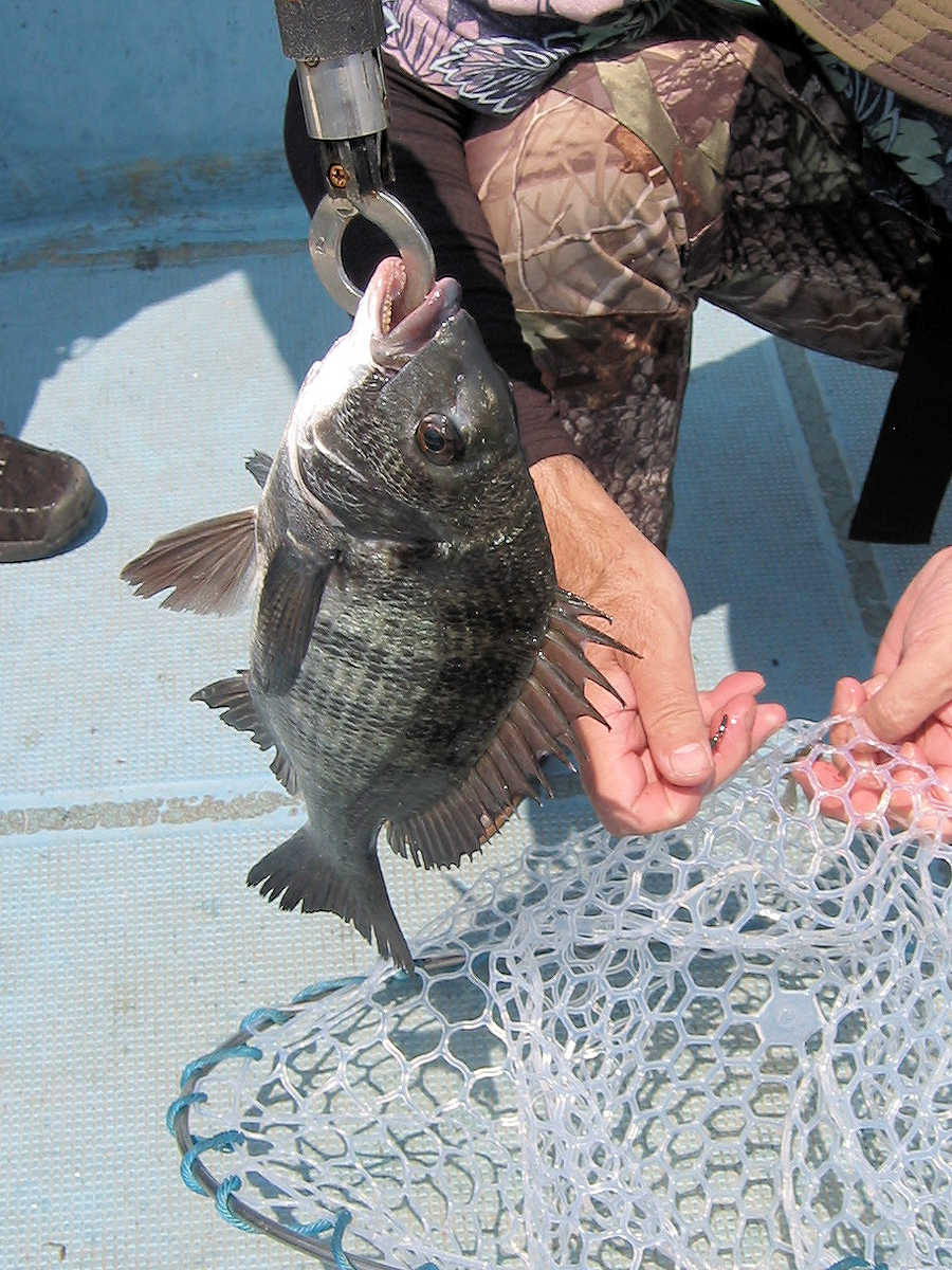 ■エサ釣り・黒鯛×52匹(37㎝以下は放流×12匹) ■チニング×8匹(37㎝以下は放流×6匹)(ひろ×5/パパ×3) ■コメント この日はエサ釣りで黒鯛を狙った後、近年流行のチニングで狙うコースで出船しました。 エサ釣りでは良い感じでアタリが続きましたが、お二人共にバラシとスッポヌケが多く頭を抱える展開が続きました。 最終的には150発ぐらいアタリがあり、キャッチ数は54匹と1/3のキャッチ数でした。 そんなとんでもないバラシの数にもかかわらず、お二人共にキャッチ数が27匹づつ、信じられない偶然にビックリです。 まあ、親子ですから、仲良しって事ですね! アハハ・・・ 後半はチニングでのクロちゃん狙い、今回で3回目の挑戦となります。 エサ釣りとは狙うポイントが異なる為、お客さまからアドバイスを頂き、狙いやすく釣れそうなポイントを選び釣り開始。 開始15分ぐらいはノーバイト、ポイントを少し変えるとバイトがあるがヒットせず! その後、ひろ君が1匹目をキャッチし全員に気合が入る! ポイントを変えながら2時間ほど狙い続け、最終的には8匹キャッチ(キビレ×1匹含む)でした。 私の立場からチニングの釣り方についての感想を言わせてもらえば、”ルアーマンが行う黒鯛釣り”って感じです。 基本はブラックバス狙いの釣り方を、黒鯛が好奇心を持つワームに変え、海での狙い方に変えた感じ。 狙うポイントによってはマゴチが外道でヒットする事も納得できます。 実際、今回で3回狙った感じから、狙ってみたいポイントは何ヶ所もありますので、チニングのご希望があれば対応いたします。 とは言え、真剣に狙ってみないとどの程度アタリがあるかわからないので、一発勝負での釣りとなりますので、予めご理解ください。 ■エサ釣り・黒鯛×54匹(37㎝以下は放流×12匹) □ひろくん×27匹 パパさん×27匹 まさかの同数!?) □エサ釣り・アタリの数×150発ぐらい ■チニング×8匹(37㎝以下は放流×6匹)(ひろ×5/パパ×3) □ひろくん×5匹 パパさん×3匹 |