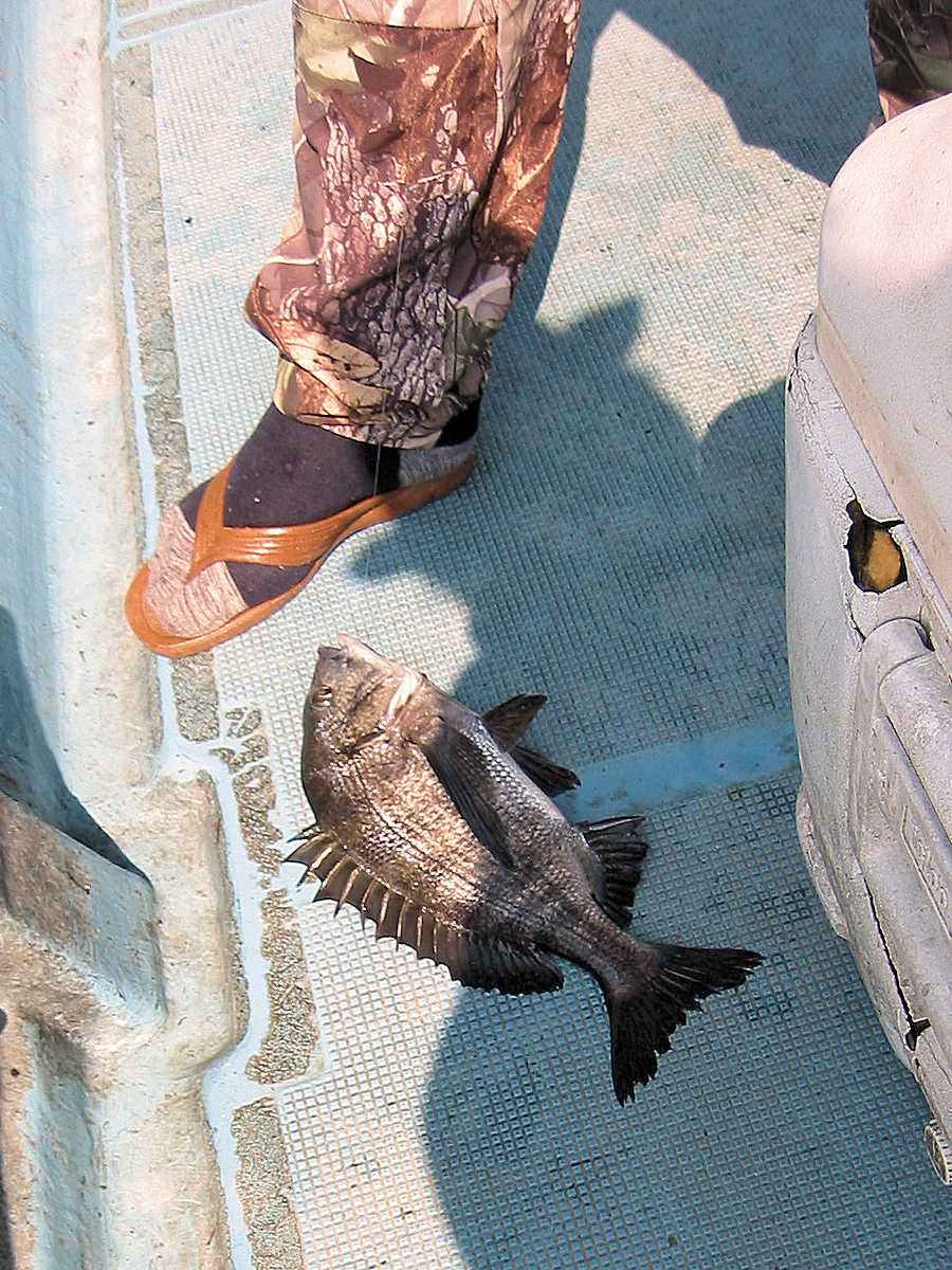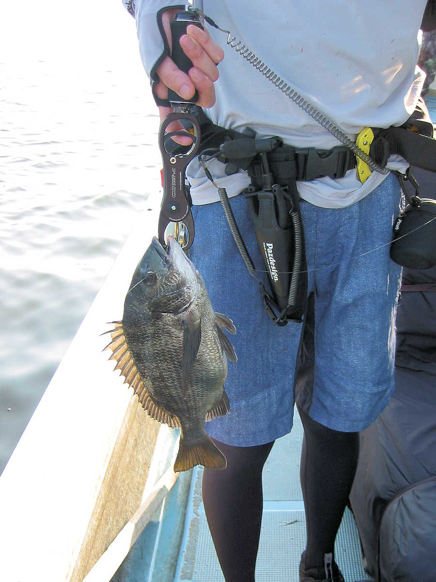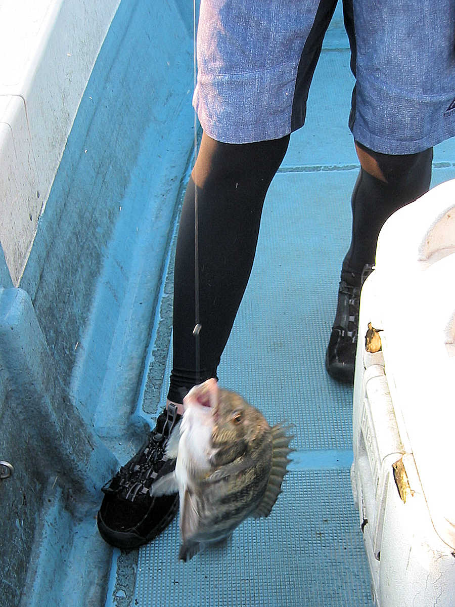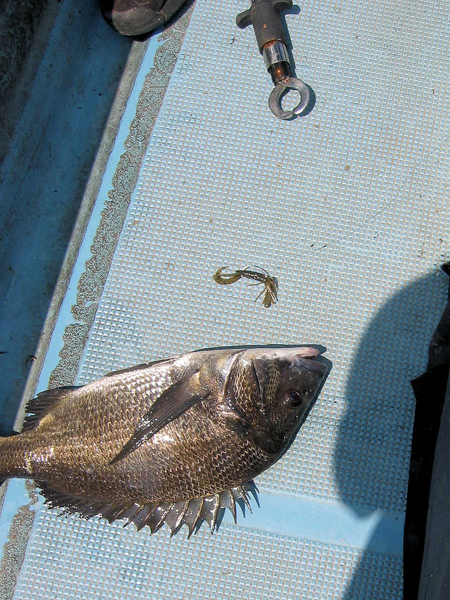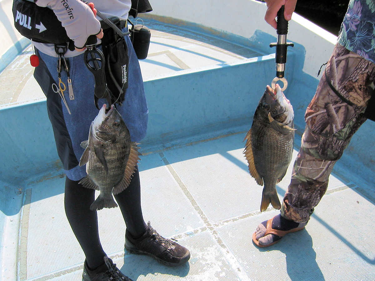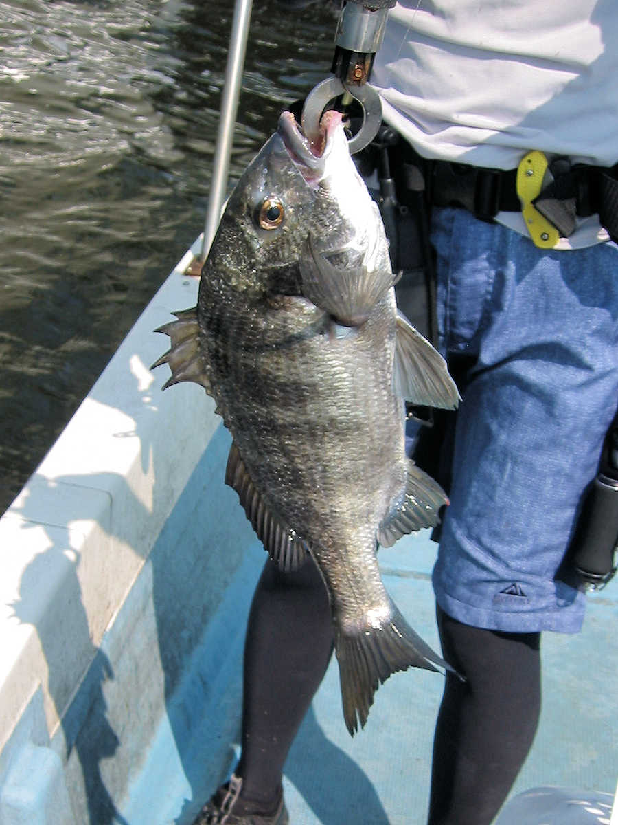 ■エサ釣り・黒鯛×52匹(37㎝以下は放流×12匹) ■チニング×8匹(37㎝以下は放流×6匹)(ひろ×5/パパ×3) ■コメント この日はエサ釣りで黒鯛を狙った後、近年流行のチニングで狙うコースで出船しました。 エサ釣りでは良い感じでアタリが続きましたが、お二人共にバラシとスッポヌケが多く頭を抱える展開が続きました。 最終的には150発ぐらいアタリがあり、キャッチ数は54匹と1/3のキャッチ数でした。 そんなとんでもないバラシの数にもかかわらず、お二人共にキャッチ数が27匹づつ、信じられない偶然にビックリです。 まあ、親子ですから、仲良しって事ですね! アハハ・・・ 後半はチニングでのクロちゃん狙い、今回で3回目の挑戦となります。 エサ釣りとは狙うポイントが異なる為、お客さまからアドバイスを頂き、狙いやすく釣れそうなポイントを選び釣り開始。 開始15分ぐらいはノーバイト、ポイントを少し変えるとバイトがあるがヒットせず! その後、ひろ君が1匹目をキャッチし全員に気合が入る! ポイントを変えながら2時間ほど狙い続け、最終的には8匹キャッチ(キビレ×1匹含む)でした。 私の立場からチニングの釣り方についての感想を言わせてもらえば、”ルアーマンが行う黒鯛釣り”って感じです。 基本はブラックバス狙いの釣り方を、黒鯛が好奇心を持つワームに変え、海での狙い方に変えた感じ。 狙うポイントによってはマゴチが外道でヒットする事も納得できます。 実際、今回で3回狙った感じから、狙ってみたいポイントは何ヶ所もありますので、チニングのご希望があれば対応いたします。 とは言え、真剣に狙ってみないとどの程度アタリがあるかわからないので、一発勝負での釣りとなりますので、予めご理解ください。 ■エサ釣り・黒鯛×54匹(37㎝以下は放流×12匹) □ひろくん×27匹 パパさん×27匹 まさかの同数!?) □エサ釣り・アタリの数×150発ぐらい ■チニング×8匹(37㎝以下は放流×6匹)(ひろ×5/パパ×3) □ひろくん×5匹 パパさん×3匹 |
