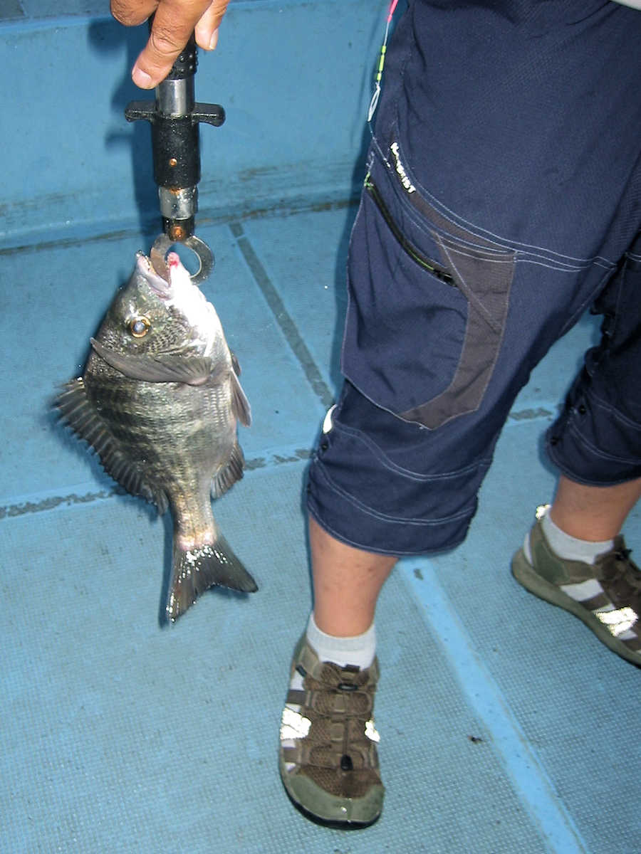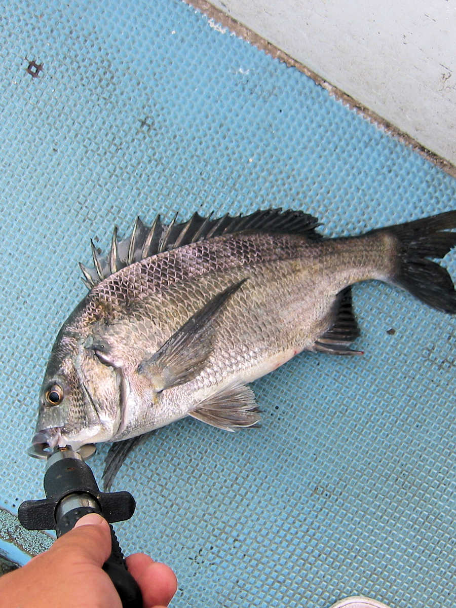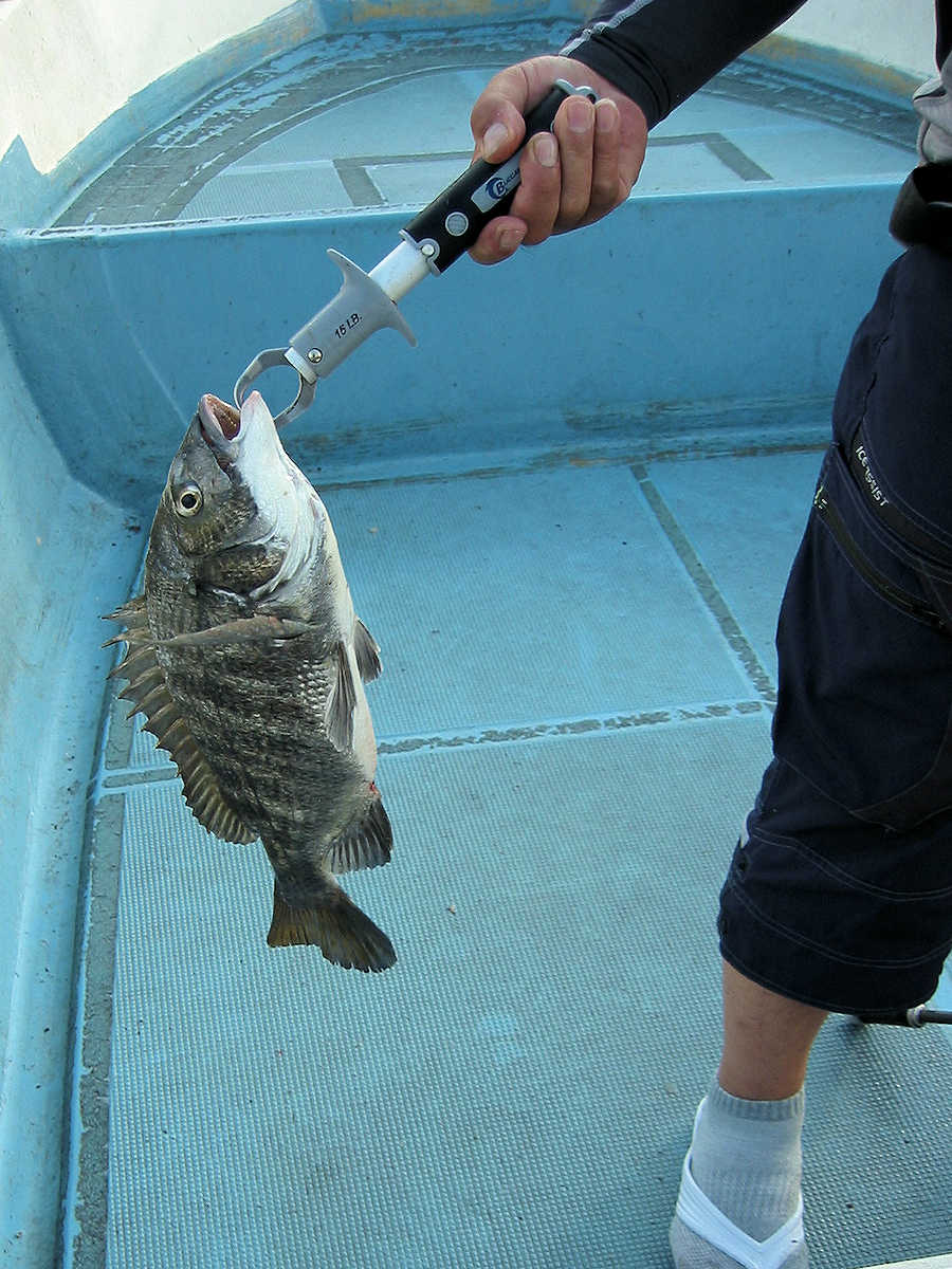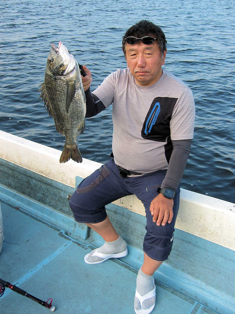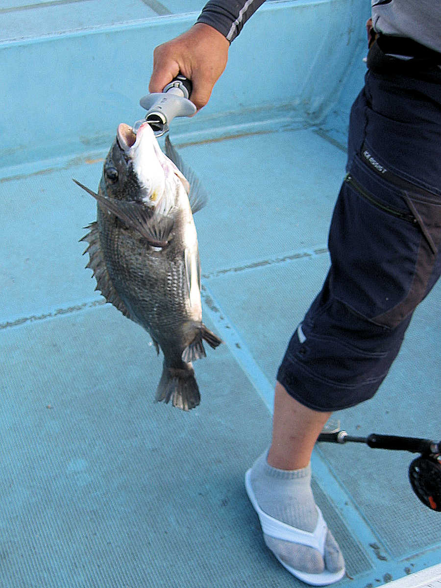 ★写真では53匹ですが、チイサイズを写真撮影する前に放流×2匹 ■黒鯛×55匹(37㎝以下は放流×23匹) ■コメント 前日までの状況から「今日も釣れる!」と自信をもって出船しましたが、アッチもコッチも反応悪く、たまにアタリがある感じ。 どうやら前日までイジメすぎたようで魚が警戒している感じでしたが、最終的には53匹キャッチでき楽しい釣りとなりました。 前回の出船ではバラシとスッポヌケに泣いたマサさんですが、今回はバラシ対策が上手くハマり、120発ぐらいのアタリに対し約1/2の魚をキャッチでき、「バラシの王様」の称号を返上する事ができました。 いや~、良かった・良かった! ■黒鯛×55匹(37㎝以下は放流×23匹) □アタリの数×120発ぐらい □まささん×54匹 □恵比寿さん×1匹 |