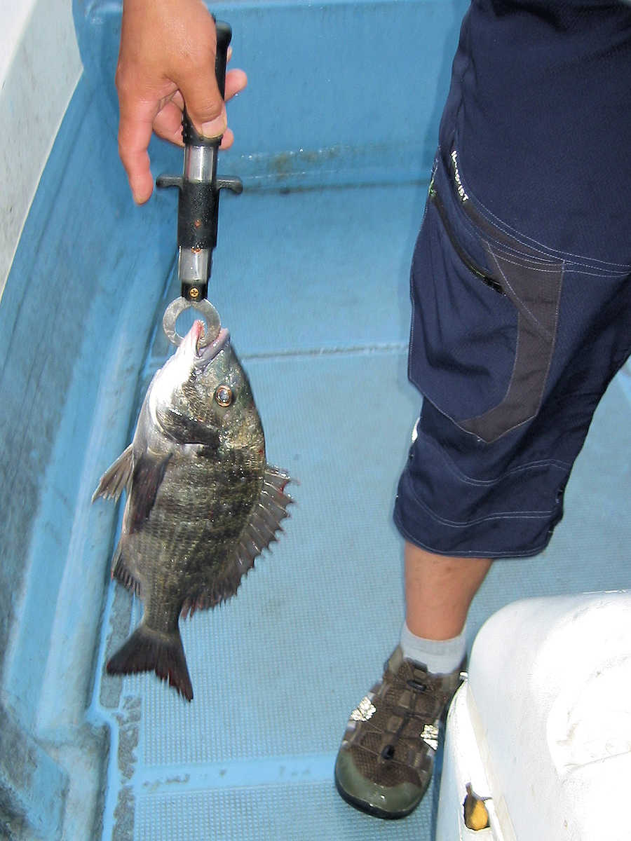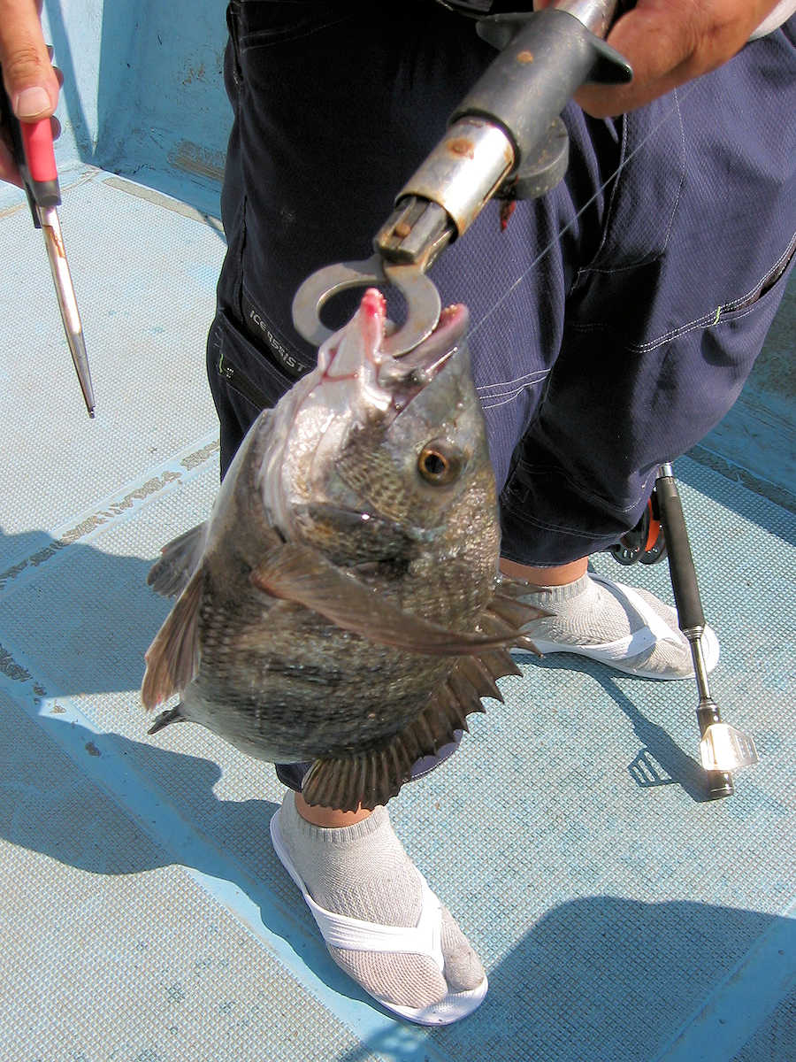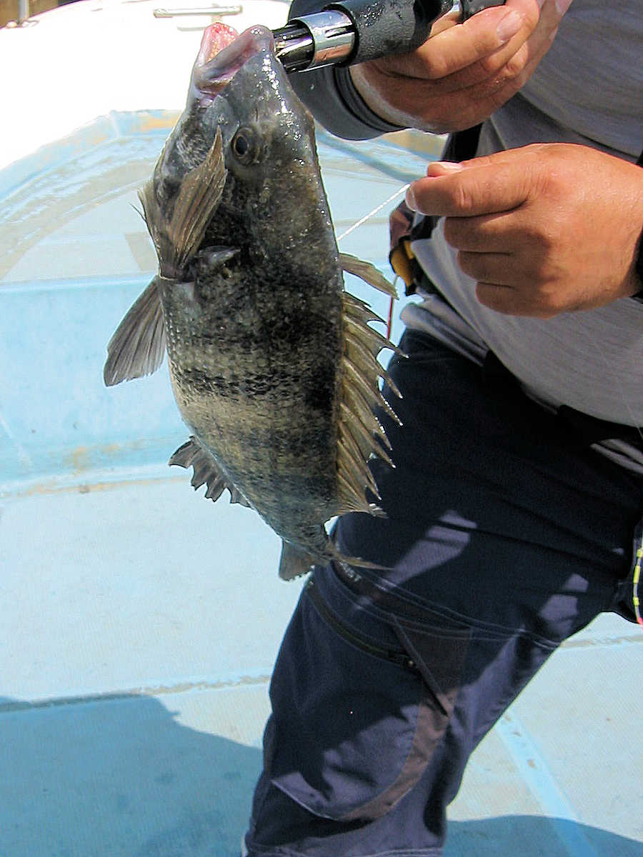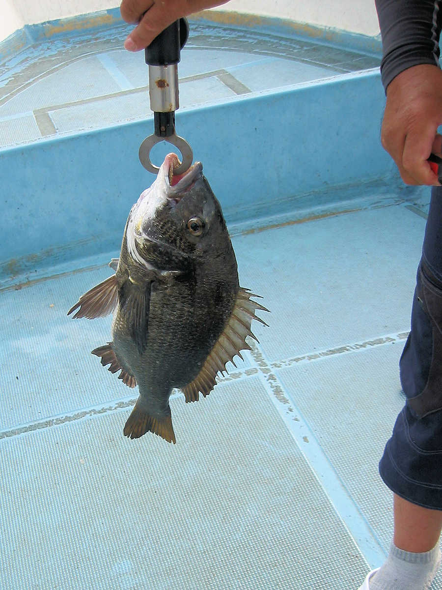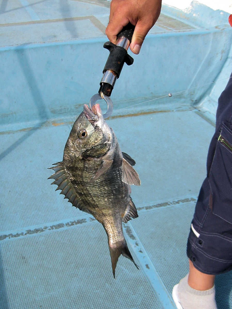 ★写真では53匹ですが、チイサイズを写真撮影する前に放流×2匹 ■黒鯛×55匹(37㎝以下は放流×23匹) ■コメント 前日までの状況から「今日も釣れる!」と自信をもって出船しましたが、アッチもコッチも反応悪く、たまにアタリがある感じ。 どうやら前日までイジメすぎたようで魚が警戒している感じでしたが、最終的には53匹キャッチでき楽しい釣りとなりました。 前回の出船ではバラシとスッポヌケに泣いたマサさんですが、今回はバラシ対策が上手くハマり、120発ぐらいのアタリに対し約1/2の魚をキャッチでき、「バラシの王様」の称号を返上する事ができました。 いや~、良かった・良かった! ■黒鯛×55匹(37㎝以下は放流×23匹) □アタリの数×120発ぐらい □まささん×54匹 □恵比寿さん×1匹 |