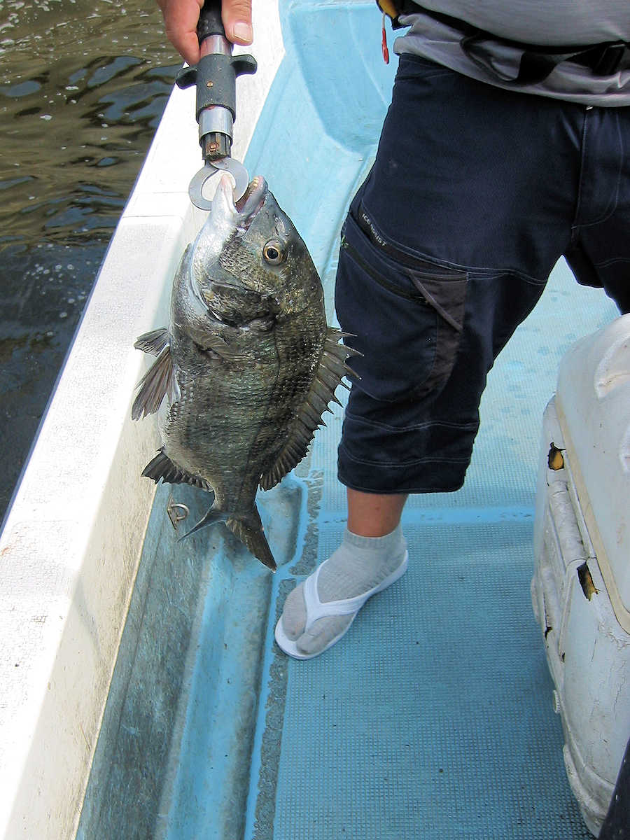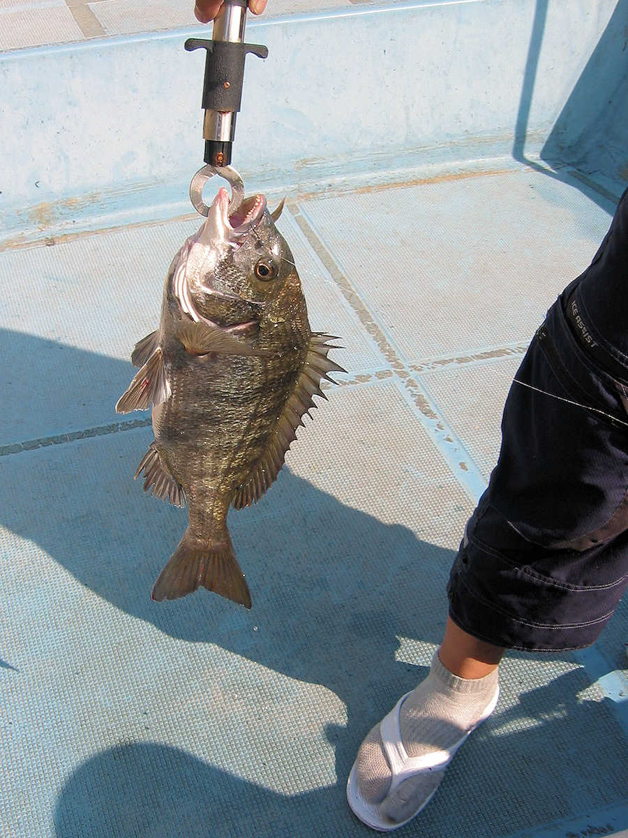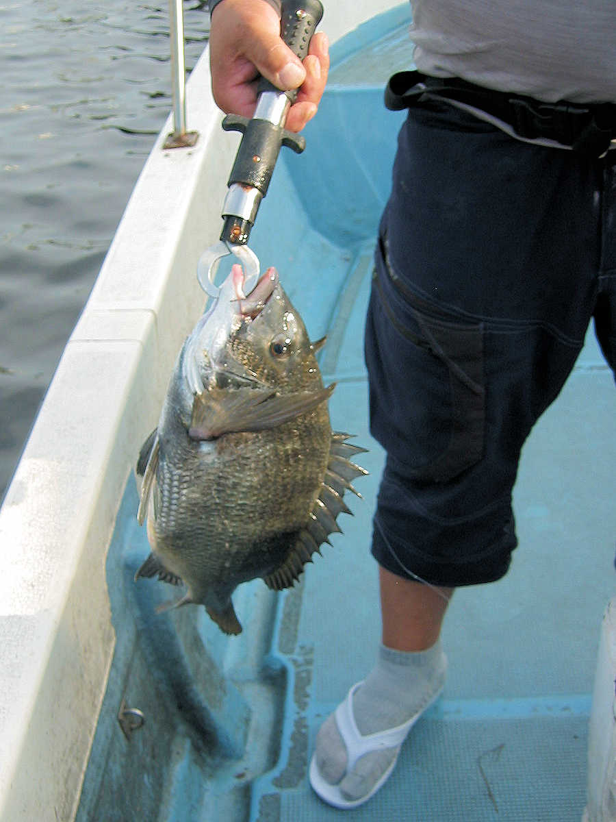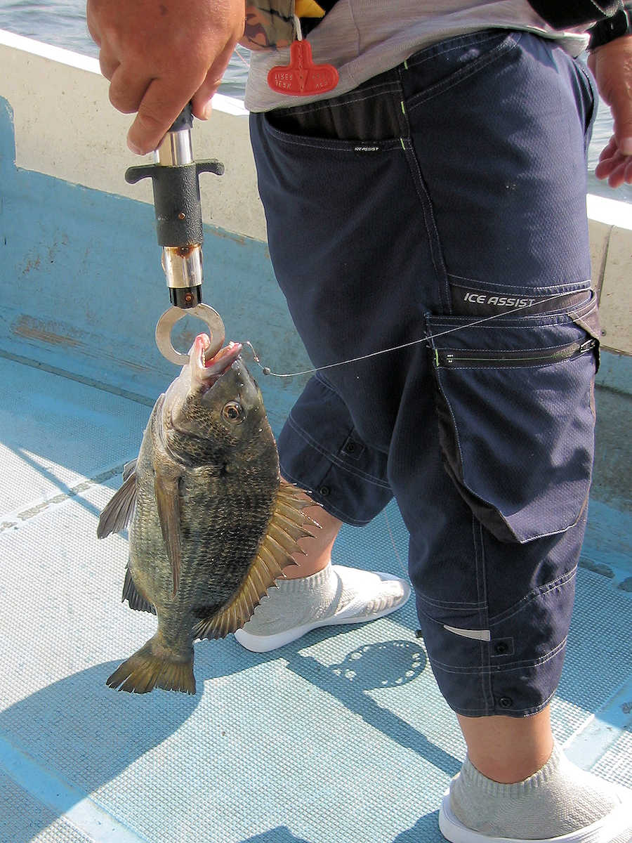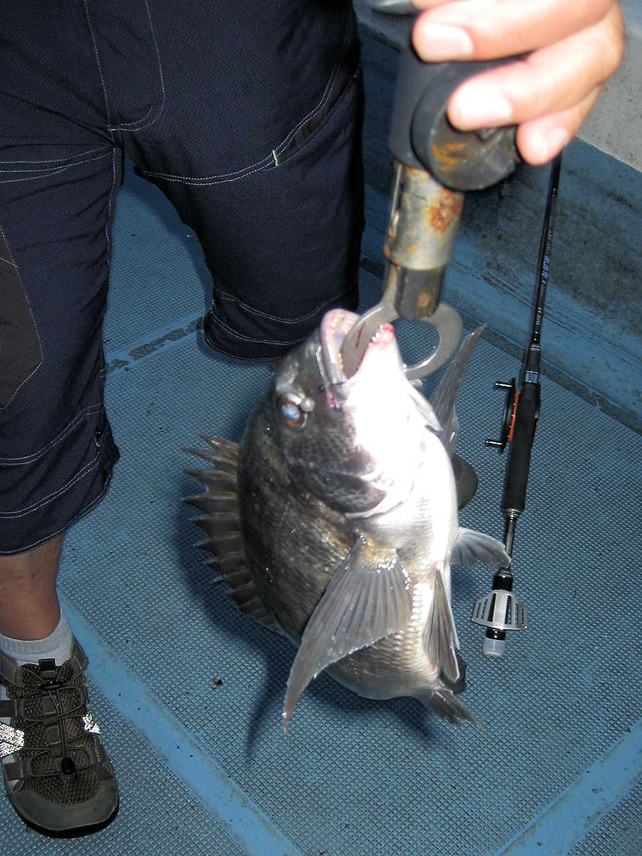 ★写真では53匹ですが、チイサイズを写真撮影する前に放流×2匹 ■黒鯛×55匹(37㎝以下は放流×23匹) ■コメント 前日までの状況から「今日も釣れる!」と自信をもって出船しましたが、アッチもコッチも反応悪く、たまにアタリがある感じ。 どうやら前日までイジメすぎたようで魚が警戒している感じでしたが、最終的には53匹キャッチでき楽しい釣りとなりました。 前回の出船ではバラシとスッポヌケに泣いたマサさんですが、今回はバラシ対策が上手くハマり、120発ぐらいのアタリに対し約1/2の魚をキャッチでき、「バラシの王様」の称号を返上する事ができました。 いや~、良かった・良かった! ■黒鯛×55匹(37㎝以下は放流×23匹) □アタリの数×120発ぐらい □まささん×54匹 □恵比寿さん×1匹 |
