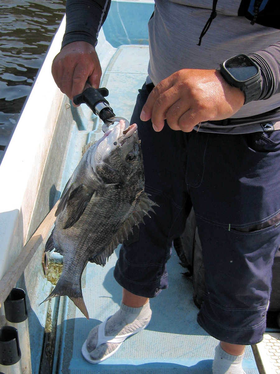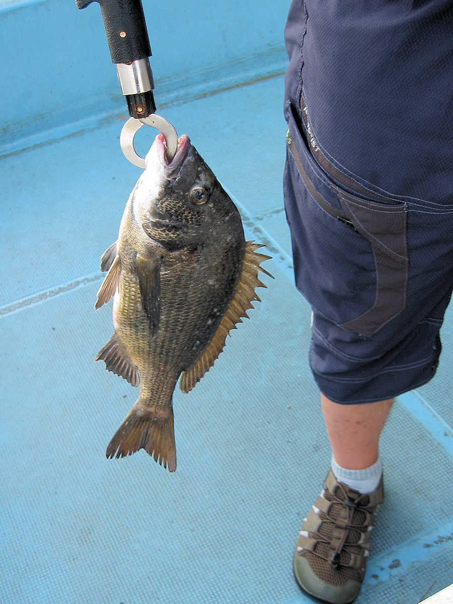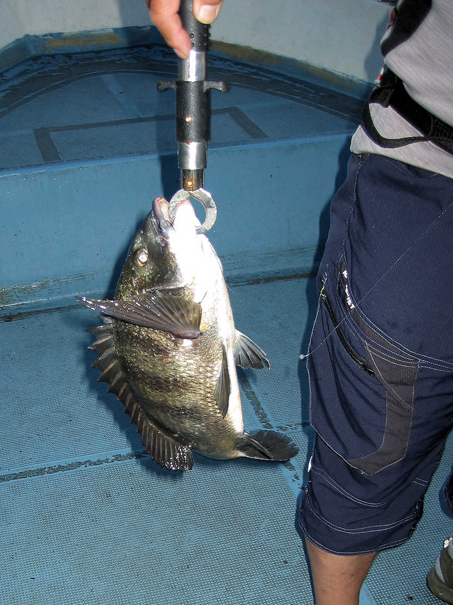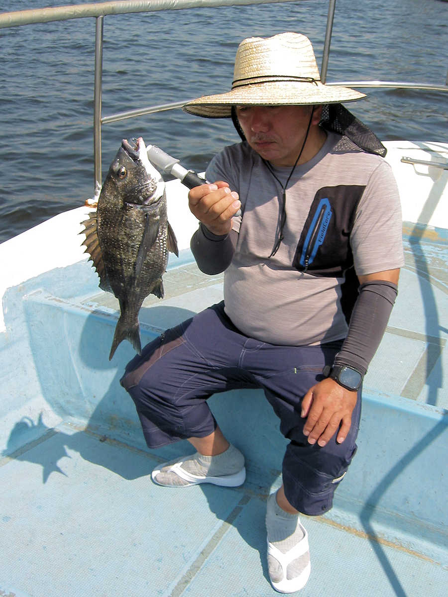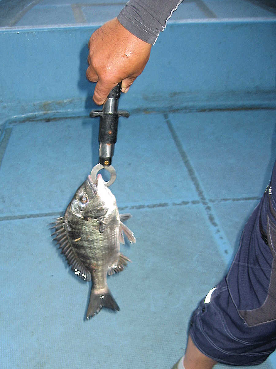 ★写真では53匹ですが、チイサイズを写真撮影する前に放流×2匹 ■黒鯛×55匹(37㎝以下は放流×23匹) ■コメント 前日までの状況から「今日も釣れる!」と自信をもって出船しましたが、アッチもコッチも反応悪く、たまにアタリがある感じ。 どうやら前日までイジメすぎたようで魚が警戒している感じでしたが、最終的には53匹キャッチでき楽しい釣りとなりました。 前回の出船ではバラシとスッポヌケに泣いたマサさんですが、今回はバラシ対策が上手くハマり、120発ぐらいのアタリに対し約1/2の魚をキャッチでき、「バラシの王様」の称号を返上する事ができました。 いや~、良かった・良かった! ■黒鯛×55匹(37㎝以下は放流×23匹) □アタリの数×120発ぐらい □まささん×54匹 □恵比寿さん×1匹 |