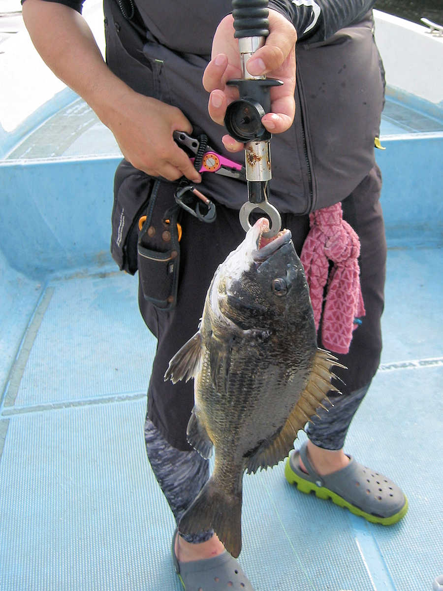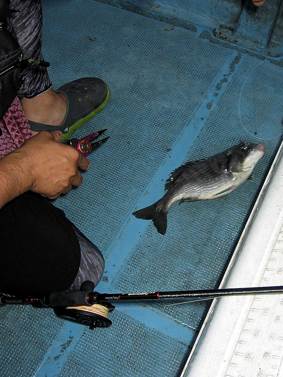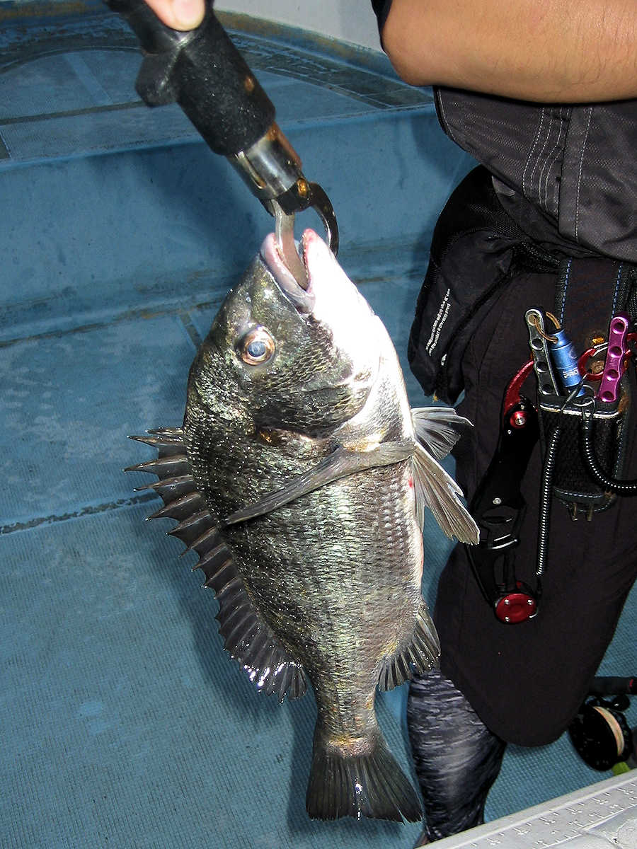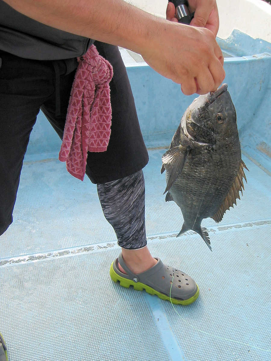 ■黒鯛×43匹(37㎝以下は放流×17匹) □アタリの数×90発ぐらい ■マダコ×11パイ(放流サイズ×4ハイ) ■コメント 黒鯛狙いは好調で、楽しい釣りができました! 前半はスッポヌケ&バラシが多めでしたが、中盤以降はアタリに対し半分以上の魚をキャッチでき、優秀な黒鯛師のキャッチ数となりました。 お見事でした! タコは前半にチョロリ狙い、おみあげGET出来ました。 もう少しタコを狙いたい気分でしたが、ノンビリしていると太陽ギラギラで死にそうな気温になるのでサッサと止めて、黒鯛狙いに専念しました。 |
