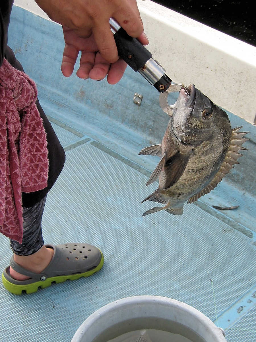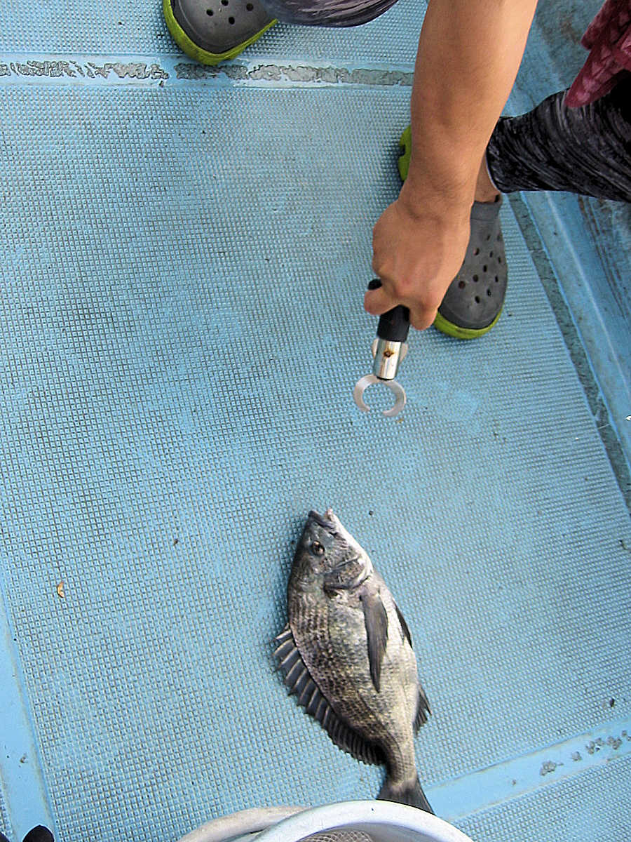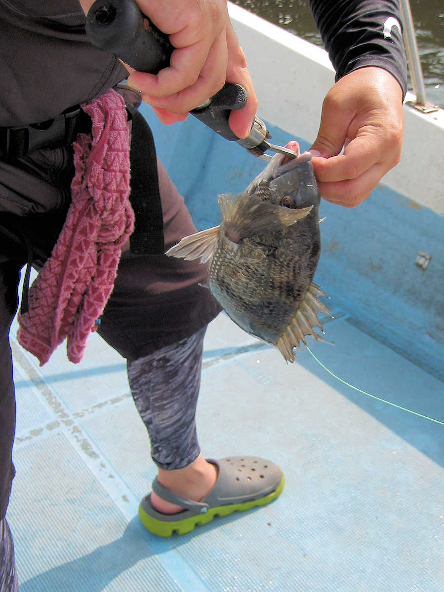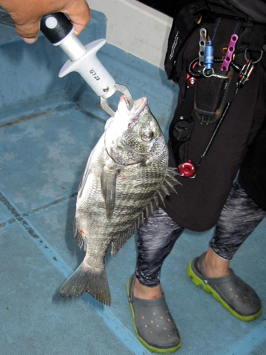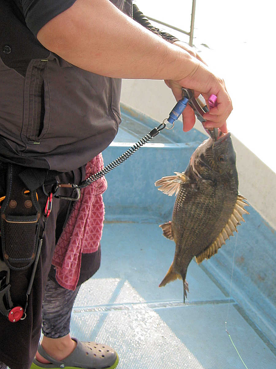 ■黒鯛×43匹(37㎝以下は放流×17匹) □アタリの数×90発ぐらい ■マダコ×11パイ(放流サイズ×4ハイ) ■コメント 黒鯛狙いは好調で、楽しい釣りができました! 前半はスッポヌケ&バラシが多めでしたが、中盤以降はアタリに対し半分以上の魚をキャッチでき、優秀な黒鯛師のキャッチ数となりました。 お見事でした! タコは前半にチョロリ狙い、おみあげGET出来ました。 もう少しタコを狙いたい気分でしたが、ノンビリしていると太陽ギラギラで死にそうな気温になるのでサッサと止めて、黒鯛狙いに専念しました。 |