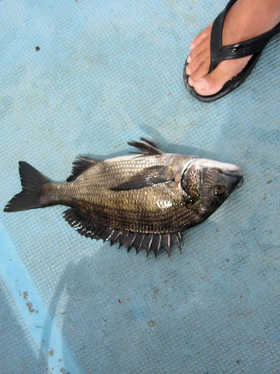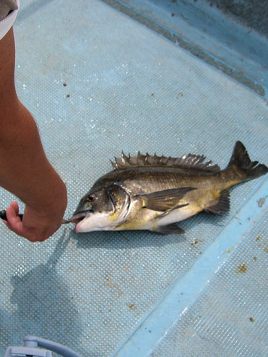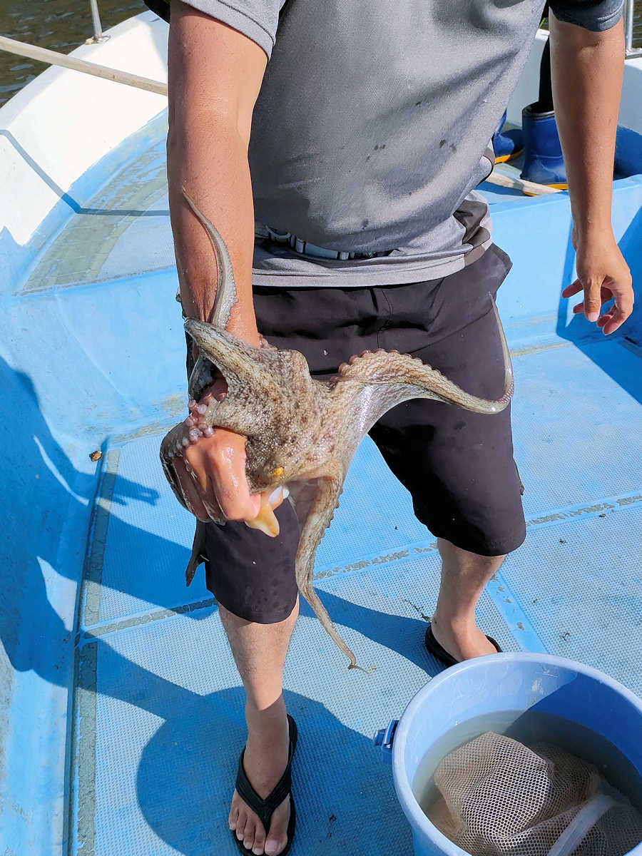 ■タコ×25ハイ ■黒鯛× 18匹 ■コメント エンジントラブルで長々とお休みしていました。 原因がわからず時間が掛かってしまいましたが、無事に修理が完了し9日から営業開始となりました。 まずは今年釣れているタコから。 予定していたポイントで運良くキャッチでき、25ハイキャッチ! サイズも大きくなり満足できるサイズでしたので、無事におみあげゲット完了できました! 次は黒鯛狙い。 海水のニゴリは薄い茶色でしたが、良い感じでアタリが続き、18匹キャッチできました。 カラス貝の付着が悪い関係で、今年も釣れるサイズがチイサイズばかりでしたが、この日は久しぶりに大きな群れに出会い43~48cmがメインでした。 とは言え、昔は当たり前のように釣れた50cm級ですが、今だに釣れない事が気がかりです。 ■タコ×25ハイ ■黒鯛× 18匹 □アタリの数:40発ぐらい □わたちゃん× 8パイ&9匹 □店長さん× 7ハイ&9匹 □船頭×7ハイ |
