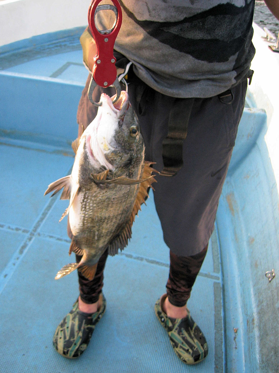 ■黒鯛× 27匹 ■コメント 久しぶりの黒鯛狙いでしたが、120発ぐらいアタリがあり27匹キャッチできました。 バラシ・スッポヌケ・エサ潰されに泣きキャッチ数は伸びませんでしたが、この日、黒鯛狙い初挑戦となったキタさんですが、無事5匹キャッチ出来て良かったです。 ちなみに、ベテランのシンさんは後輩二人に釣らせるため、終始『接待釣法』での釣りでしたが、仕掛けの投入に苦しむ二人の姿を見ていられず、たまにズル込みしキャッチしていました。アハハ ■黒鯛× 27匹 □アタリの数:120発ぐらい □しんさん× 13匹 □ぞのさん× 9匹 □きたさん× 5匹 |