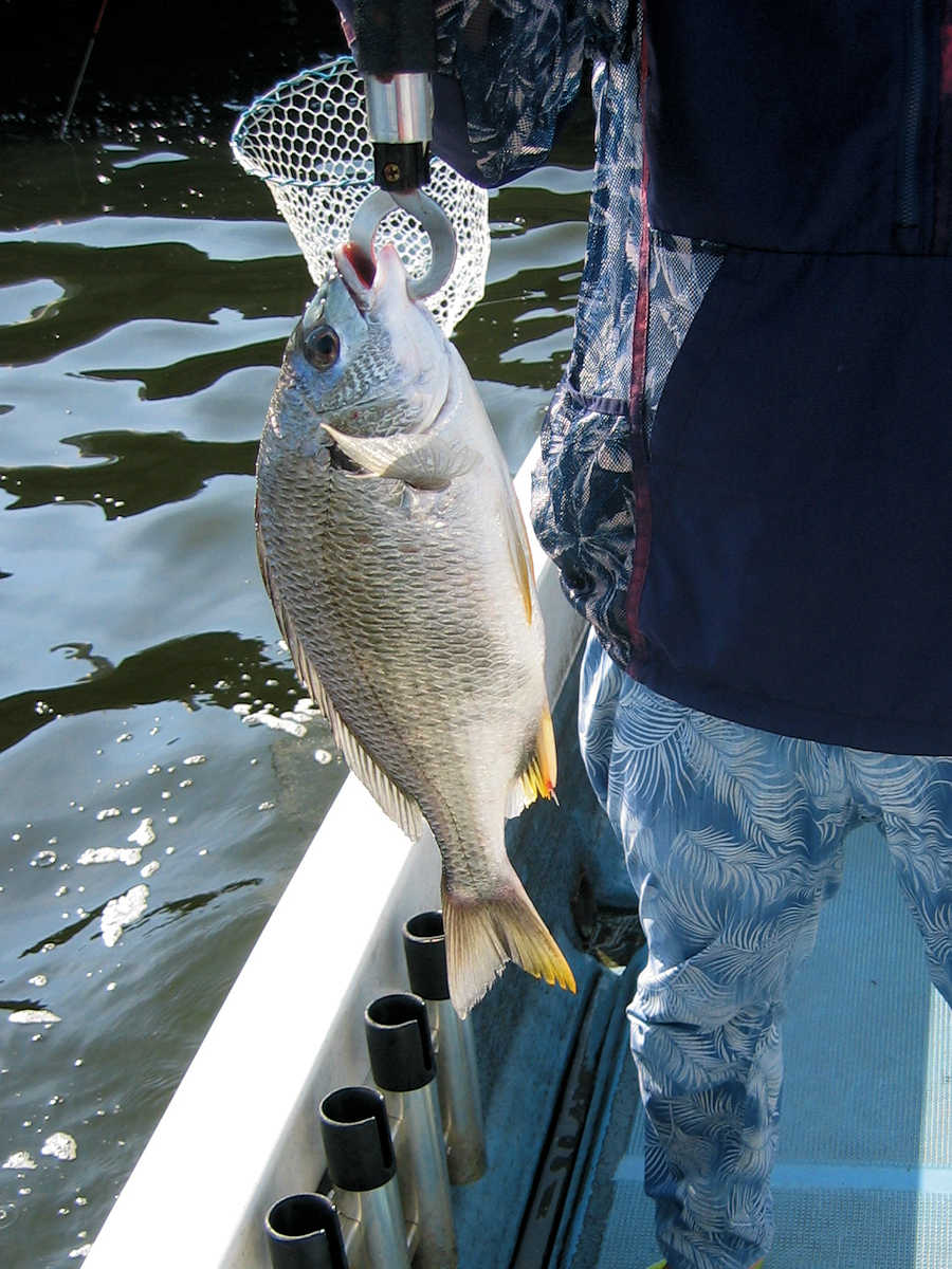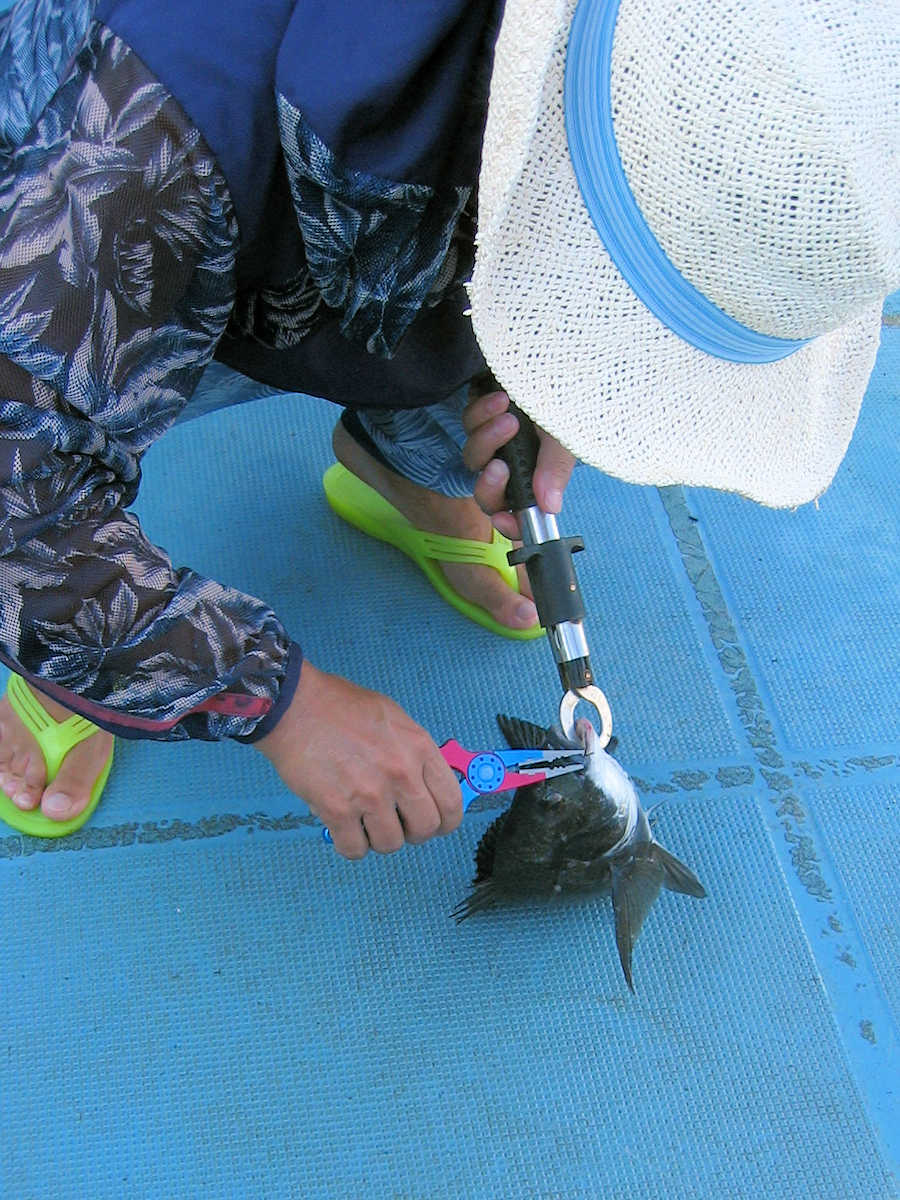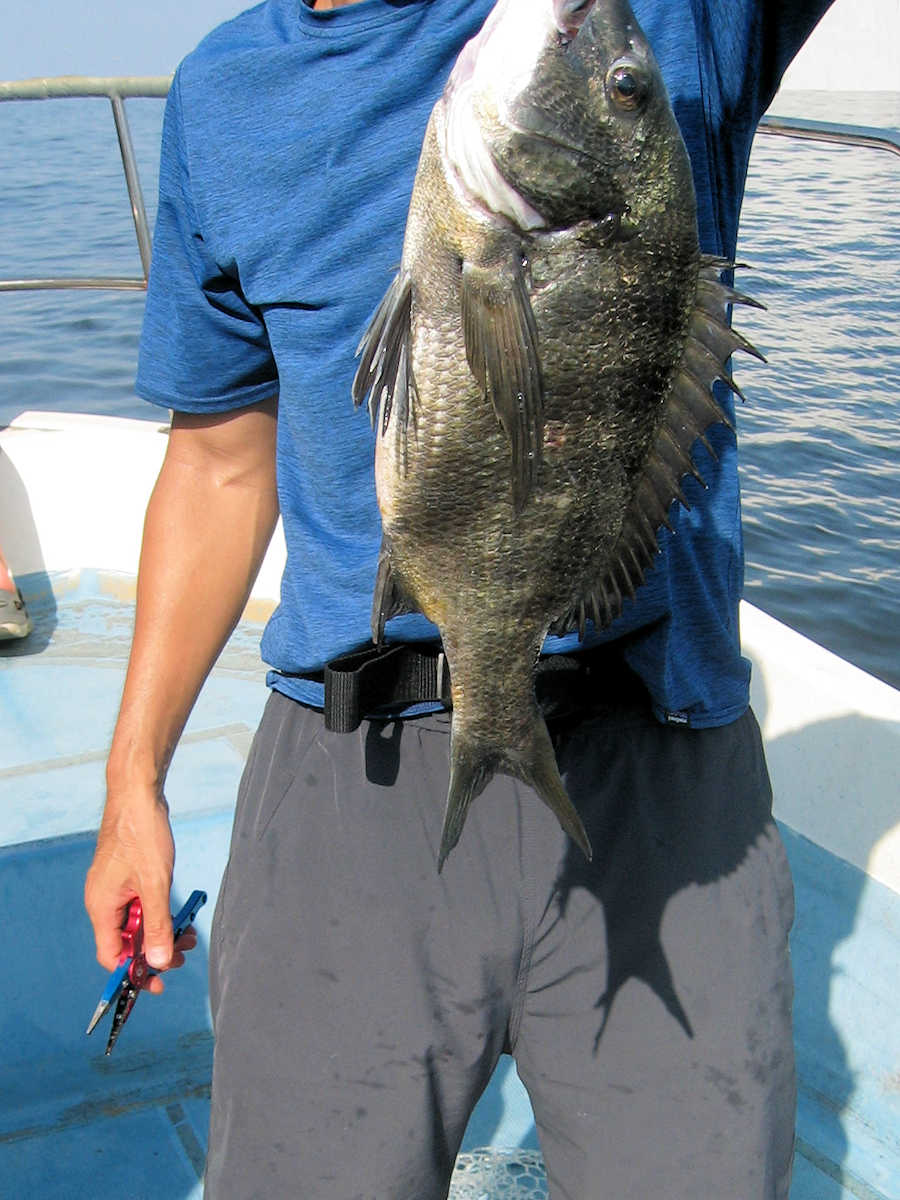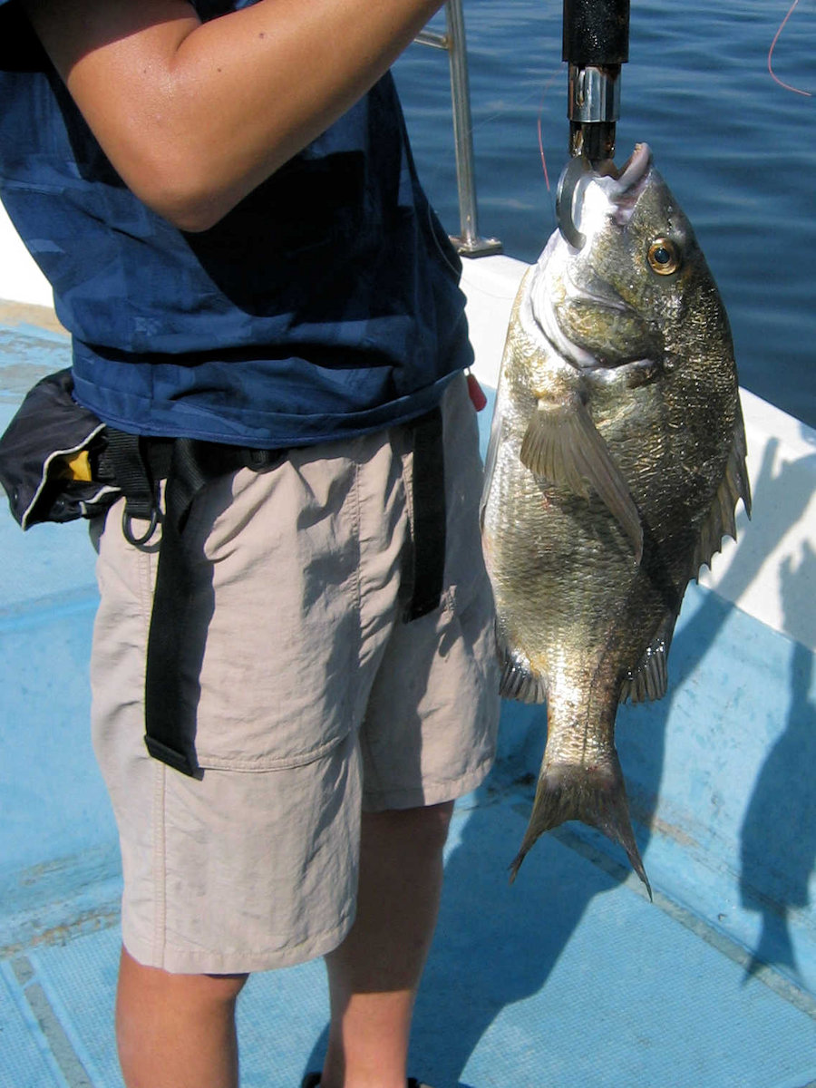 ■タコのはっちゃん×タコボーズ!\(-o-)/ ■黒鯛×25匹(キビレ×2匹含む) ■コメント この日はタコ&黒鯛狙いで出船。 まずはタコ狙い、3日前に狙った際は5ハイGETできましたがアタリが少なく苦戦しましたので、「お勧めしない」とお話ししましたが、「2,3バイ釣れれば良い」との事でしたので狙いに行きました。 で、「2,3バイなら、なんとかなるだろう」と思っていましたが、結果は、なんとタコボーズ! ヒットは2ハイ(推定:中~小サイズ)で、巻き巻きしている最中に外れてしまいました。 で、いつかはお客さまに話さなければならないと感じていた、『禁句であるタコボーズ!』、こんなにも早く話すことになるとはね~。トホホ・・・ のんびりタコを狙っていると太陽ギラギラで死にそうな気温になるので、早々諦め黒鯛狙いに変更。 海水のニゴリ具合は前日と同じで、薄めの茶色いニゴリ具合。 前日アタリが多かったポイントから釣りを開始するが、「あれれ? アタリの数が異常なくらい少ない?」、もしや『前日イジメたせいかな~?』と感じながらアチコチ狙い、結果、80発ぐらいアタリがあり25匹キャッチできました。 とは言え、前日同様に、バラシ・スッポヌケ・エサ潰されに泣かされ、釣果は伸びませんでした。 この日、黒鯛狙い初挑戦の『青物ジグ師・ピカピカ君』。 初挑戦とは思えないくらい仕掛けの投入が上手く一安心。 「あれや・これや」と狙い目や釣り方のコツを説明しながらの釣りとなりましたが、中盤以降はコツがわかったようでアタリの数が増えていきました。 ちなみに、ベテランのシンちゃんは息子とピカピカ君に釣らせるため、終始『接待釣法』での釣りでしたが、スッポヌケやエサ潰されで相棒が戦線離脱した際に竿を出し、&たまにズル込み釣法でキャッチしていました。アハハ ■黒鯛× 25匹 □アタリの数:80発ぐらい □ピカピカ君× 9匹 □れいちゃん× 8匹 □しんちゃん× 8匹 |