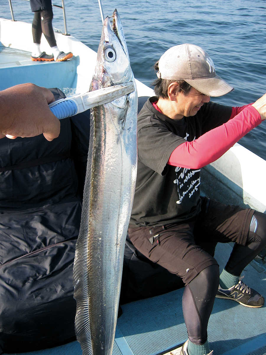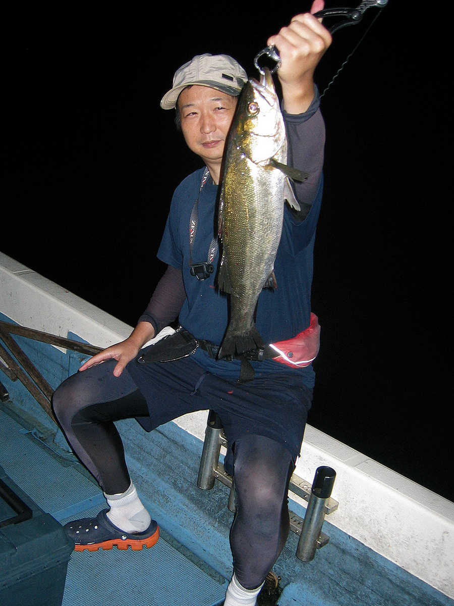 ■シーバス・ナイト×2匹 ■サワラ狙い×ノーヒット!\(-o-)/ □タチウオ×2匹(大×2匹) ■コメント この日は、ナイト・シーバス狙い&サワラ狙いで出船しました。 シーバスは相変わらずダメダメで、魚の気配を感じないポイントばかりでしたが、とあるポイントのみバイトがあり5ヒットし2匹キャッチしました。 今回の状況では、釣れ出すにはまだ我慢が必要みたいです。 サワラ狙いは、釣り仲間から「釣れ出したよ!」の連絡があり状況を調査しに行きました。 結果、ハネやジャンプは見受けられず、他船が狙っているポイントで釣り開始。 ベイトは水面から底まで沢山泳いでいるが、本命の気配を感じられないままノーヒットで終了。 翌日リベンジできる事を祈り帰港となりました。トホホ・・・ ■シーバス・ナイト×2匹(56cm前後×1匹/60cm前後×1匹) □バラシ:3匹 ■サワラ狙い×ノーヒット! □タチウオ×2匹(大×2匹) |