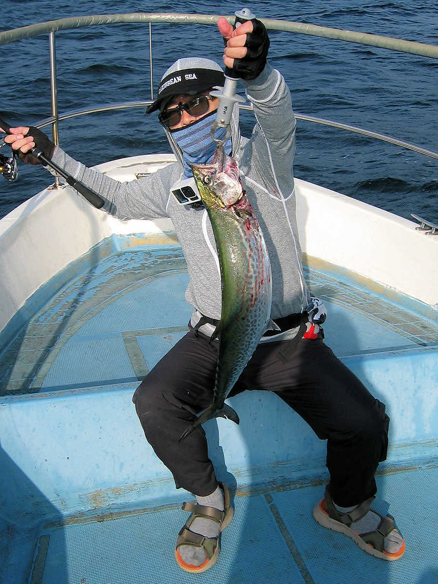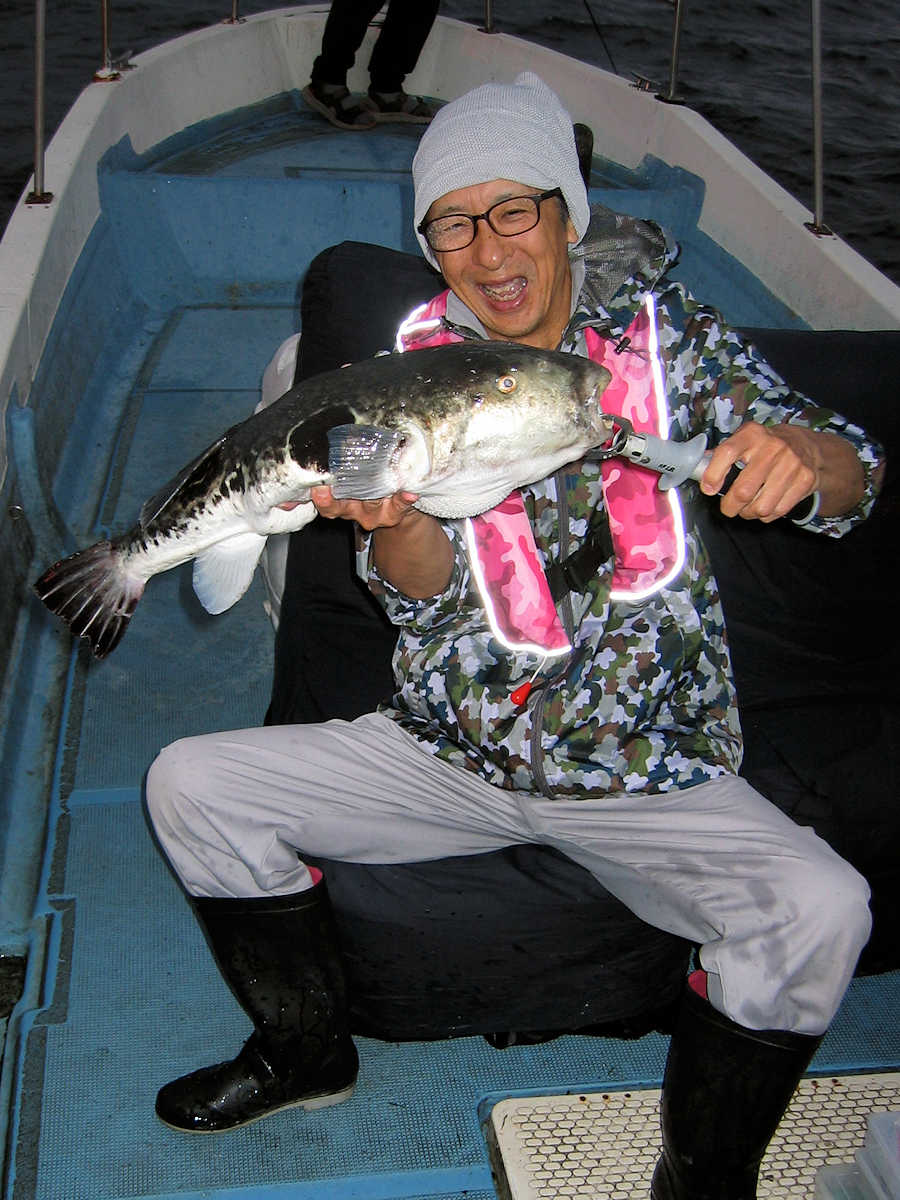 ■サワラ×6匹 ■トラフグ×超でか ■コメント 今年は船頭の野生の勘が悪く、痛い目のあいっぱなしのサワラ狙い、釣れる事を祈りレッッゴー! 釣り始めると、とんこつさんに大物がヒット! 上がって来たのは超デカぃトラフグでした! 縁起の良いスタートだと信じリール・マキマキを繰り返し、本命を6匹キャッチ! いや~、久しぶりにサワラの顔を見ました! 釣れて良かったです! ちなみに、トラフグは当方では処理ができない関係で、魚の卸業者経由、飲食店行きとなりました。 アハハ・・・ ■サワラ×6匹 □サイズ:70㎝級×3匹/80㎝級×3匹 ■トラフグ×超でか |