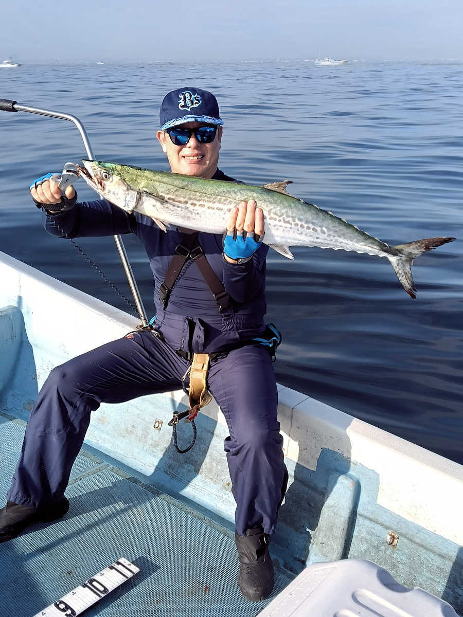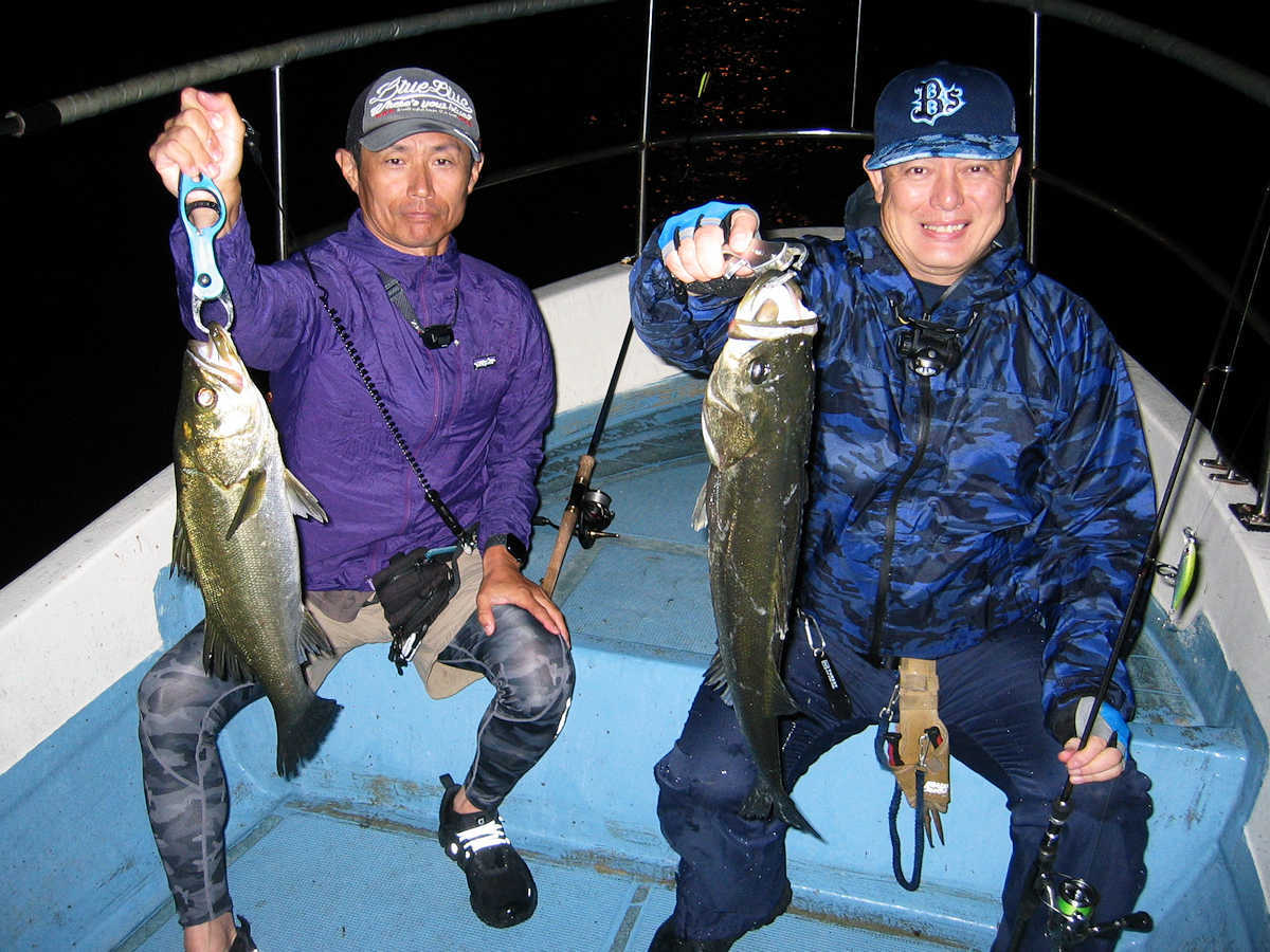 ■シーバス・ナイト&デイ×17匹 +放流サイズ×4匹 ■サワラ× 1匹(86㎝)+放流サイズのサゴシ×1匹 ■コメント この日のシーバス狙いではナイト・デイ共に60アップが運良く釣れましたが、ルアーに反応がないポイントが目立ちますので、しばらくは我慢の釣りになると思います。 デイでシーバスを狙った後、第二本命のサワラを狙いに行きました。 結果はソムリエさんが2ヒットし、サワラとサゴシ級をゲットしただけでした。 わたしとメグリさんはノーバイト! トホホ・・・ ■シーバス・ナイト&デイ×17匹 +放流サイズ×4匹 □サイズ:50cm前後×3匹/56cm前後×4匹/62cm前後×7匹/65cm前後×1匹/66cm前後×2匹 ■サワラ× 1匹(86㎝)+放流サイズのサゴシ×1匹 |