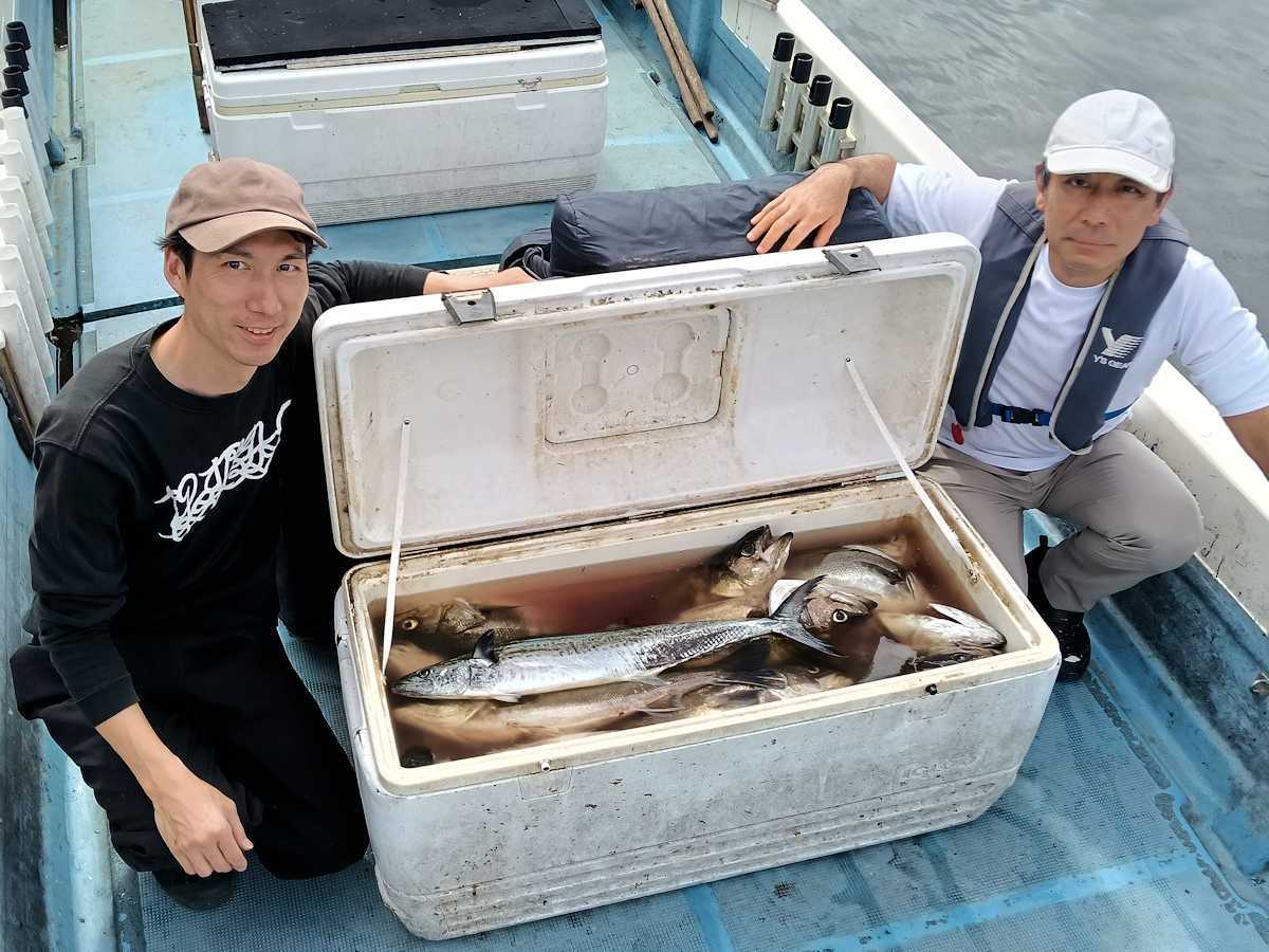 ■シーバス・ナイト×26匹 ■サワラ×1匹(68cm前後×1匹) ■コメント シーバスはナイトで大物フィーバーでした! メインサイズが60~70㎝でしたので、メチャクチャ楽しかったです♪ 魚も太っていて、これからが楽しみです! 明るくなってからはサワラ狙い。 ハネやジャンプする姿がチラホラ見えるのですがバイトせず、結果は1匹だけでした。 まあ、釣れて良かったです! ■シーバス・ナイト×26匹 □サイズ:58cm前後×5匹/62cm前後×5匹ぐらい/65cm前後×6匹ぐらい/67cm前後×7匹ぐらい/70cm×3匹 ■サワラ×1匹(68cm前後×1匹) |