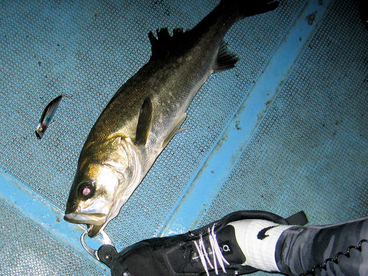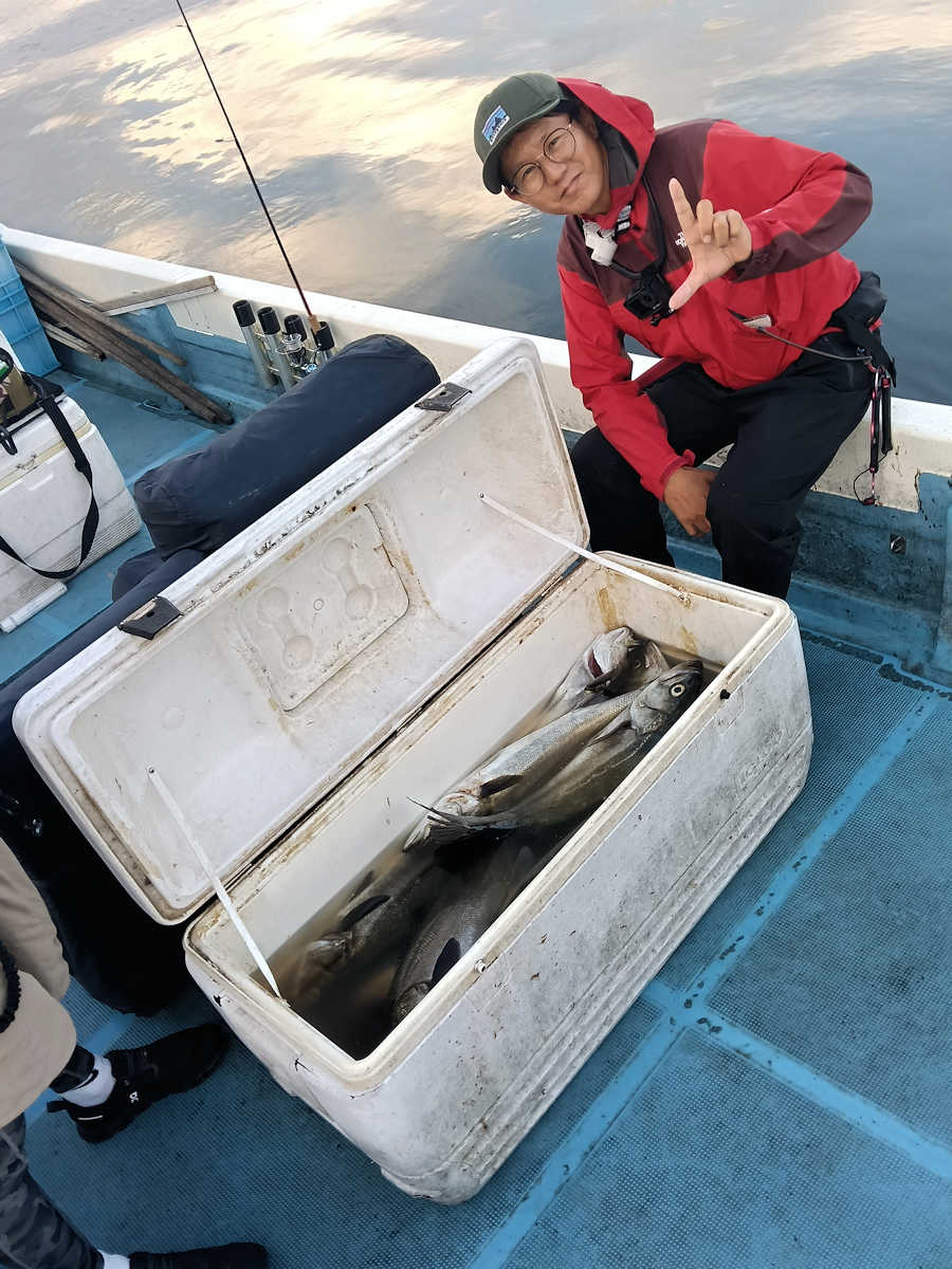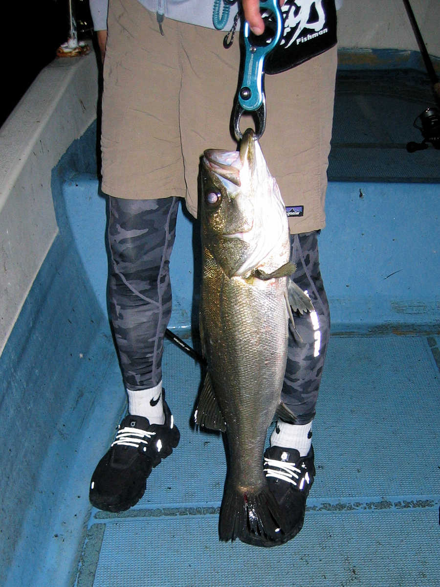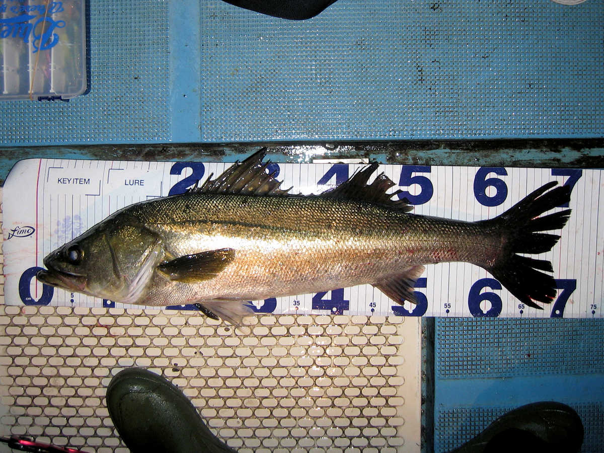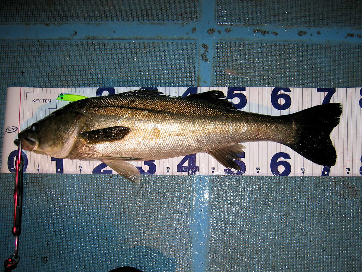 ■シーバス・ナイト×16匹 +放流サイズ×1匹 ■コメント この日はお二人共に『バラシの王様状態』でキャッチ数が伸びませんでしたが、70㎝アップを2匹含め16匹キャッチでき良かったです。 実際、前日は大物フィーバーでしたのでウキウキしながら狙いましたが、結果はシ~~ン状態の連続! 「あれれ? マジか!」どうやら魚が移動してしまったようです。残念! で、移動を繰り返し、1匹目(57㎝級)・2匹目(57㎝級)をキャッチしましたが、その魚がセイゴ級のサイズに見えてしまう私。ムムム・・・オカシイ??? 原因は、前日65㎝以上の太った魚ばかり見ていたので、タモ入れした瞬間の重量感と長さの関係で小さく見えてしまいました。 「それだけ前日は凄かったんだな~」と痛感した船頭でした。アハハ・・・ そんなこんなで前日のようなペースで魚は釣れず、ヤヤ苦戦しながらの釣りが続きました。 実際には魚はポツポツとヒットしていましたが、普段バラシが少ないお二人が、この日はバラシが多くオートリリースの連続! マクーさんはダメダメモード全開で、 スプリットリングが伸びてのサヨナラや、 ダブルヒットし、二人のラインが交差してマクーさんがラインブレイクや、 ヤリトリの最中にPEラインの中央部分から切れるラインブレイクなど、 滅多に発生しないトラブルも追加され、終始頭を抱えていました。 まあ、私が遊漁船を始める前、一人で釣り(漁)をしていた頃にも『バラシが多い日と少ない日』とがありましたので、当日の魚の活性具合でルアーへのバイト状態が変わると思っています。 なので、次回敵討ちしましょう! って話をすると、「逆に返り討ちに合うかも?」と良く返答されます。アハハ・・・ ちなみに、最後の写真、魚がクーラーの半分以上入っており数釣りができたように感じますが、実際には水氷の量が多かっただけで16匹しか入っておりません。 漁港で魚を卸す際、「あれ、こんなに少なかったっけ?」と驚いた私。 25~30匹キャッチした印象でしたが、実際にはタモを手に持ったが、バラシばかりでキャッチできなかったって事でした。アハハ・・・ ■シーバス・ナイト×16匹 +放流サイズ×1匹 □サイズ:57cm前後×5匹ぐらい/62cm前後×4匹ぐらい/64cm前後×3匹ぐらい/67cm前後×2匹/71cm×1匹/74cm×1匹 |