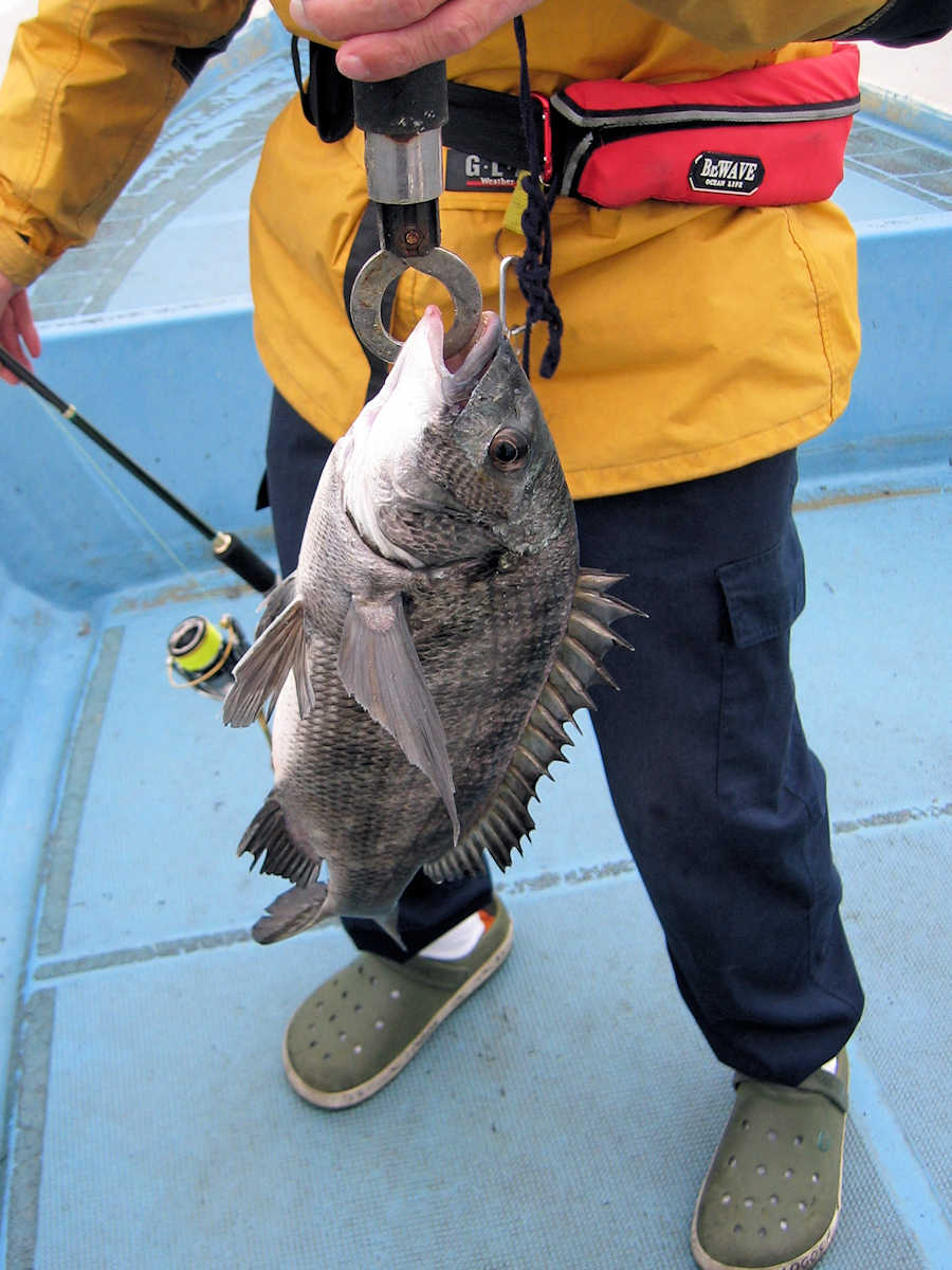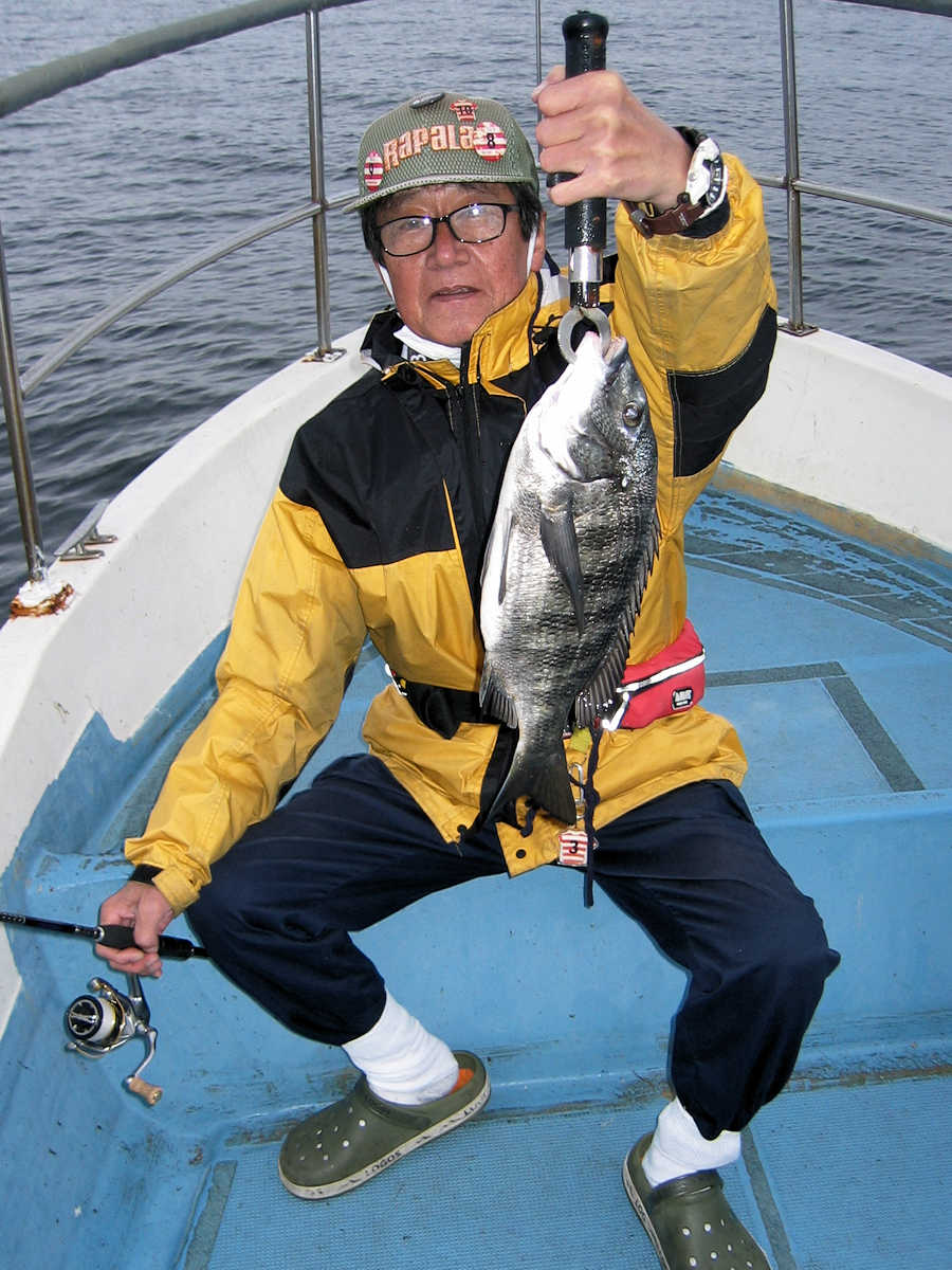 ■黒鯛×10匹 ■コメント 今年も終了が近い黒鯛狙い、海水のニゴリは消え、チラホラ見える黒鯛も人間の姿に警戒して逃げて行く。 そんな厳し状況でしたが、なんとか10匹キャッチでき良かったです。 当船が狙うポイントでは、数が釣れるシーズンは限られており、例年3月中旬から10月中旬までとなります。 海水のニゴリがあれば10月末頃まで釣れますが、近年では9月中旬に接近する台風の影響で海水のニゴリが消え、釣果が激減し終了となります。 今年は気温が高かったせいか、先日までニゴリがありましたので釣れそうな雰囲気はありましたが、狙いたい時に限り北風が強く吹き、ニゴリが消えてしまう悪循環。 まあ、黒鯛狙いは来年の3月まで我慢ですね! ■黒鯛×10匹 □アタリの数:30発ぐらい |