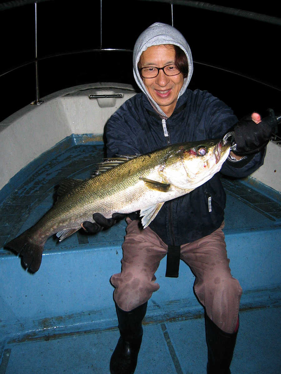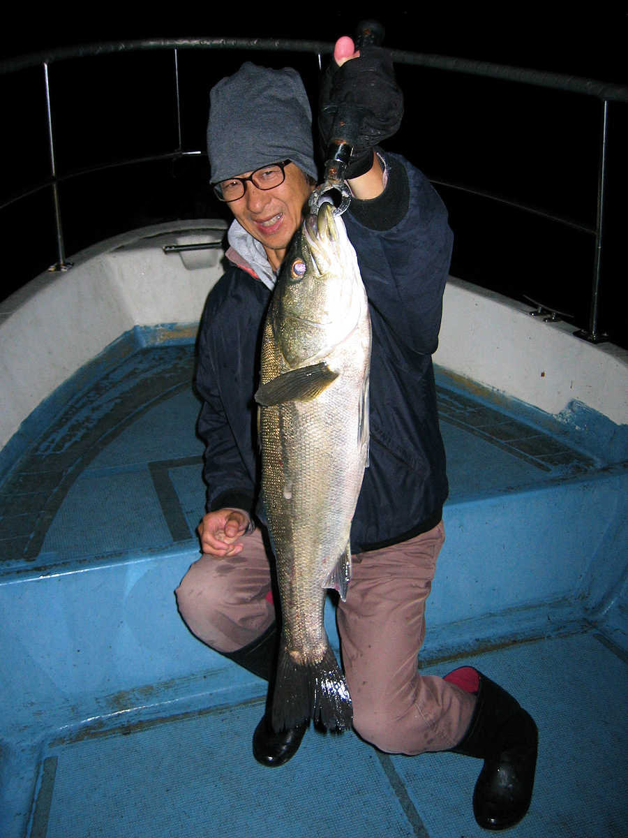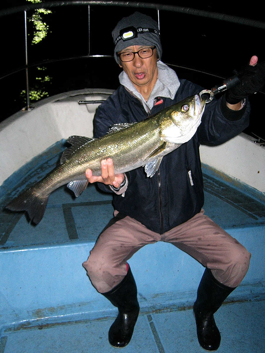 ■シーバス・ナイト×11匹 ■サワラ×ボーズ! □サゴシ級×1匹 □タチウオ×2匹 ■この日の題名:チャーシューさんの写真なし この日、最初の魚はお二人共に56㎝前後のサイズを連続でキャッチ! 「あれれ? サイズが小さくなっちゃった!」と心配するも、「昨日の状況であれば60㎝アップが簡単に釣れるだろう」との気持ちで釣りを続ける。 とりあえず心配なので、一枚目の写真を、とんこつさんがキャッチした61㎝位のサイズでパチリ! 相棒のチャーシューさんの2匹目は58㎝位のサイズだったので写真はオアズケ! そうこうしていたら、写真を撮影したいチャーシューさんが、バラシと乗りそこないのコンばかりとなり、魚をキャッチできなくなってしまいました。 心配なので、とんこつさんの写真をパチパチ撮り、途中チャーシューさんが黒鯛をキャッチしたが写真撮影を我慢する。 私のジンクスで、外道の写真を撮影すると、その後ツキがなくなり縁起が悪くなるから。 で、夜明けが近づき焦るが、チャーシューさんはシーバスを追加できないまま終了となりました。 で、明るくなりサワラ狙いに変更。 釣り初めはシーン状態でしたが、チョロリ移動したらサワラとサゴシのハネとジャンプが出るポイントを発見! 粘るがアタリなく、私がサゴシ級を1匹、とんこつさんがタチウオを1匹、チャーシューさんがタチウオを1匹キャッチしたまま、アタリが無くなり終了となりました。 結果、最後までチャーシューさんの写真がないままでした。 サワラが釣れるポイントにお連れできず申し訳ございませんでした。 ■シーバス・ナイト×11匹 □サイズ:56cm前後×5匹/58cm前後×1匹/61cm前後×2匹/65cm前後×3匹 ■サワラ×ボーズ! □タチウオ×2匹 |