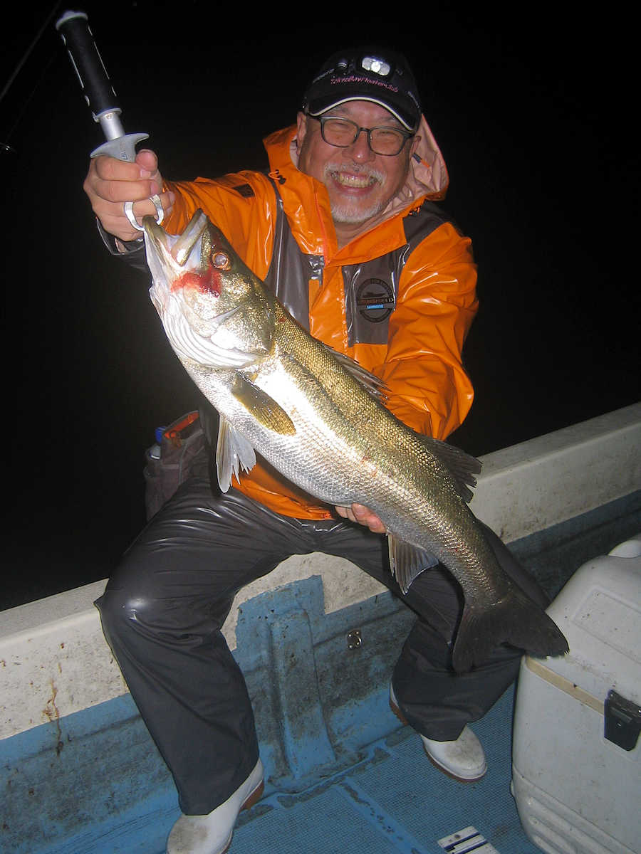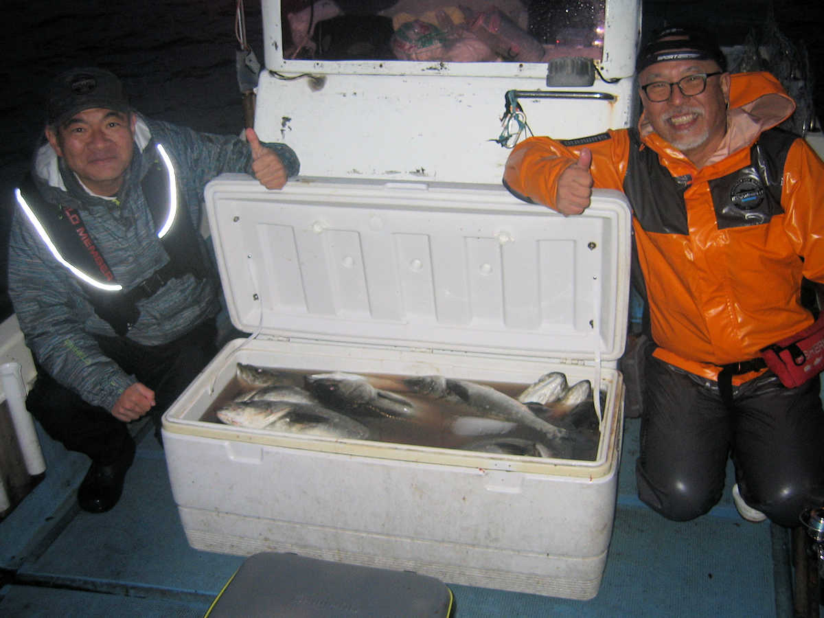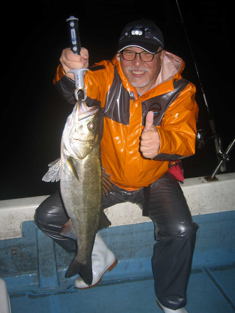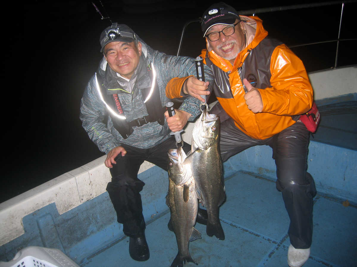 ■シーバス・ナイト×34匹 ■コメント この日、数は釣れませんでしたが、69アップが8匹キャッチでき楽しい釣りとなりました。 何故かしらヤヤ強い風に悩まされる、風羽さんと皮算用さん。 前回の2回はヤヤ強の風で出船し釣果悪く、今回はナギの予報でしたので大漁を期待しましたが、中盤以降徐々に風が強くなり苦戦! 最終的には早上がりとなってしまいました。トホホ・・・ ■シーバス・ナイト×34匹 □サイズ:53cm前後×1匹/57cm前後×4匹/60cm前後×匹ぐらい/64cm前後×匹ぐらい/67cm前後×7匹ぐらい/69cm×2匹/70cm×3匹/74cm×1匹/75cm×1匹/76cm×1匹 |