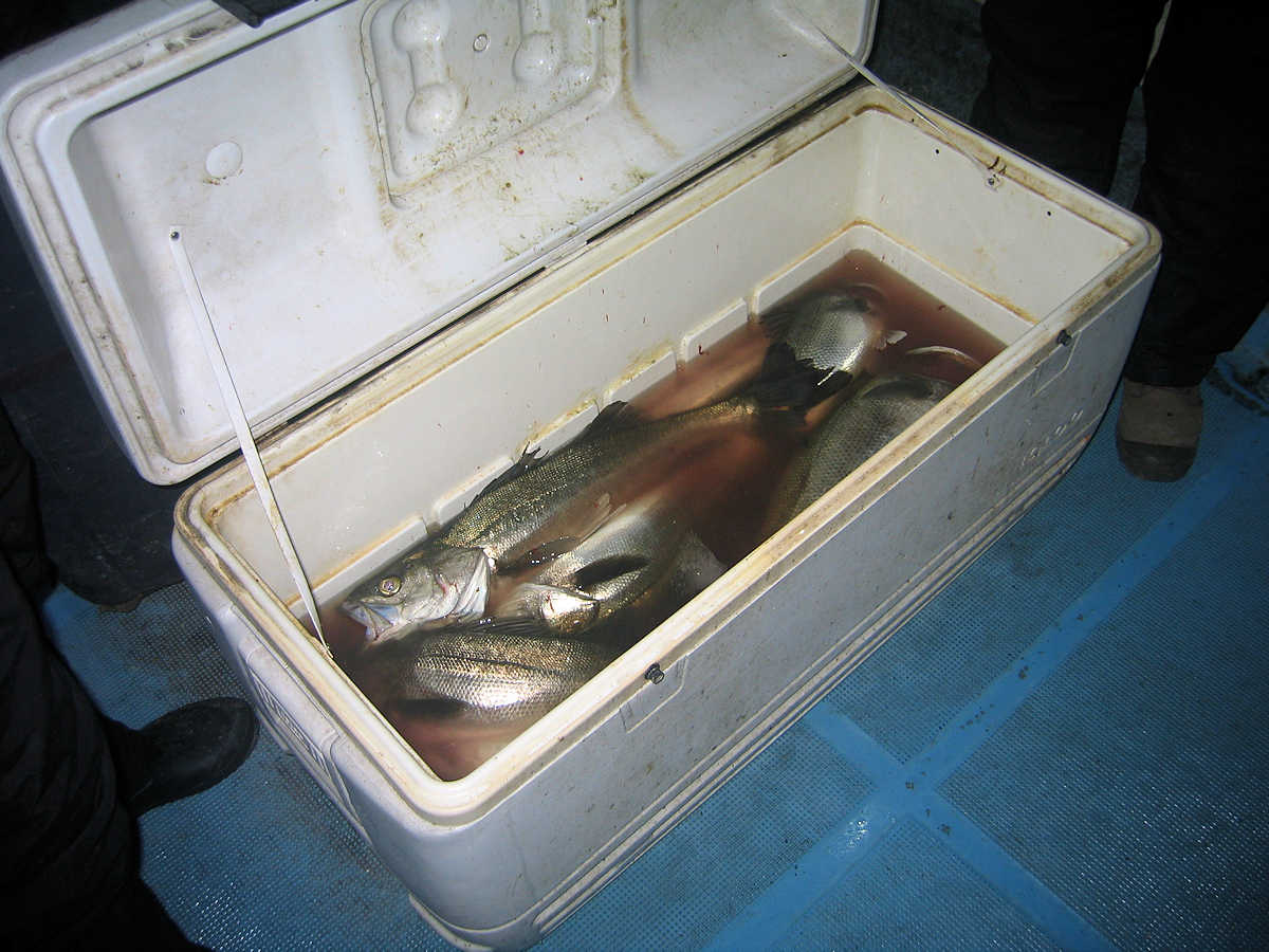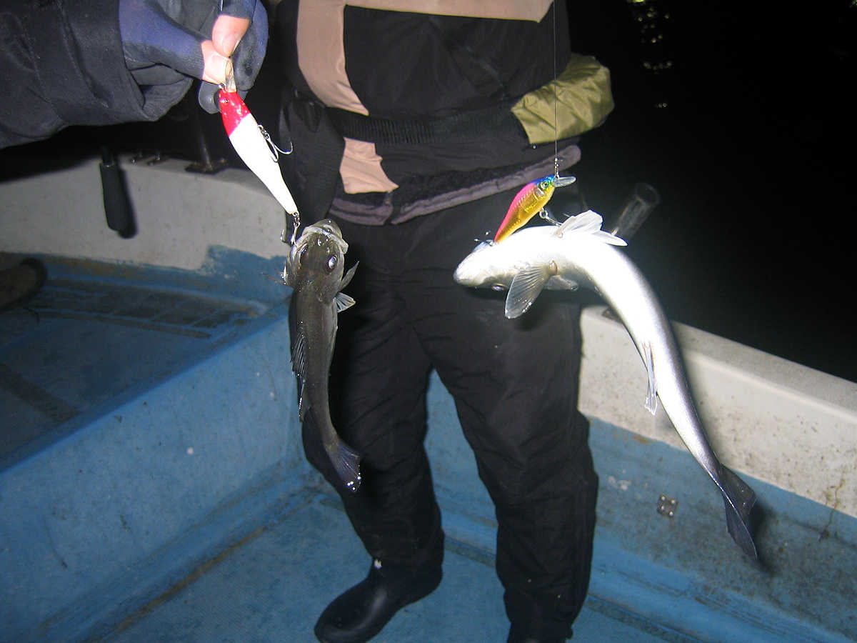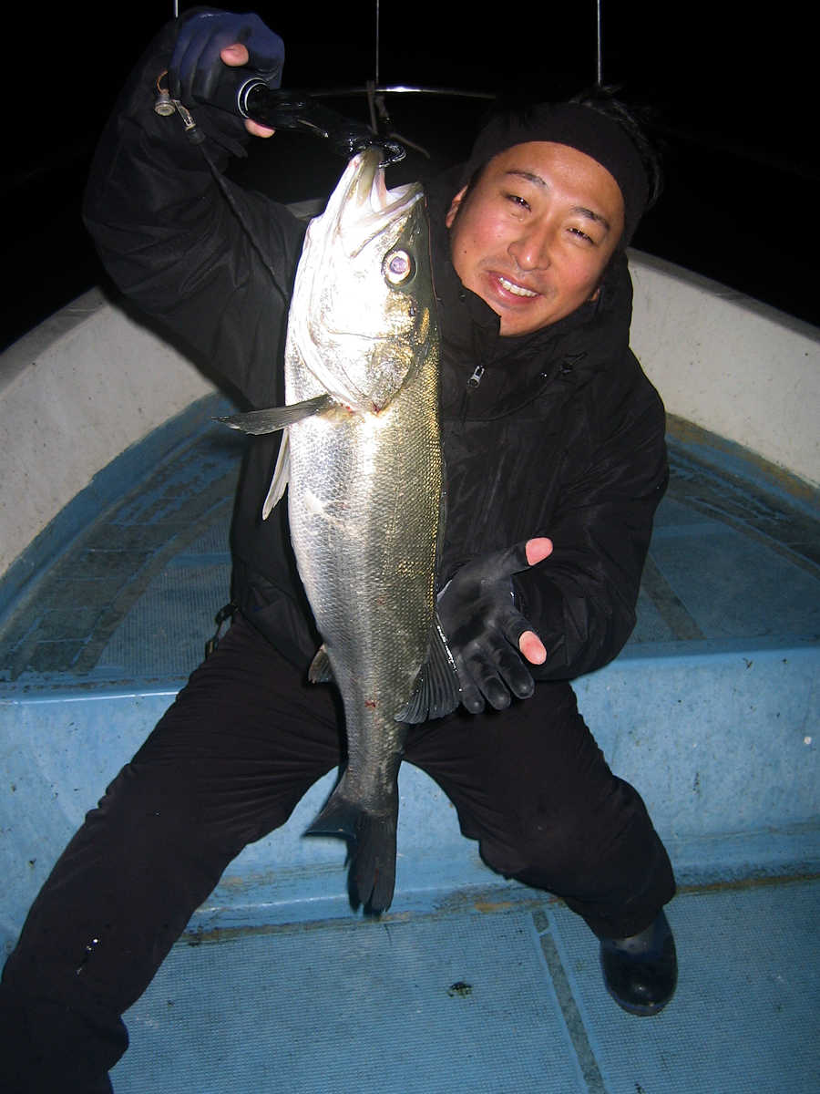 ■シーバス・ナイト×11匹 +放流サイズ×20匹ぐらい ■黒鯛×2匹 ■コメント 「今日も釣るぞ!」とウキウキして海に出た瞬間、「ムムム風が少々強い?」と不安な気持ちのままポイント到着。 釣り始めるとヤハリ風が強く釣りずらい。 ついでにシーバスのご機嫌が悪く、アタリが超少ない。 と言うか、魚がポイントから移動してしまったのかも? 更に、こんな条件の悪い時に限りショートバイトやバラシでキャッチ数が伸びない。 追い打ちをかけるように風が更に強くなり、風が避けられるポイントをメインで狙うコースに切り替えました。 結果、狙うポイントによっては良いサイズが出ましたが、チイサイズの多いポイントでは、セイコちゃんが元気一杯にバイトし入れ食い状態でした。 そんなこんなで、高確率で釣れる可能性の高いポイントが無くなり早上がりとなりました。(料金値引きで対応) トホホホホ・・・ ★追記:帰港後、船着き場での会話 船頭:明日はナギ予報、一杯釣れちゃったらガッカリするだろうな~? きねちゃん:翌日の釣果を見た瞬間、「チクショー」って声を上げそう! 結果はいかに? ■シーバス・ナイト×11匹 +放流サイズ×20匹ぐらい □サイズ:10~45cm前後×20匹ぐらい(放)/58cm前後×1匹/61cm前後×4匹ぐらい/65cm前後×5匹ぐらい/68cm×1匹 ■黒鯛×2匹 |