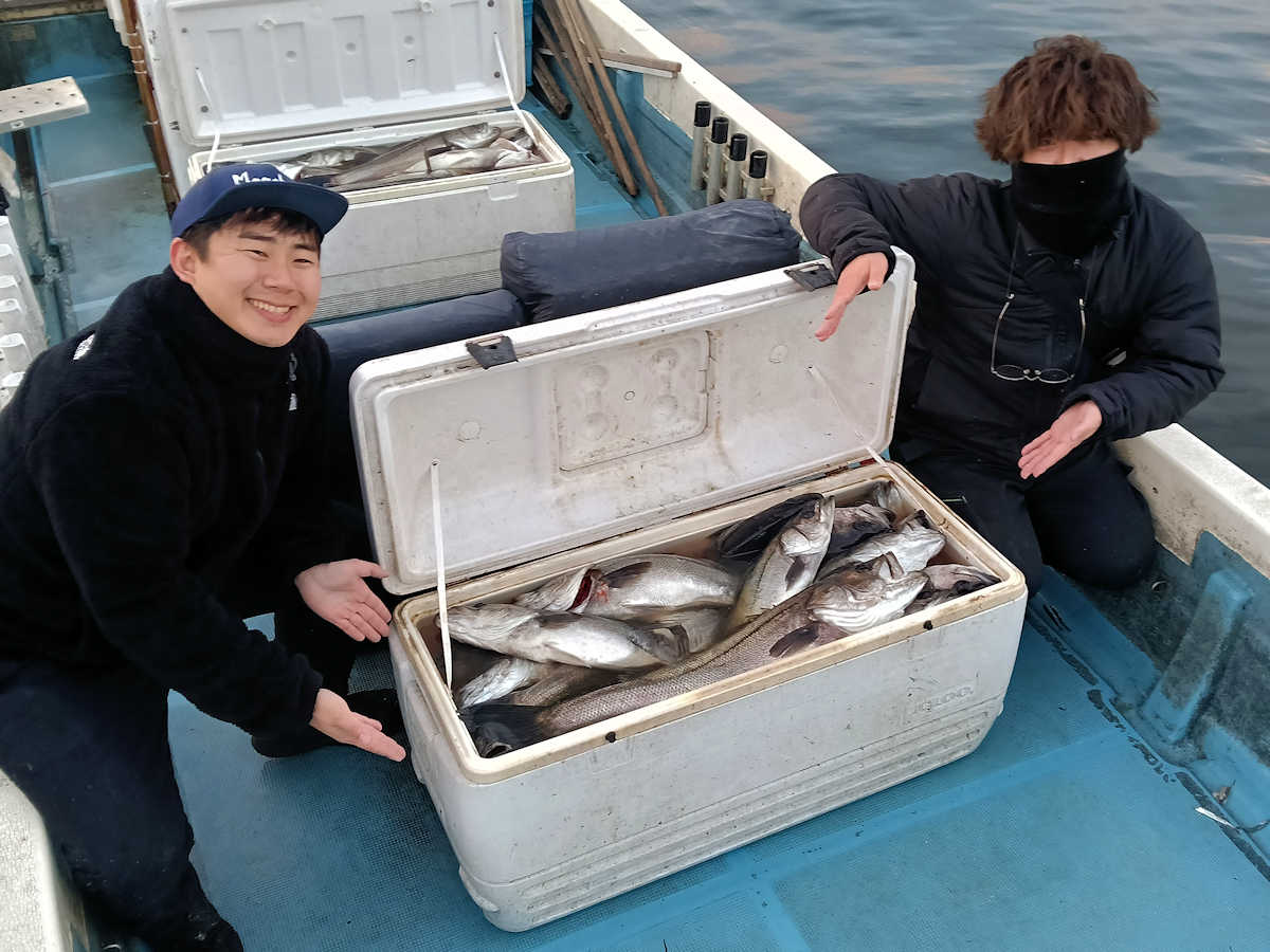 ■シーバス・ナイト×80匹 +放流サイズ×5匹 ■コメント この日は良い感じでバイトが続き、釣れるサイズも良く、楽しいシーバス狙いとなりました! キャッチした魚の重量は今季最高で、クーラー2個満タンプラス水色のオケ7分目まで魚で埋まりました! お二人共に、バラシ少なく、お見事でした! ■シーバス・ナイト×80匹 +放流サイズ×5匹 □サイズ:40~50cm×5匹(放)/55cm前後×2匹/58cm前後×10匹ぐらい/61cm前後×27匹ぐらい/63cm前後×30匹ぐらい/67cm前後×15匹ぐらい/70cm×1匹/72cm×1匹/73cm×1匹/74cm×1匹/76cm×1匹/80cm×1匹 |